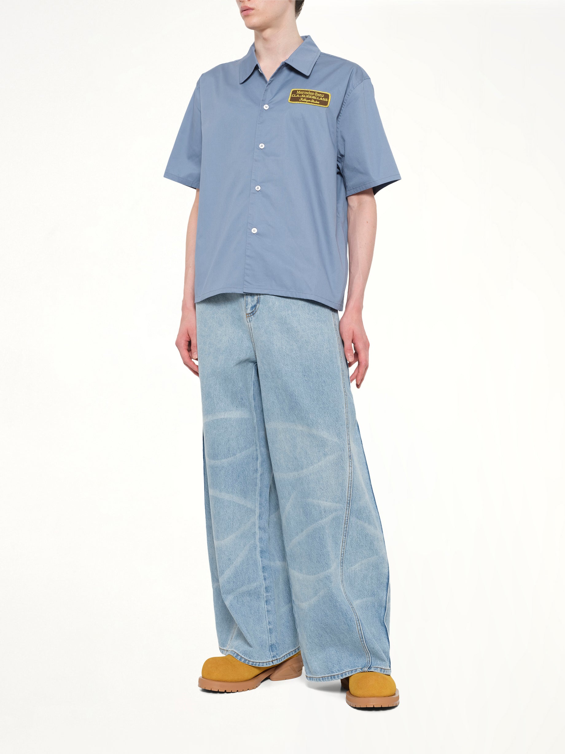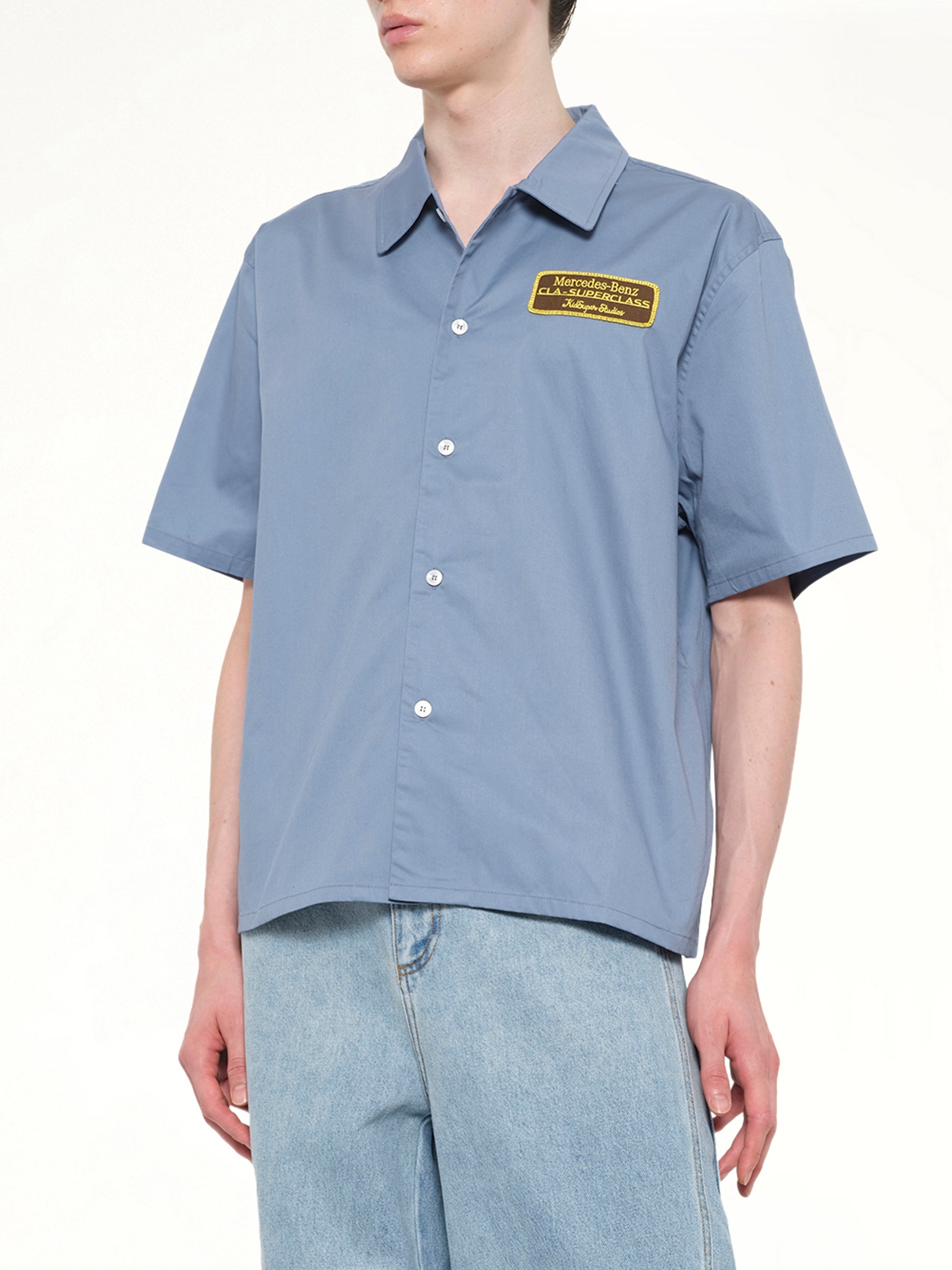 Kidsuper X Mercedes Benz Cropped Work Shirt in Blue