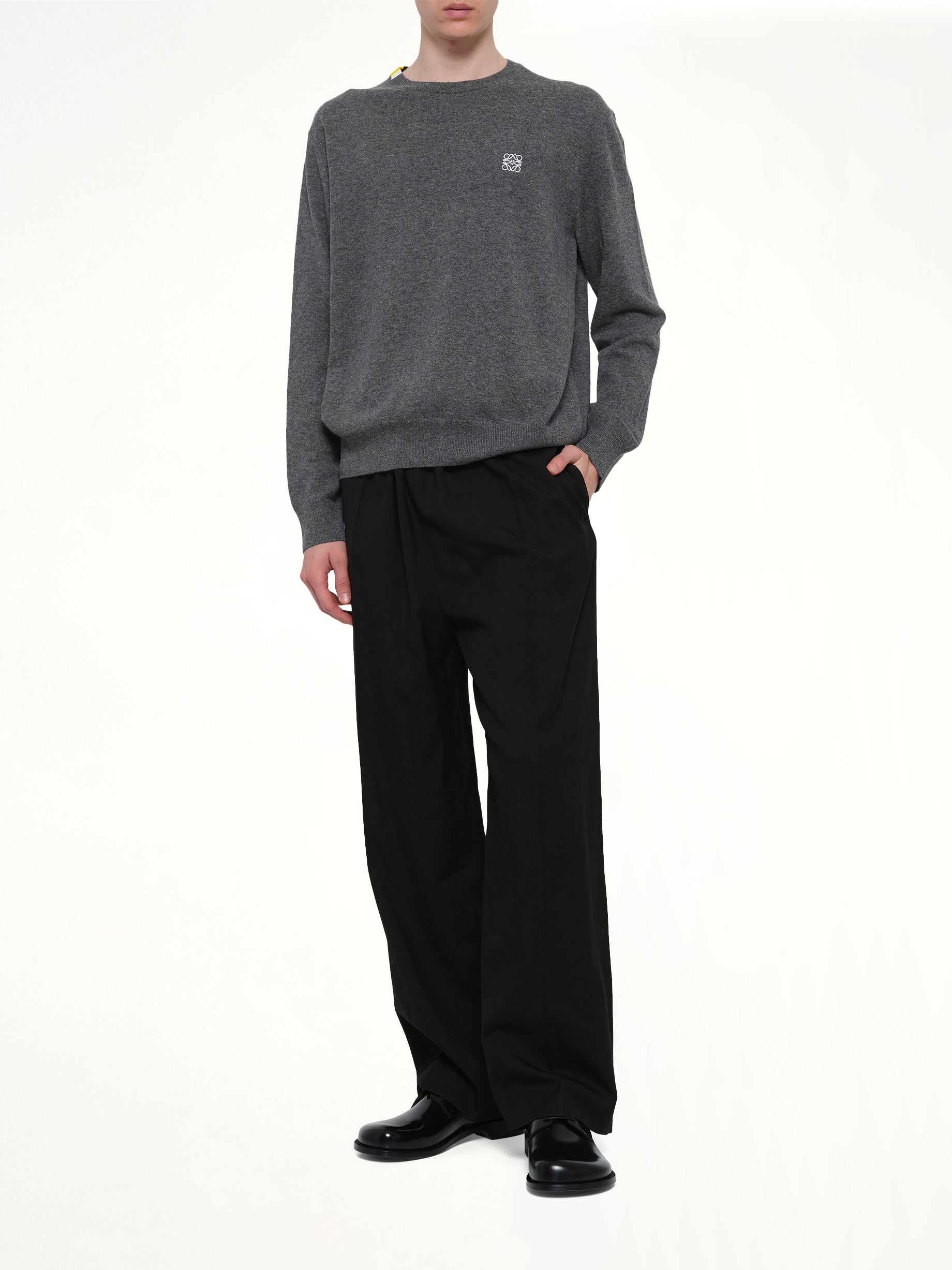 Loewe's Knit Sweater in Grey is a sophisticated and versatile piece, perfect for elevating your wardrobe. Its timeless design and neutral color make it an essential addition to any collection.