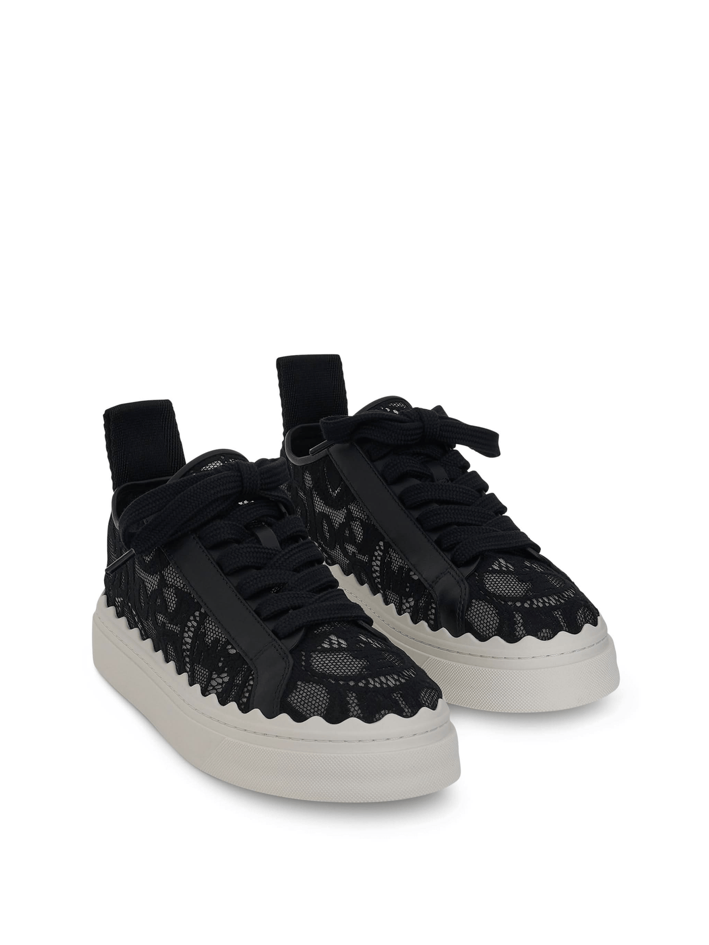 Low top sneaker with lace from the ready to wear collection and lined with mesh for transparency. Tonal laces and Flexible rubber sole and contrasting nylon back loop with the Chloe logo.