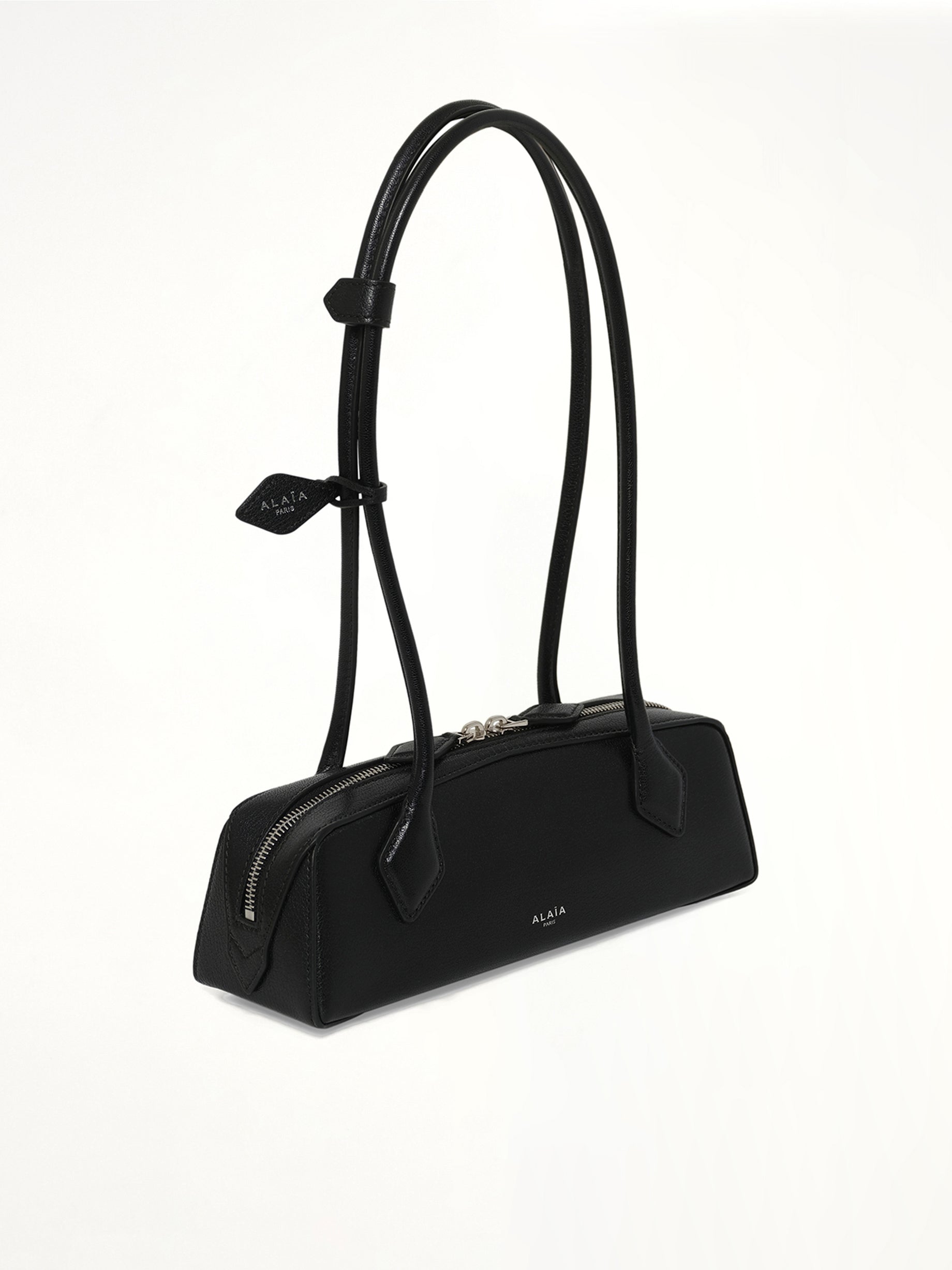 Alaia's Le Teckel Small Goatskin Bag in Black is a sophisticated accessory that combines elegance with practicality. Its sleek design and compact size make it perfect for both day and evening wear.