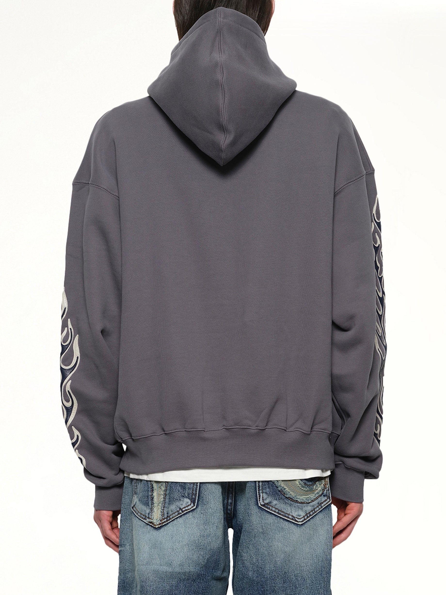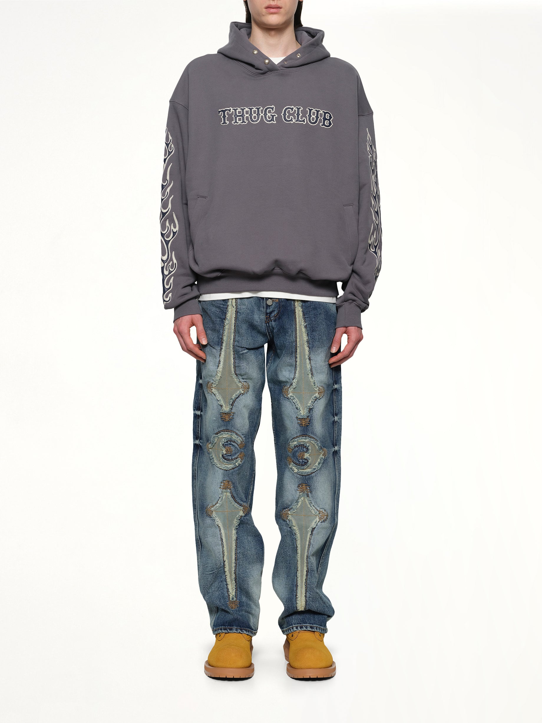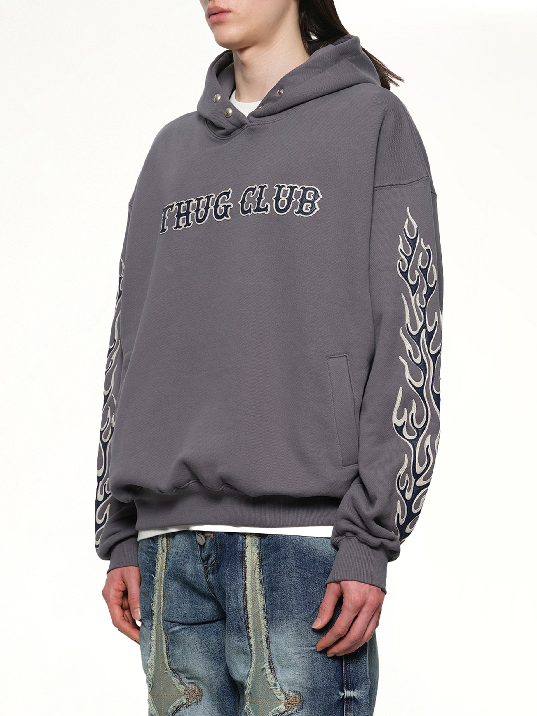Thug Club's Leather Flame Hoodie in Grey is a bold statement piece that combines edgy style with comfort. Perfect for those who want to stand out, this hoodie features a striking flame design.
