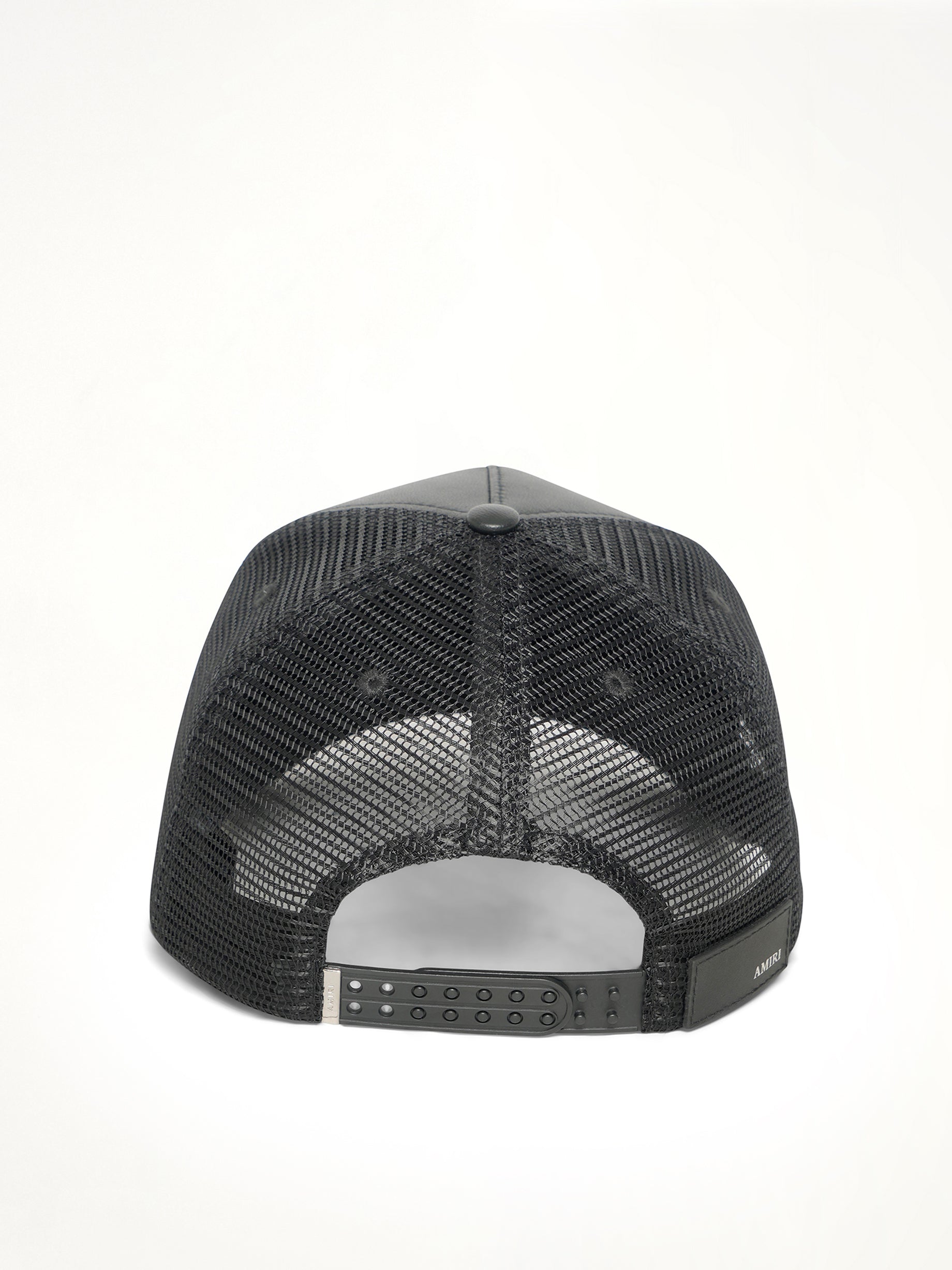 Amiri's Leather MA Trucker Hat is a stylish accessory that combines classic trucker design with a luxurious leather finish. Perfect for elevating casual outfits, this hat offers both comfort and a touch of sophistication.