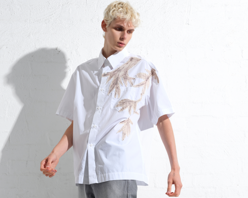 - Features a combination of lightweight denim and poplin jersey materials