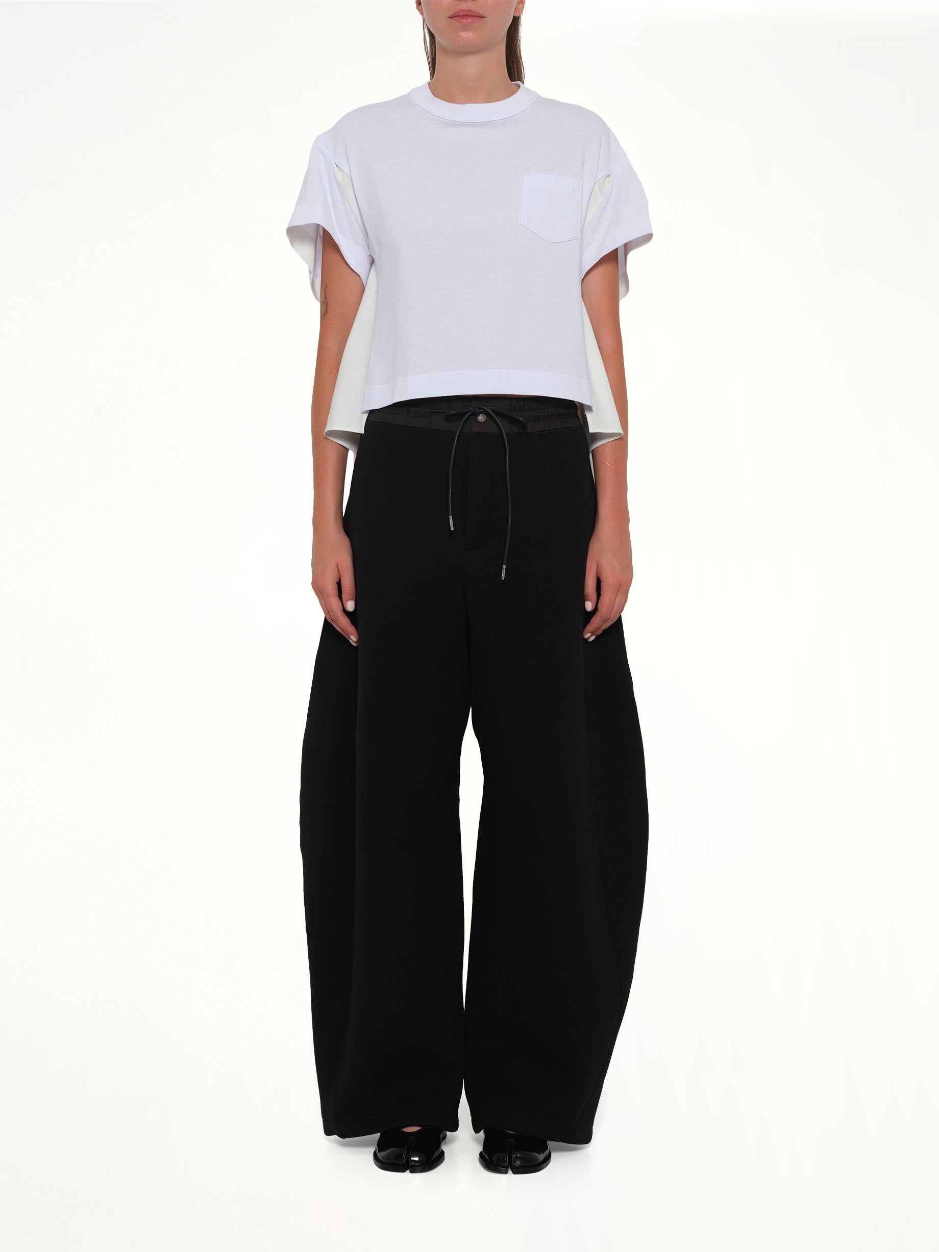 Sacai's Light Weight Denim x Poplin Jersey T-Shirt in White is a unique blend of casual and chic, offering a modern twist on a classic silhouette. This versatile piece is perfect for elevating everyday looks with its innovative design.