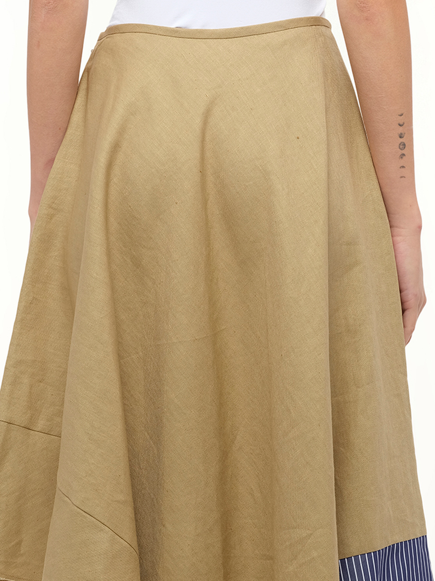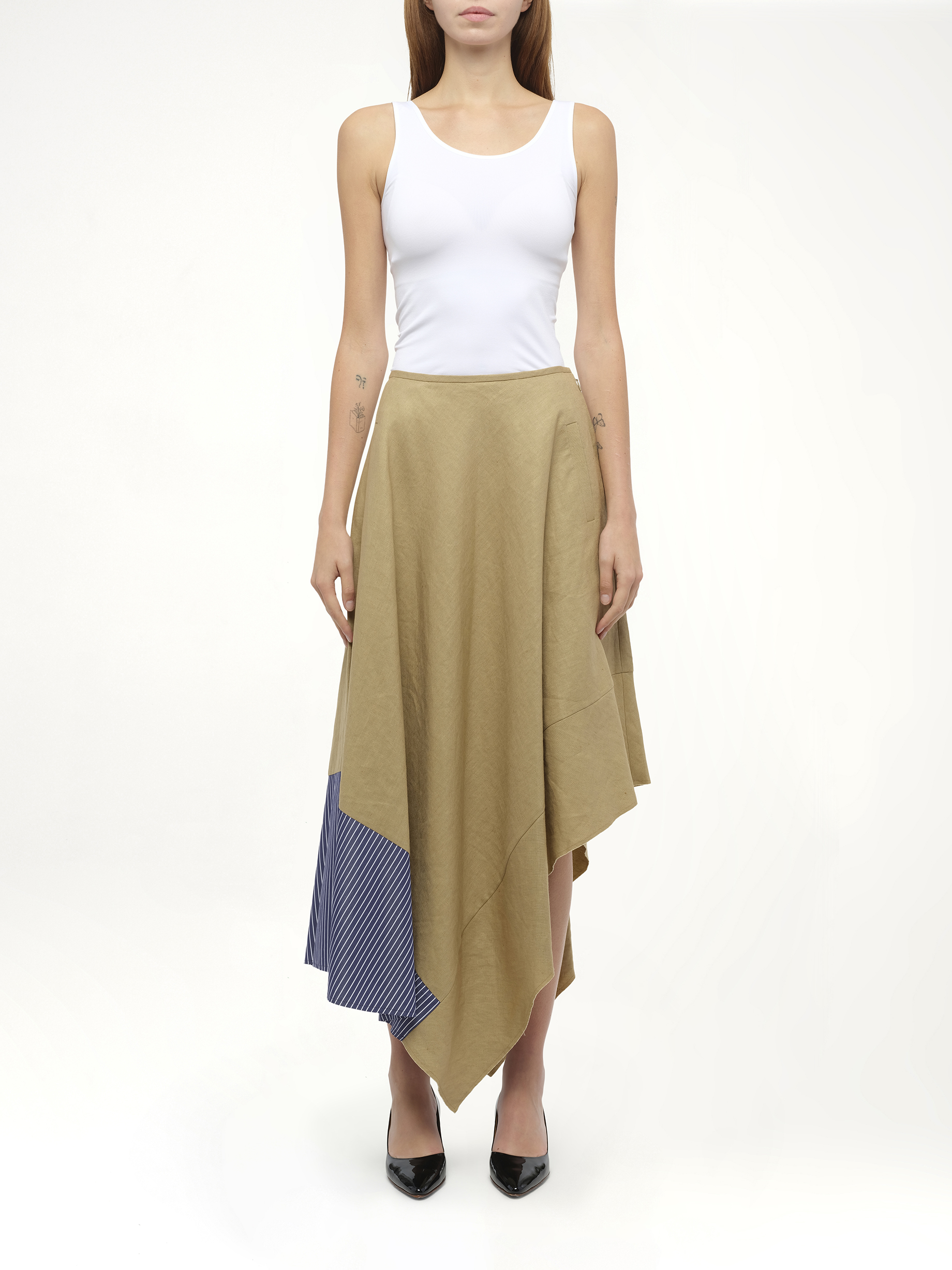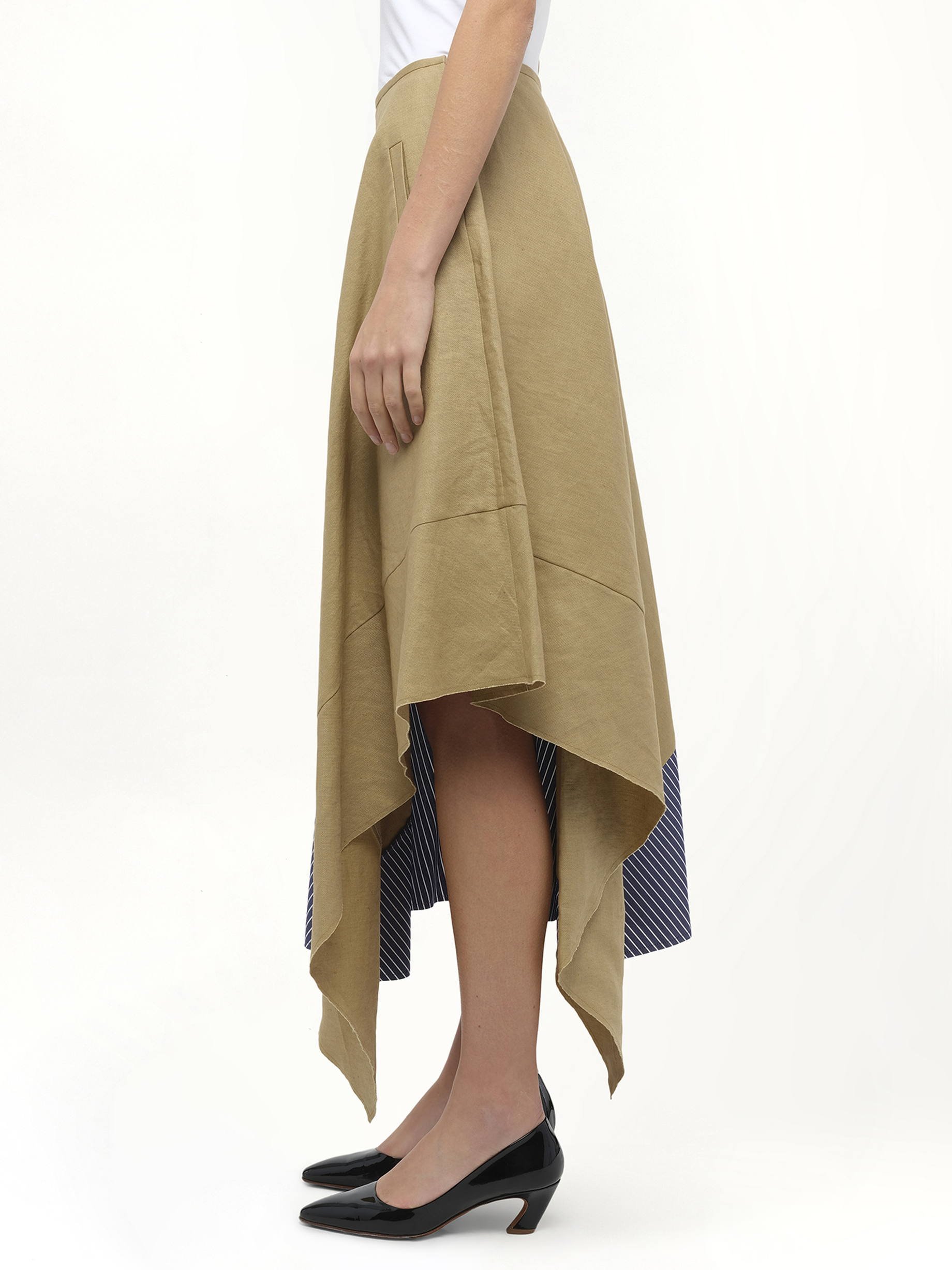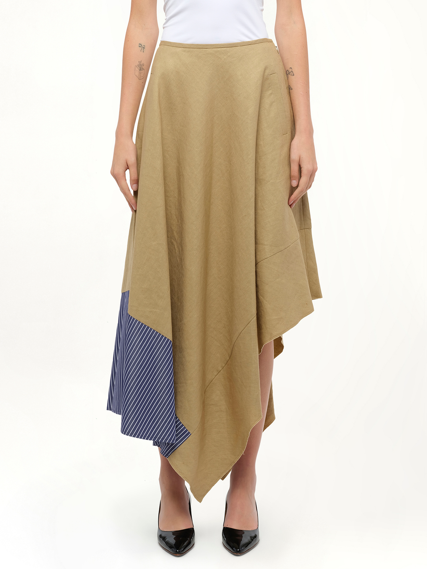 Effortlessly elevate your wardrobe with Loewe's Asym Stripe Skirt in Beige. Its unique asymmetrical striped design adds a touch of modernity to any ensemble while the neutral colour makes it versatile and easy to style. Made with high-quality materials, it offers comfort and style all in one.