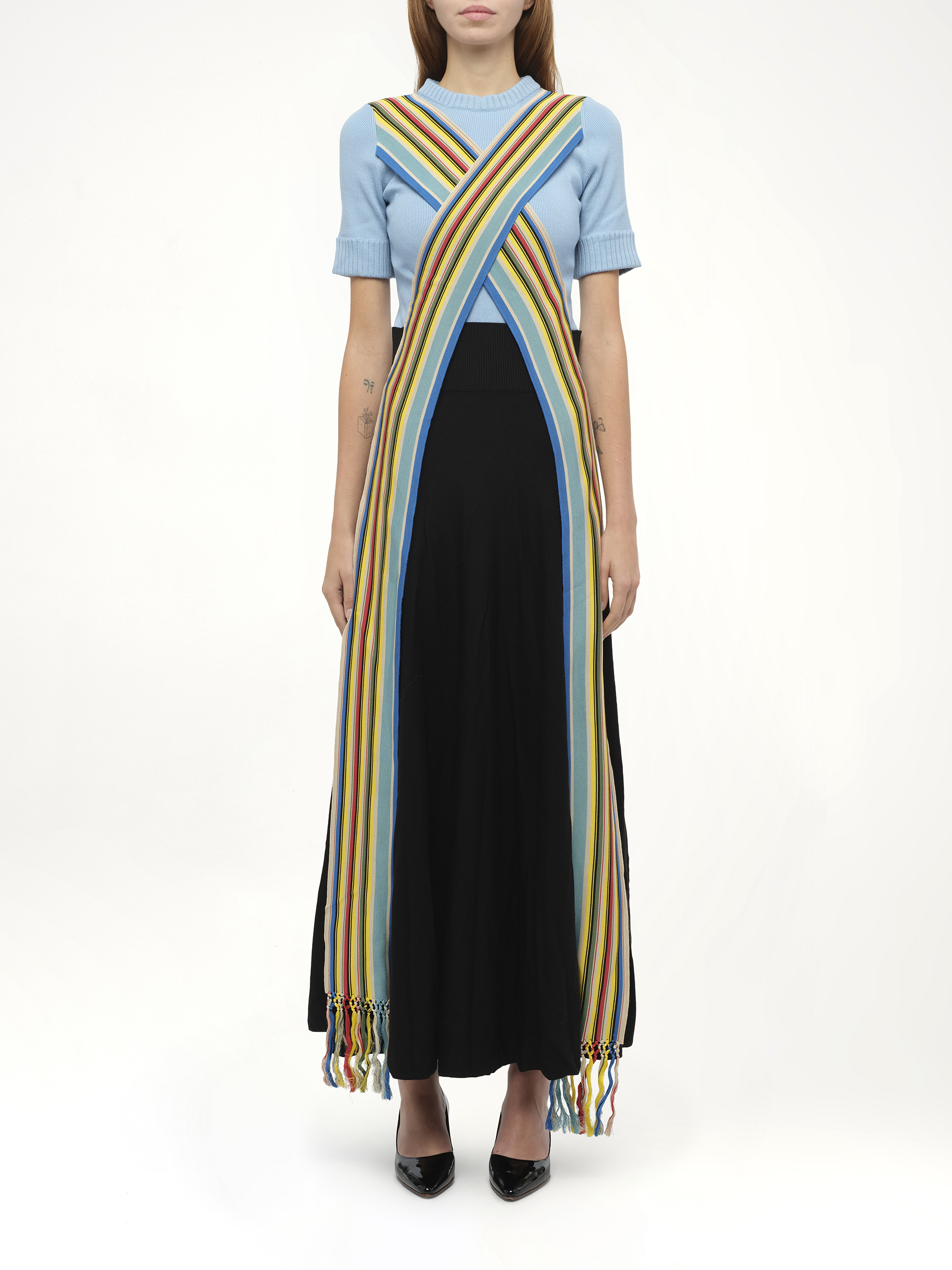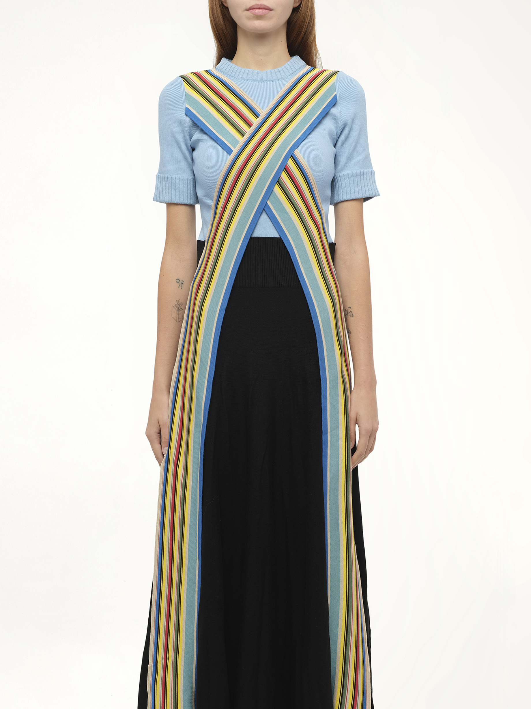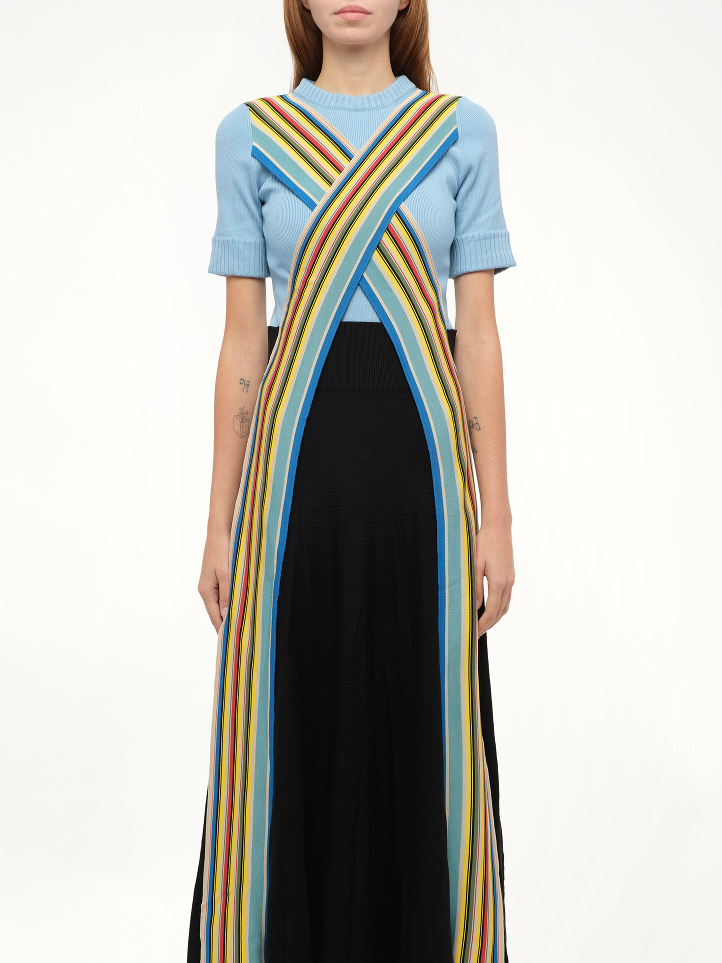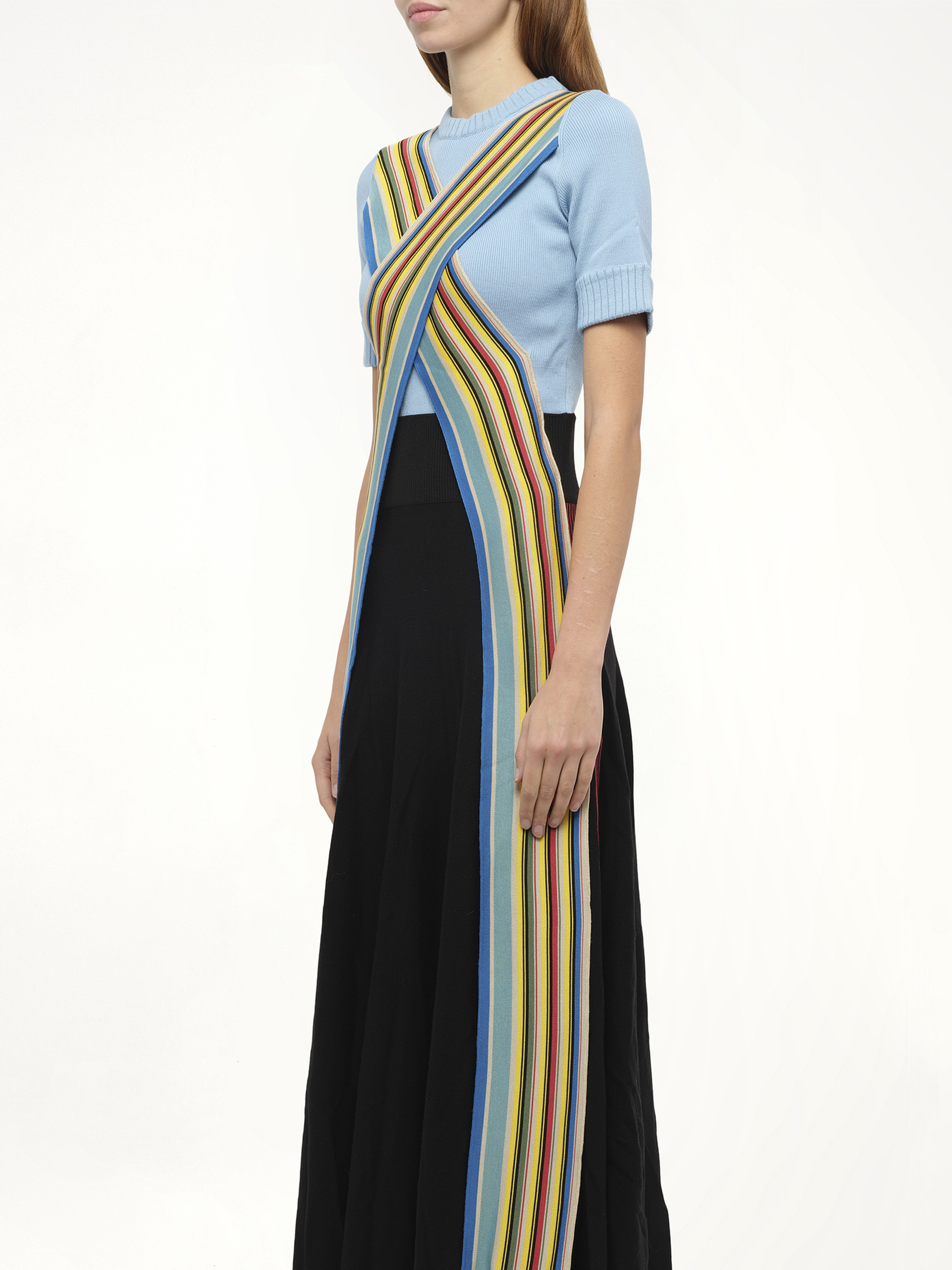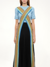 Loewe's Stripe Bands Dress in Blue features stylish stripe detailing that adds a touch of elegance to any wardrobe. With a comfortable fit and flattering silhouette, this dress is perfect for both casual and formal occasions. Made from high-quality materials, it is both durable and stylish. Upgrade your wardrobe with this must-have dress.