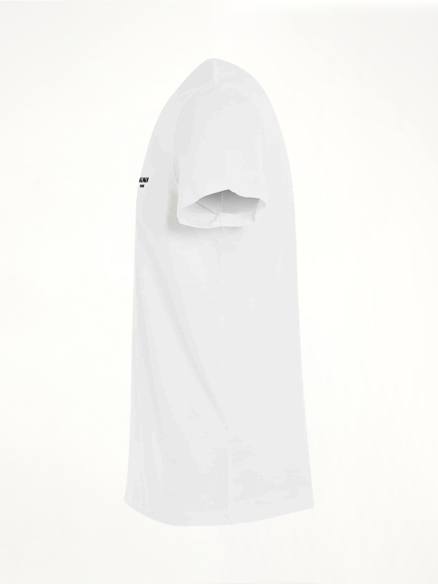 Classic short sleeves t-shirt in white cotton with a prominent logo print on the front, which is a signature design element of the brand. The crew neck, short sleeves, and straight hem give the T-shirt a timeless and versatile look that can be easily dressed up or down.
