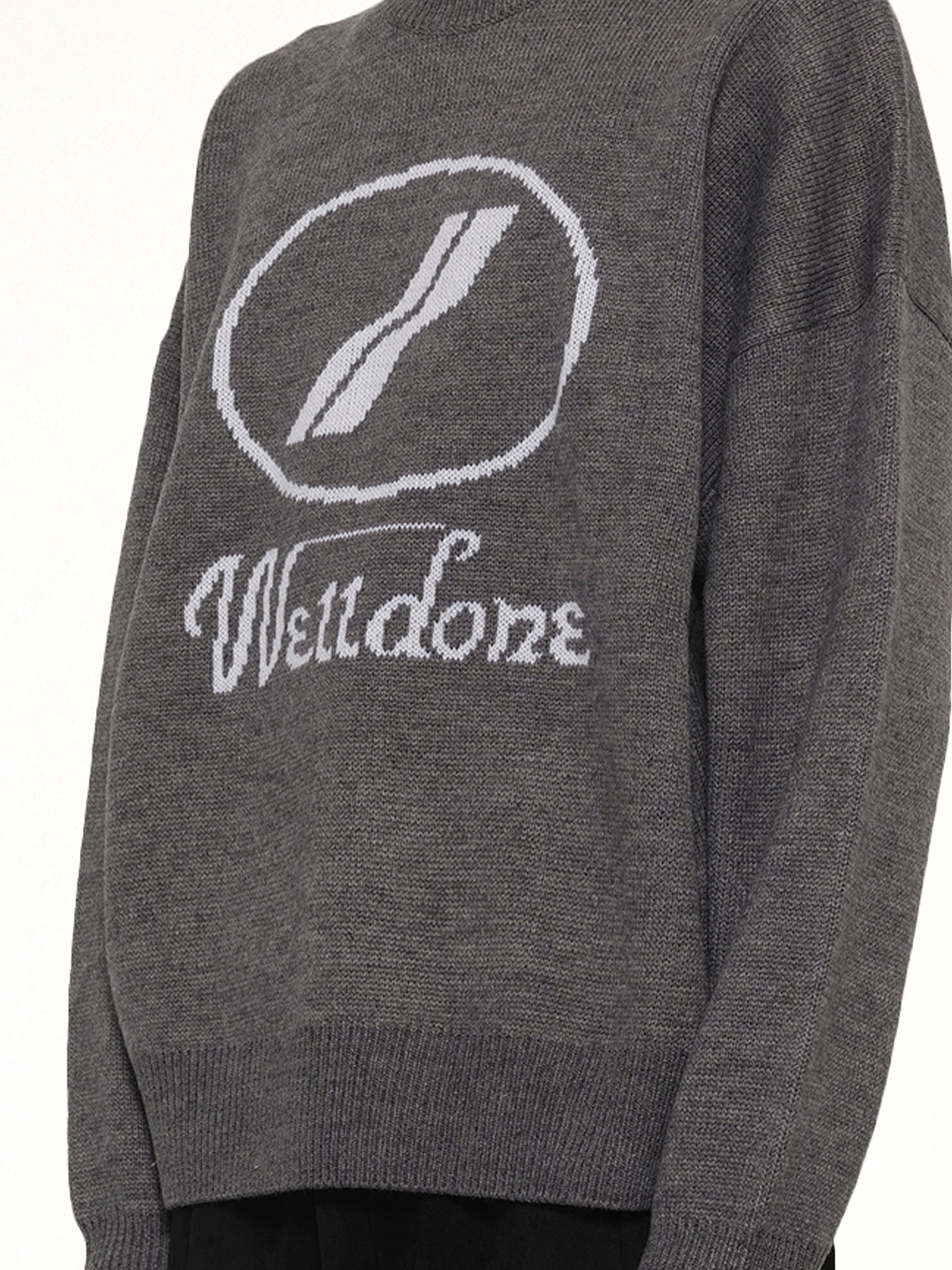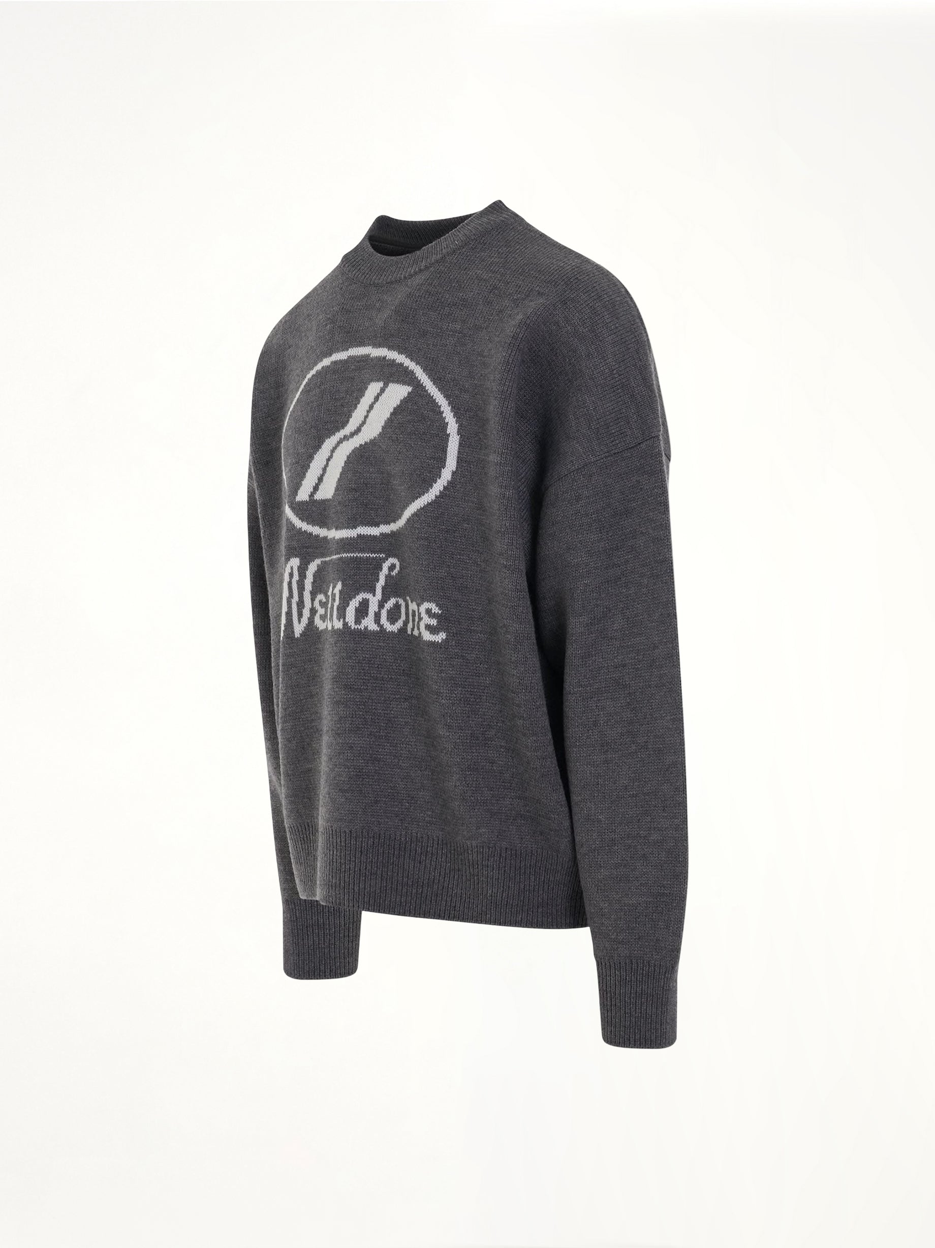 We11done's Logo Jacquard Intarsia Sweater in Grey is a stylish and contemporary piece that combines comfort with a modern aesthetic. This sweater features a bold logo design, making it a standout addition to any wardrobe.
