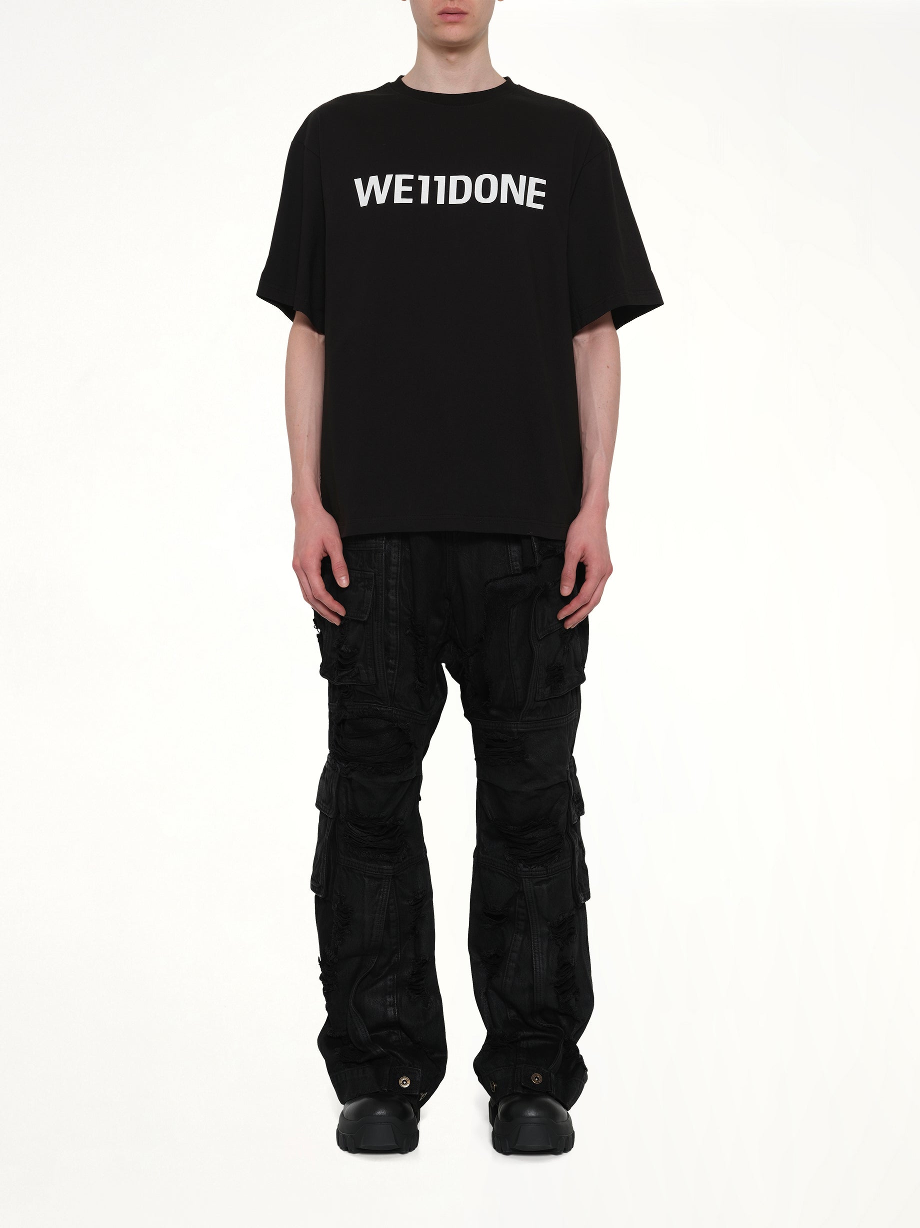 We11done's Logo Loose-Fit T-Shirt in Black is a stylish and comfortable addition to any wardrobe. This versatile piece features a relaxed silhouette, perfect for casual outings or layering.
