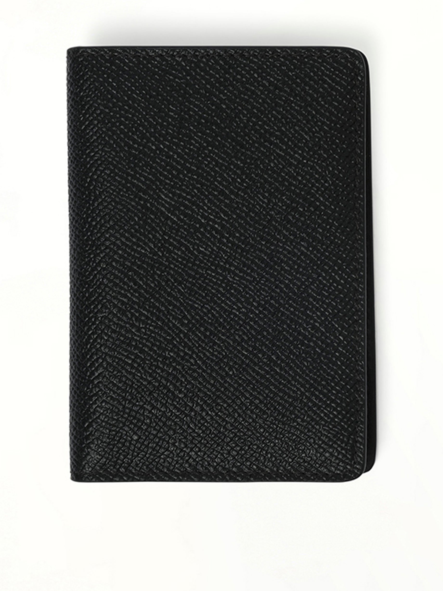 Logo printed card holder in black with pebbled texture, logo print to the front and internal logo stamp
