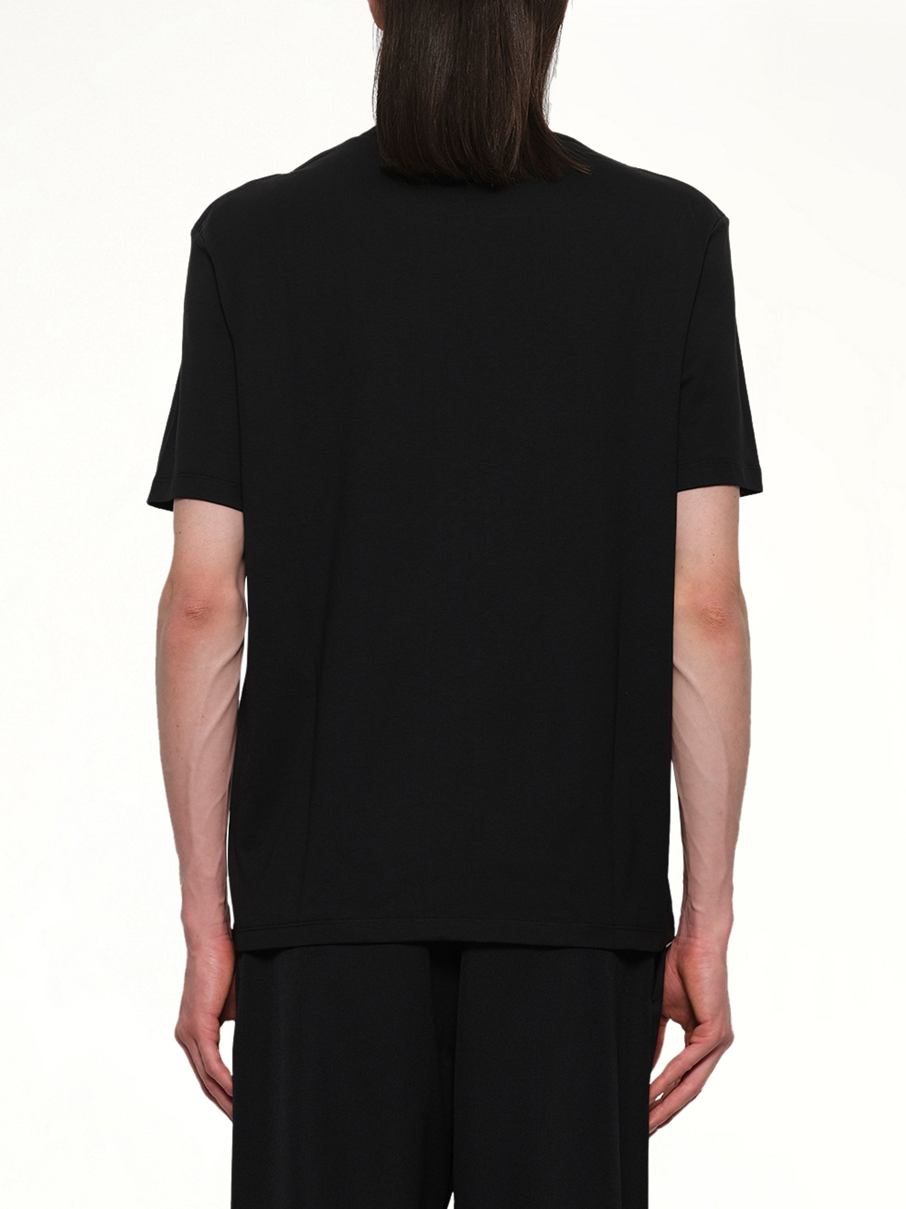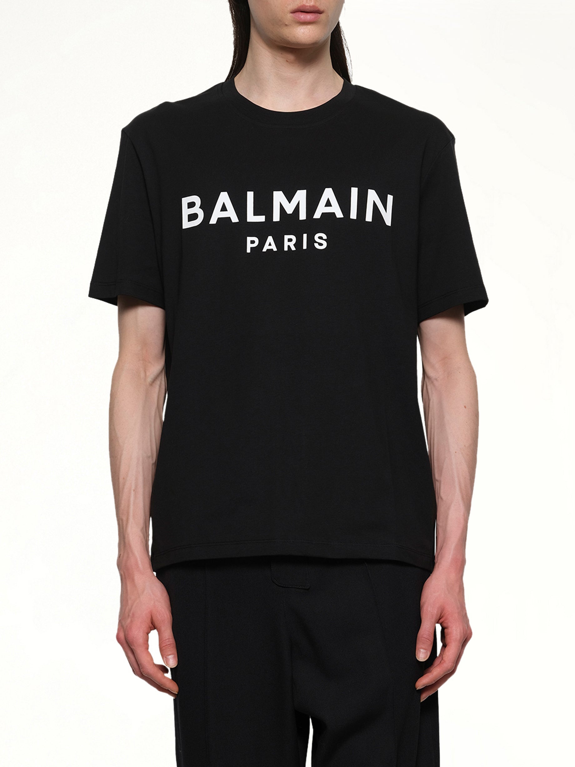 Classic short sleeves T-shirt is made from soft cotton jersey knit fabric and features in black/white colour scheme with a bold logo print on the front. The crew neck, short sleeves, and straight hem give the shirt a classic and versatile look that can be dressed up or down.