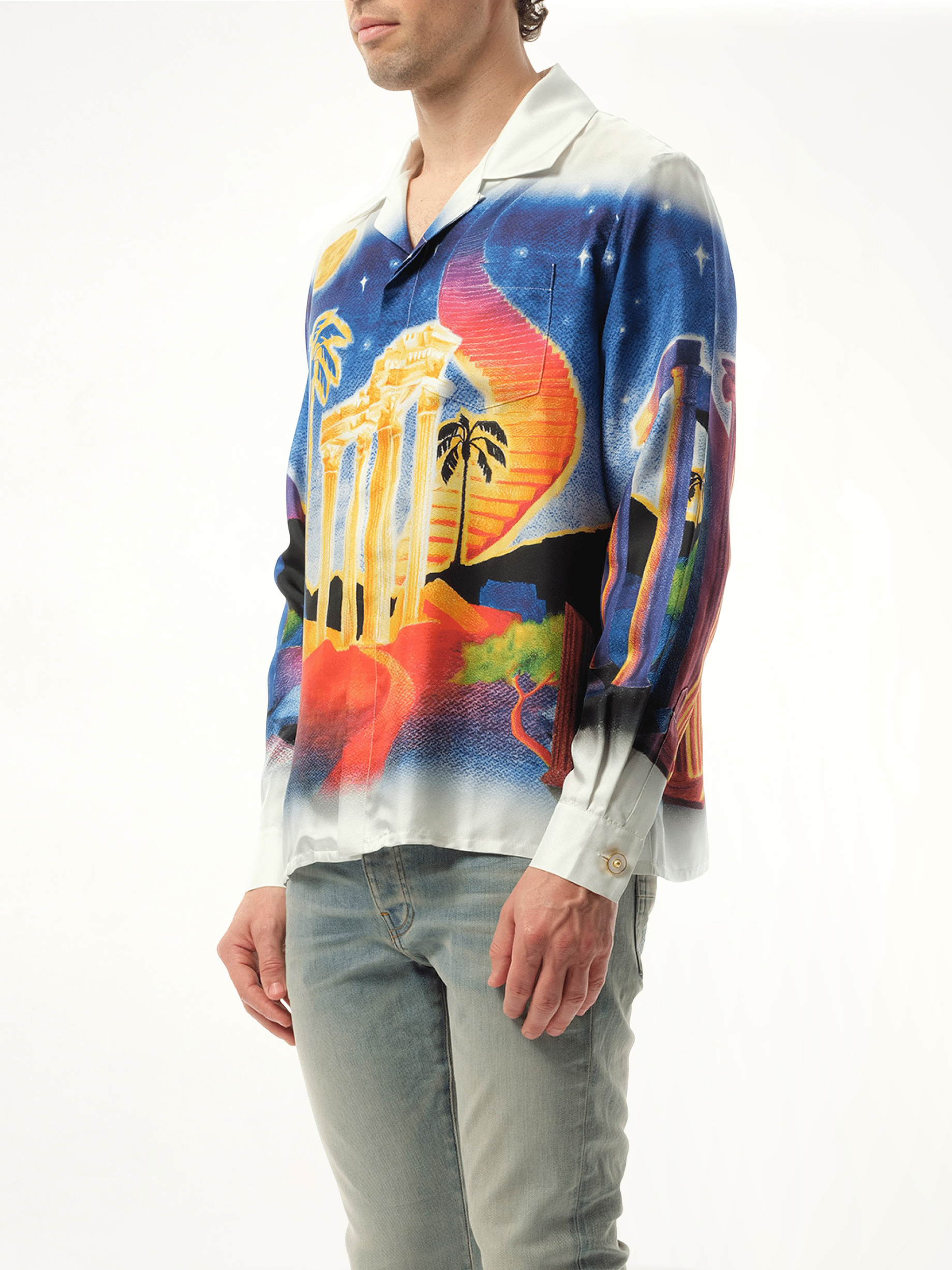Long Sleeve Cuban Collar Shirt in Midnight Acropolis