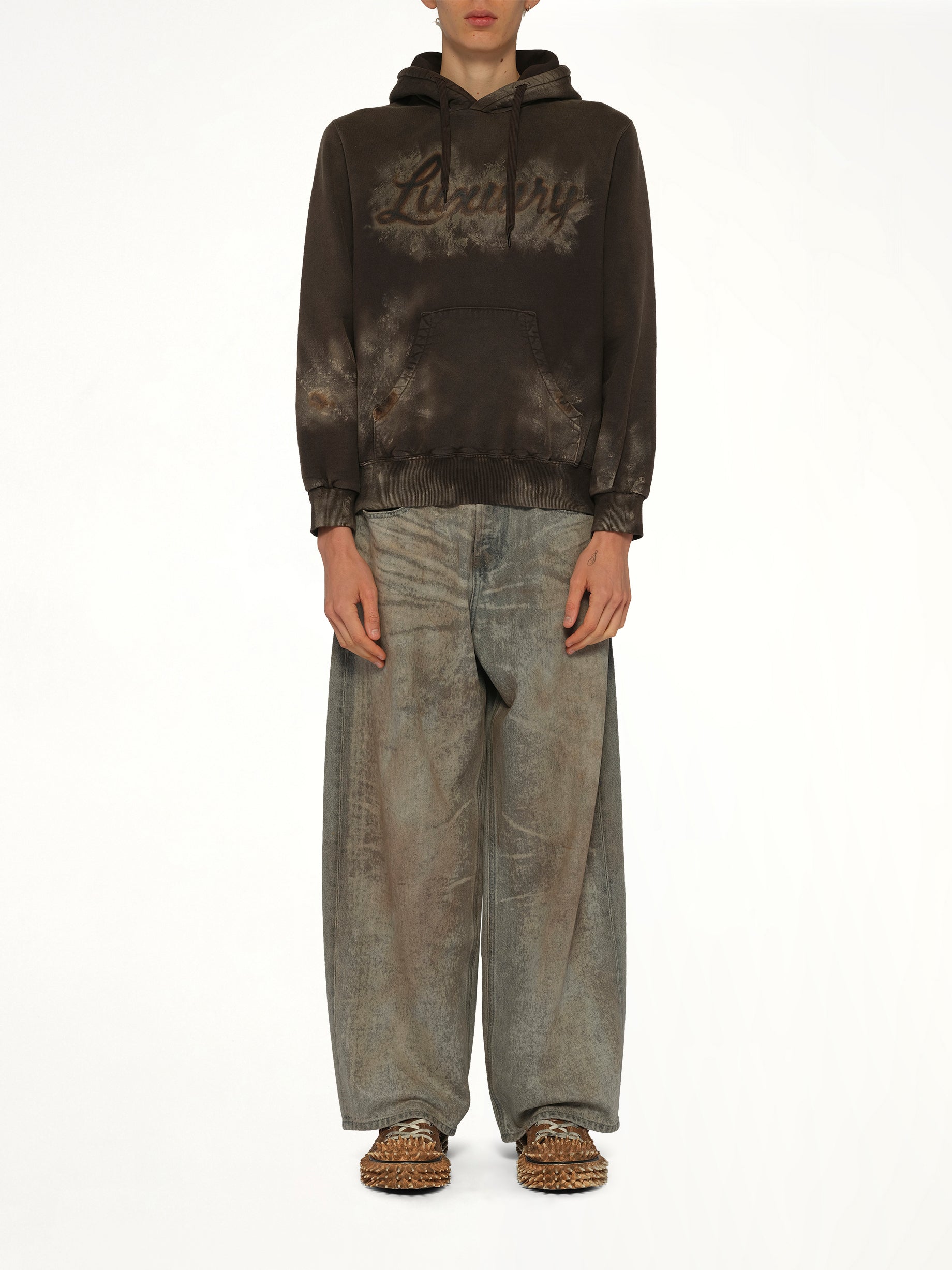 Doublet's Luxury Mud Paint Hoodie in Brown is a unique and stylish addition to any wardrobe. This hoodie combines contemporary design with a distinctive mud paint effect, making it a standout piece.