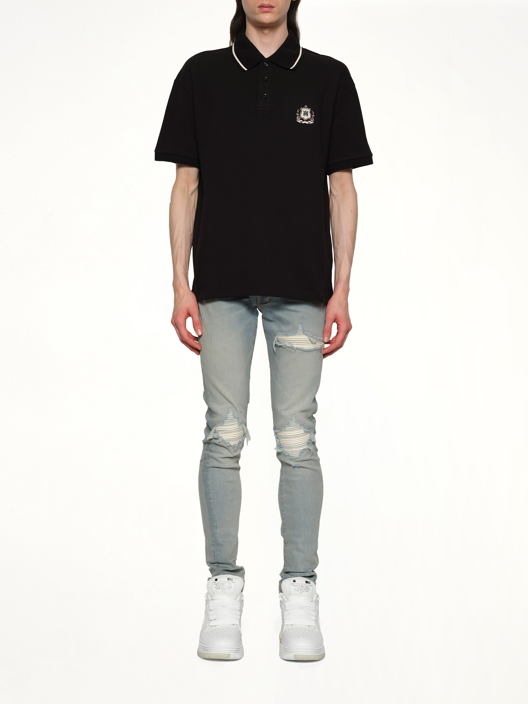 Amiri's MA Crest Polo in Black is a sophisticated blend of luxury and casual style. This polo shirt features a sleek design that effortlessly elevates any wardrobe.