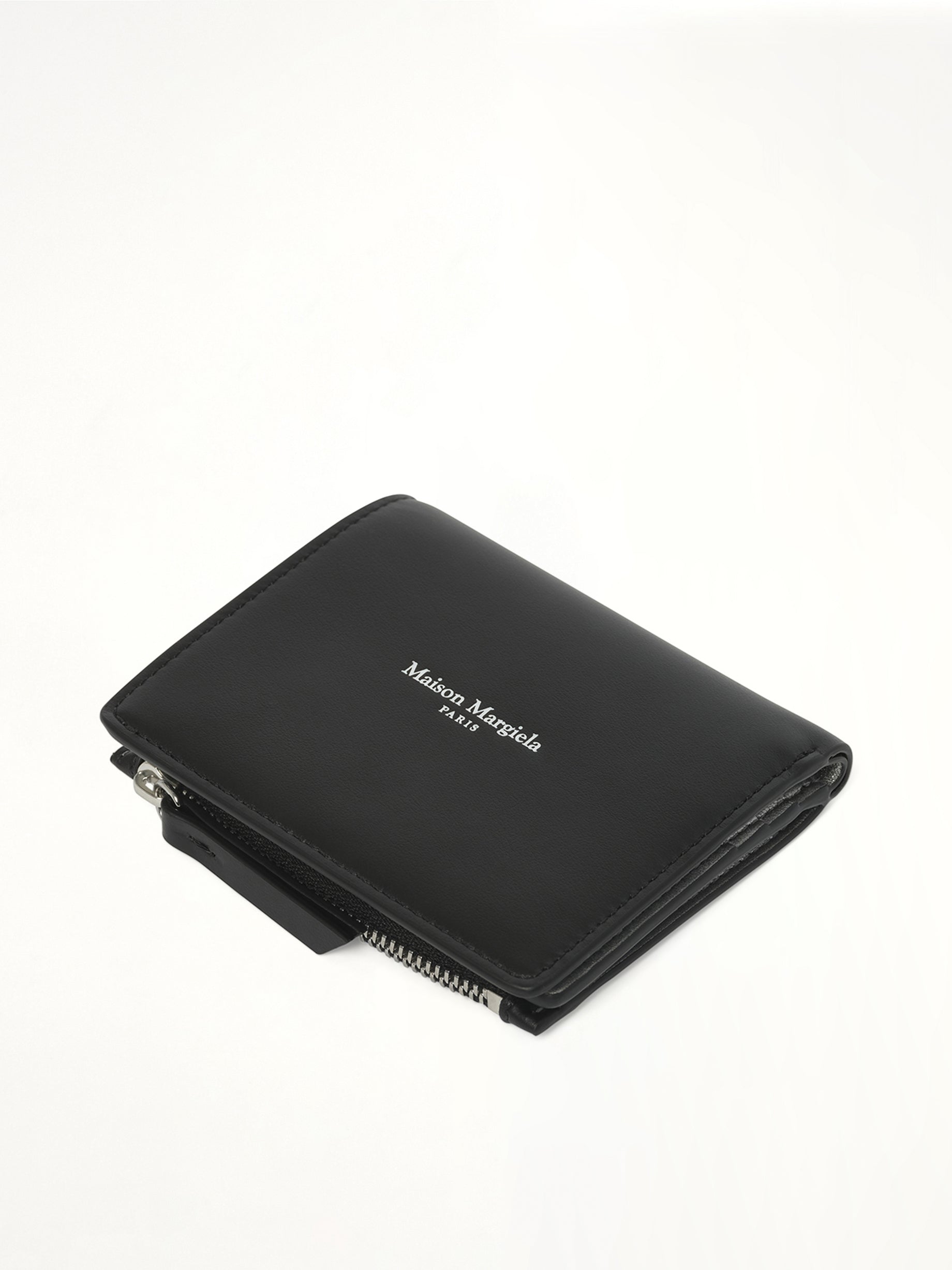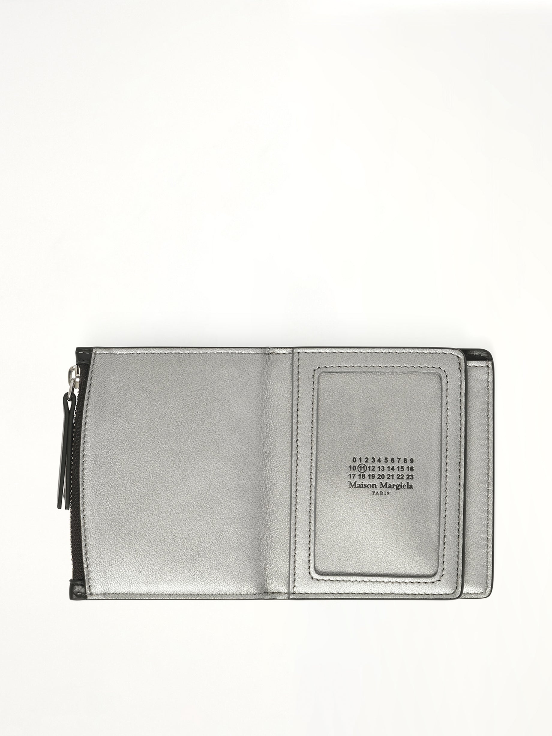 Maison Margiela's Maison Margiela Flip Wallet in Black/Silver is a sleek and sophisticated accessory designed for the modern individual. This wallet combines functionality with a minimalist aesthetic, making it a versatile addition to any ensemble.