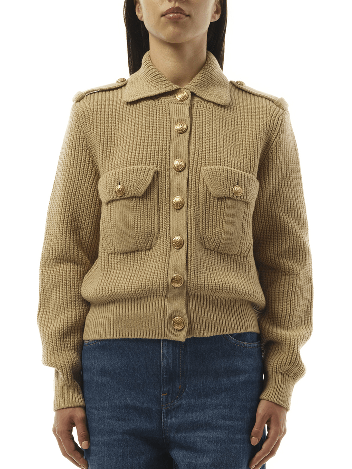 Expertly crafted, this Knit Cardigan in Smoky Beige is the perfect addition to any wardrobe. Made from soft, high-quality yarn, it provides warmth and comfort while still being stylish. The neutral smoky beige color makes it easy to pair with any outfit, making it a versatile and essential piece.