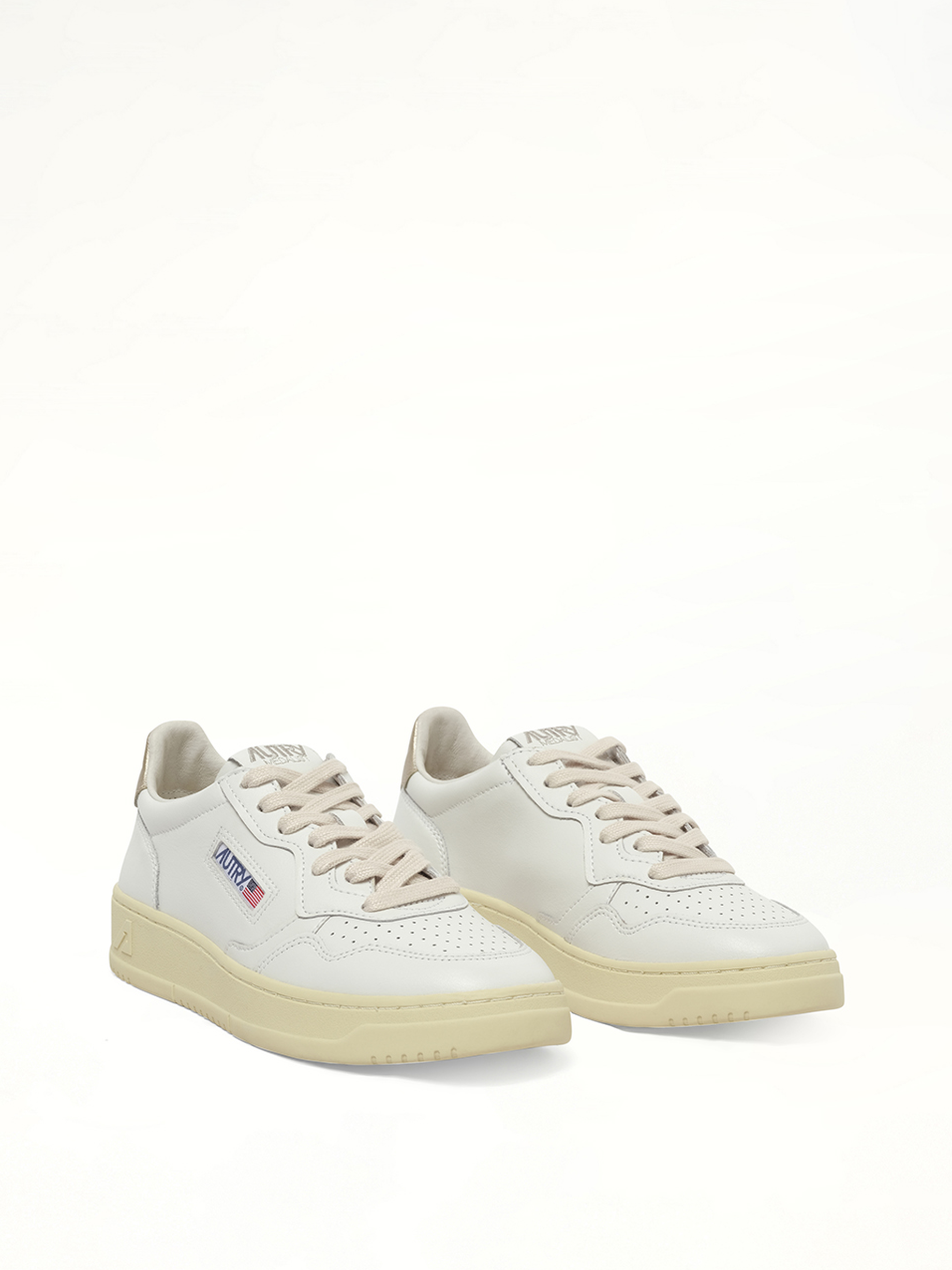 AUTRY's Medalist Low Sneakers in White/Gold are a stylish blend of classic design and modern flair, perfect for elevating any casual outfit. Step into comfort and sophistication with these must-have sneakers.