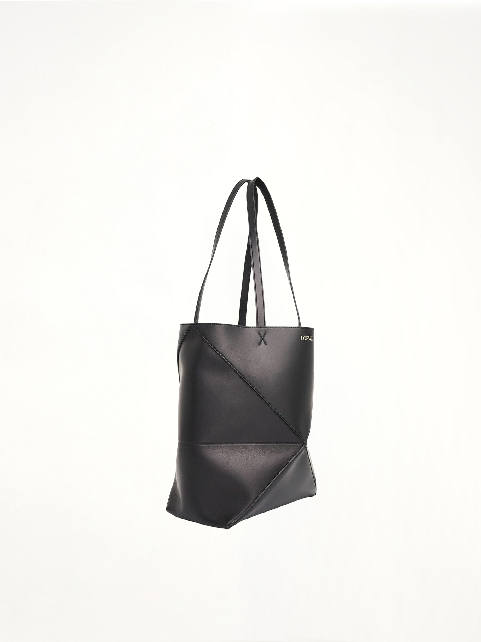 The Medium Puzzle Fold Tote Bag adds a twist to the classic style of calfskin tote bags. Crafted in soft, sleek black calfskin, this bag is perfect for work or weekend and is sure to make a statement. It’s a luxurious accessory that exudes sophistication, making it the envy of any crowd.