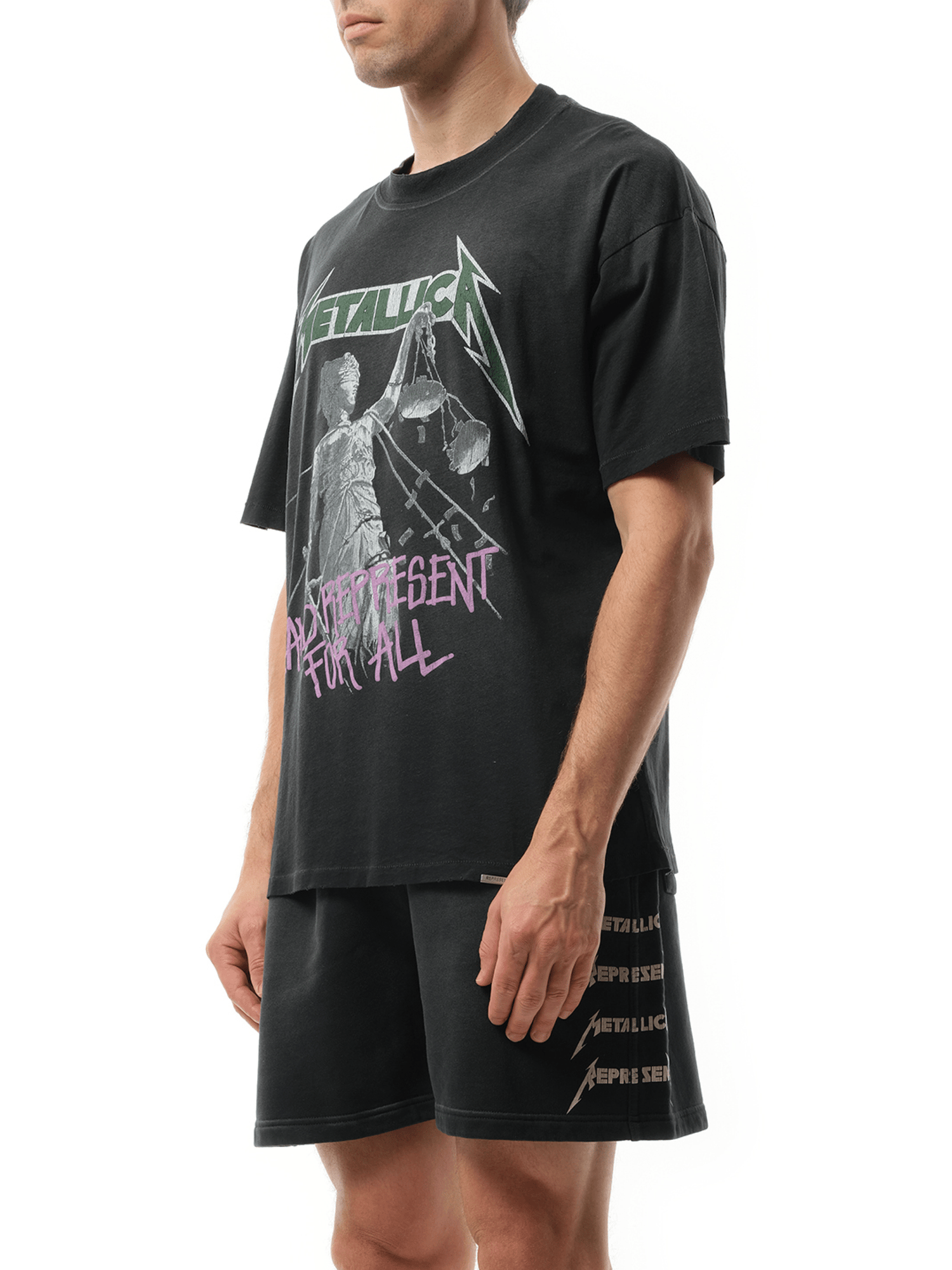 Made from high-quality material, it features a bold design with the iconic Metallica Justice album cover. With its stained black color and comfortable fit, this t-shirt will make a statement while keeping you comfortable all day long.