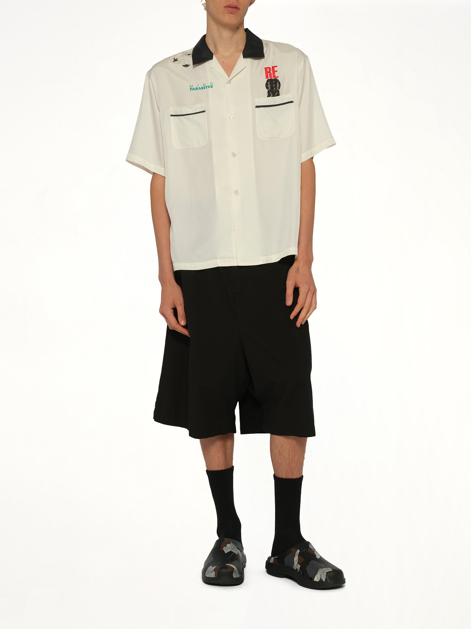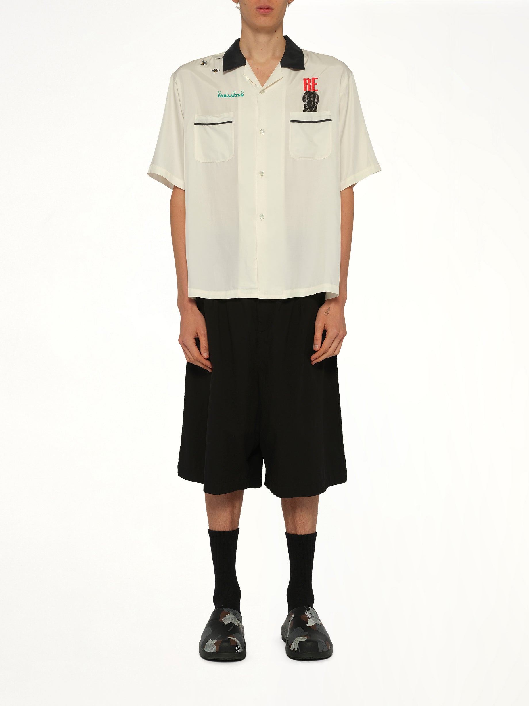 Undercover's Mind Parasite SS Shirt in Ivory is a unique piece that blends avant-garde design with everyday wearability. This shirt features a striking graphic print that captures the essence of the brand's innovative aesthetic.