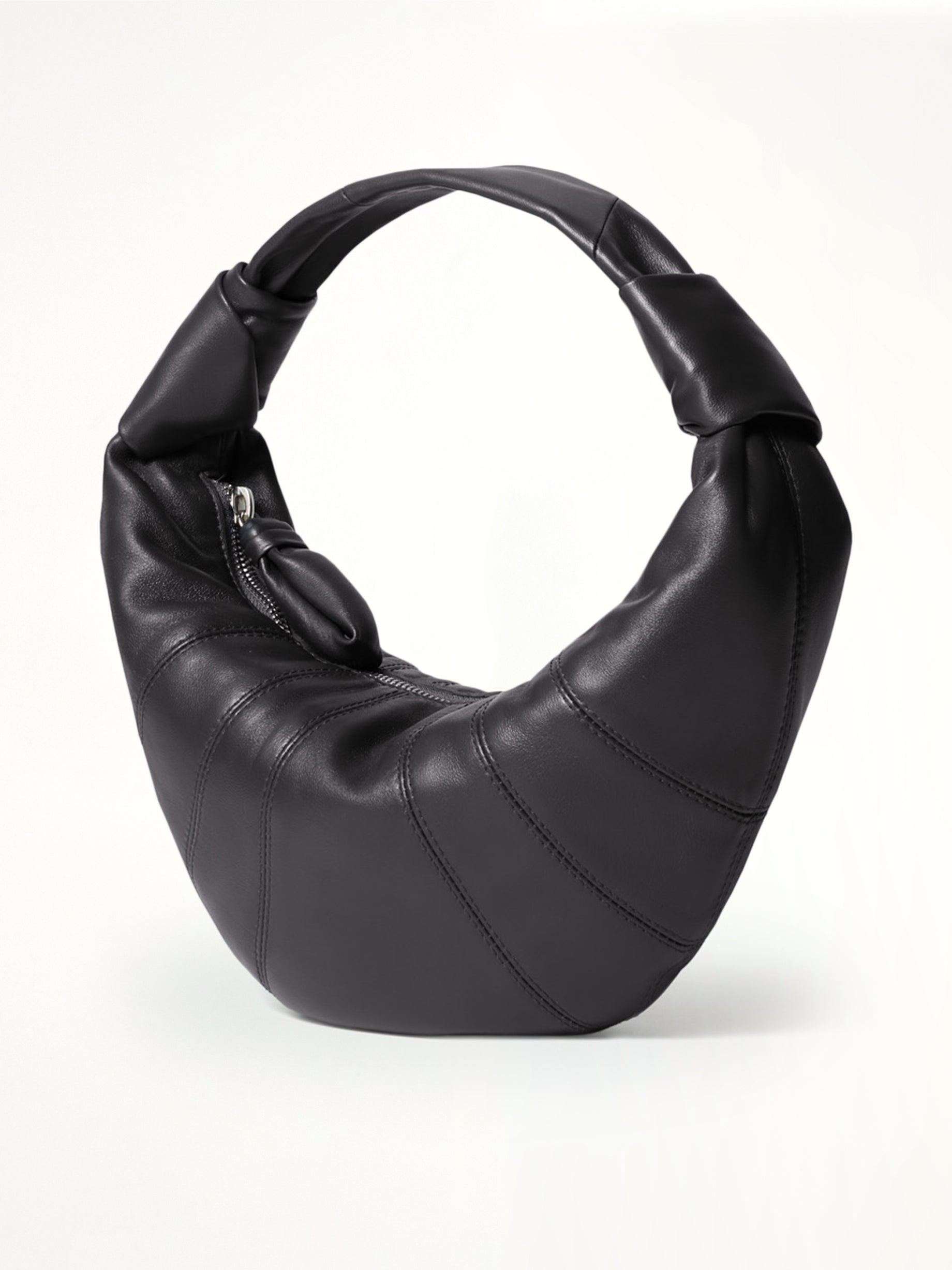 Lemaire's Mini Fortune Croissant Bag in Dark Chocolate is a chic and compact accessory that combines elegance with practicality. Its unique design and rich color make it a standout piece for any occasion.