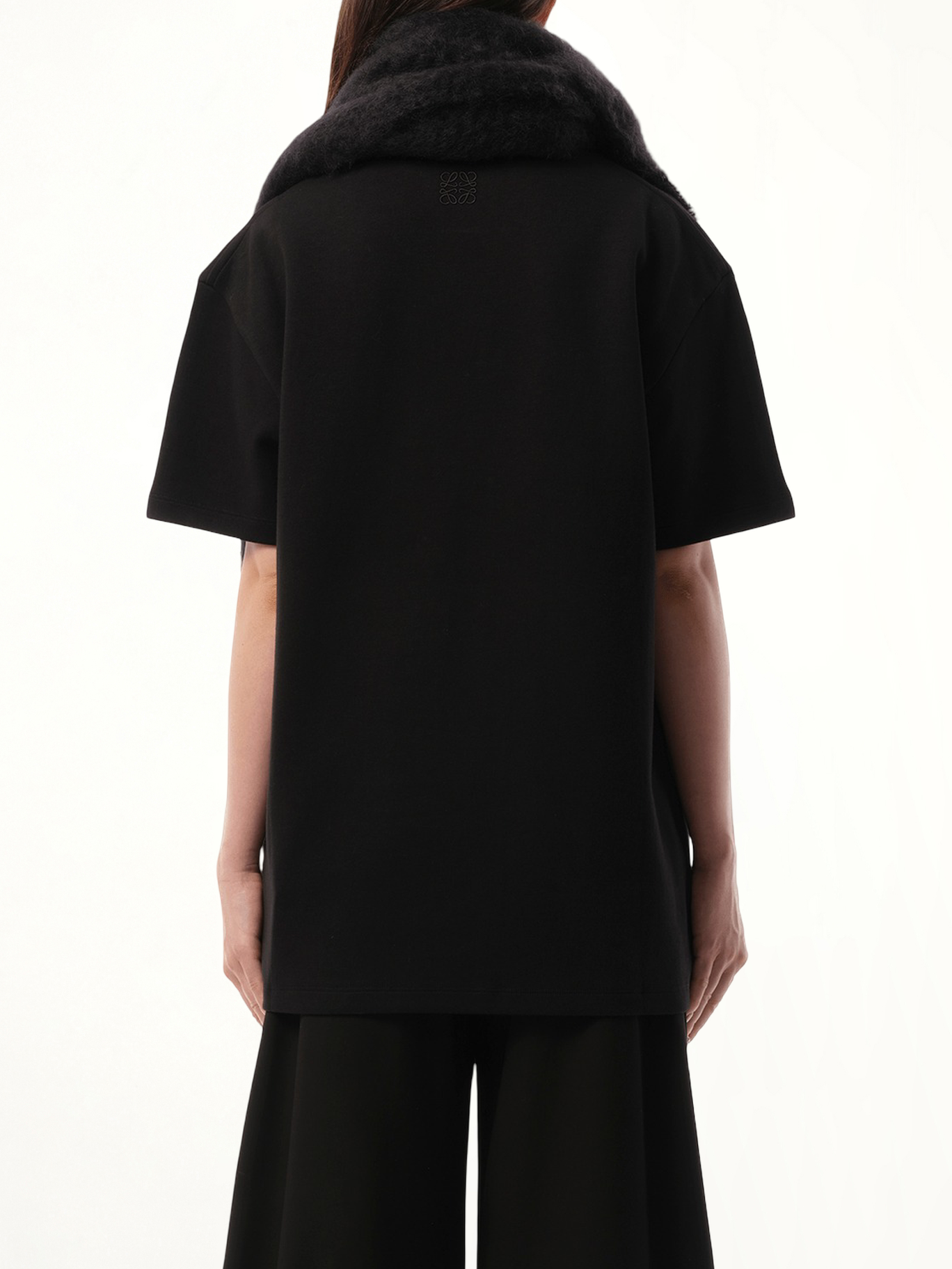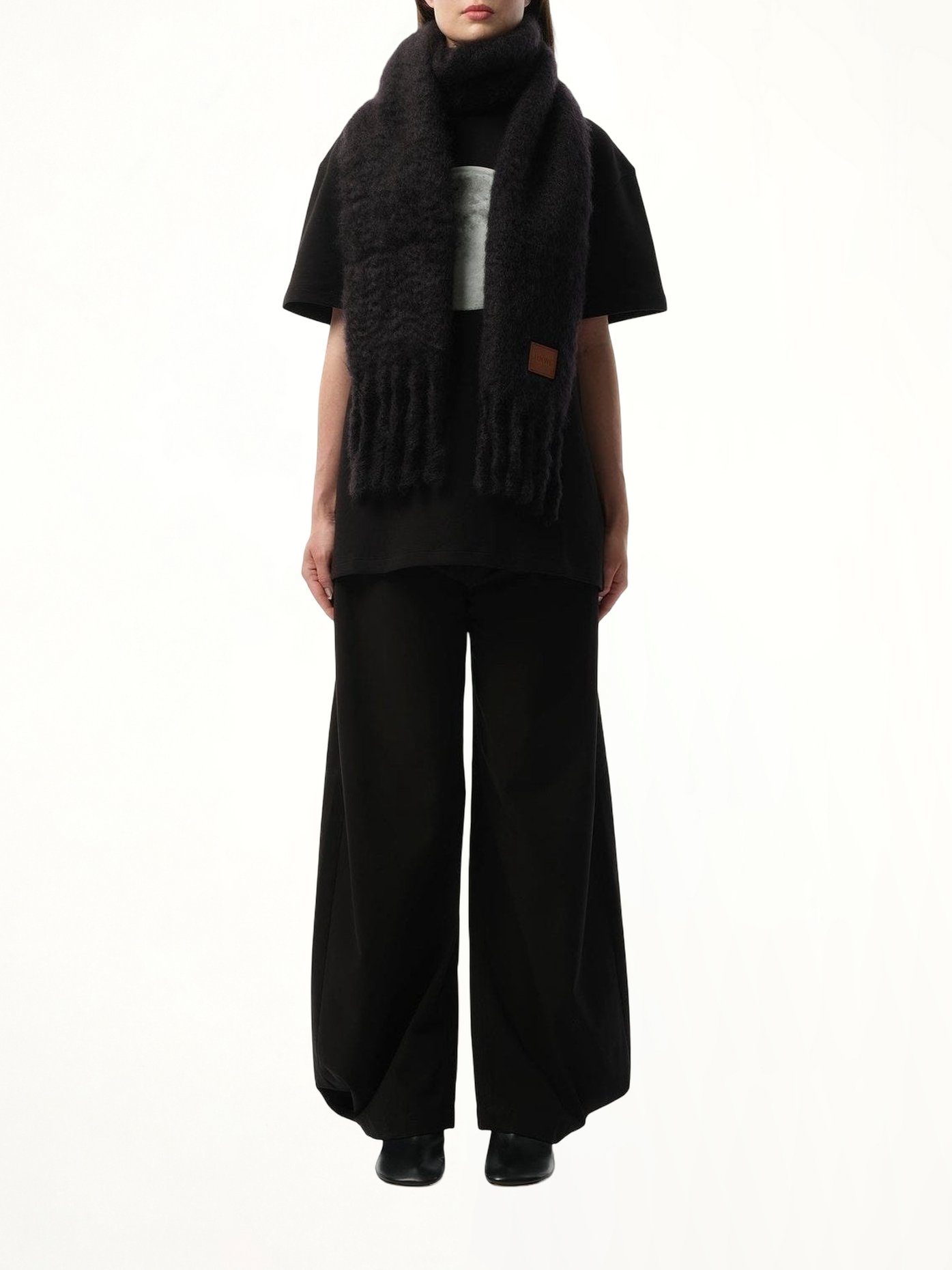 Expertly crafted from a luxurious mohair blend, this black scarf is the perfect accessory to keep you warm and stylish during the colder months. The soft and lightweight material provides ultimate comfort while the sleek black color adds a touch of sophistication.