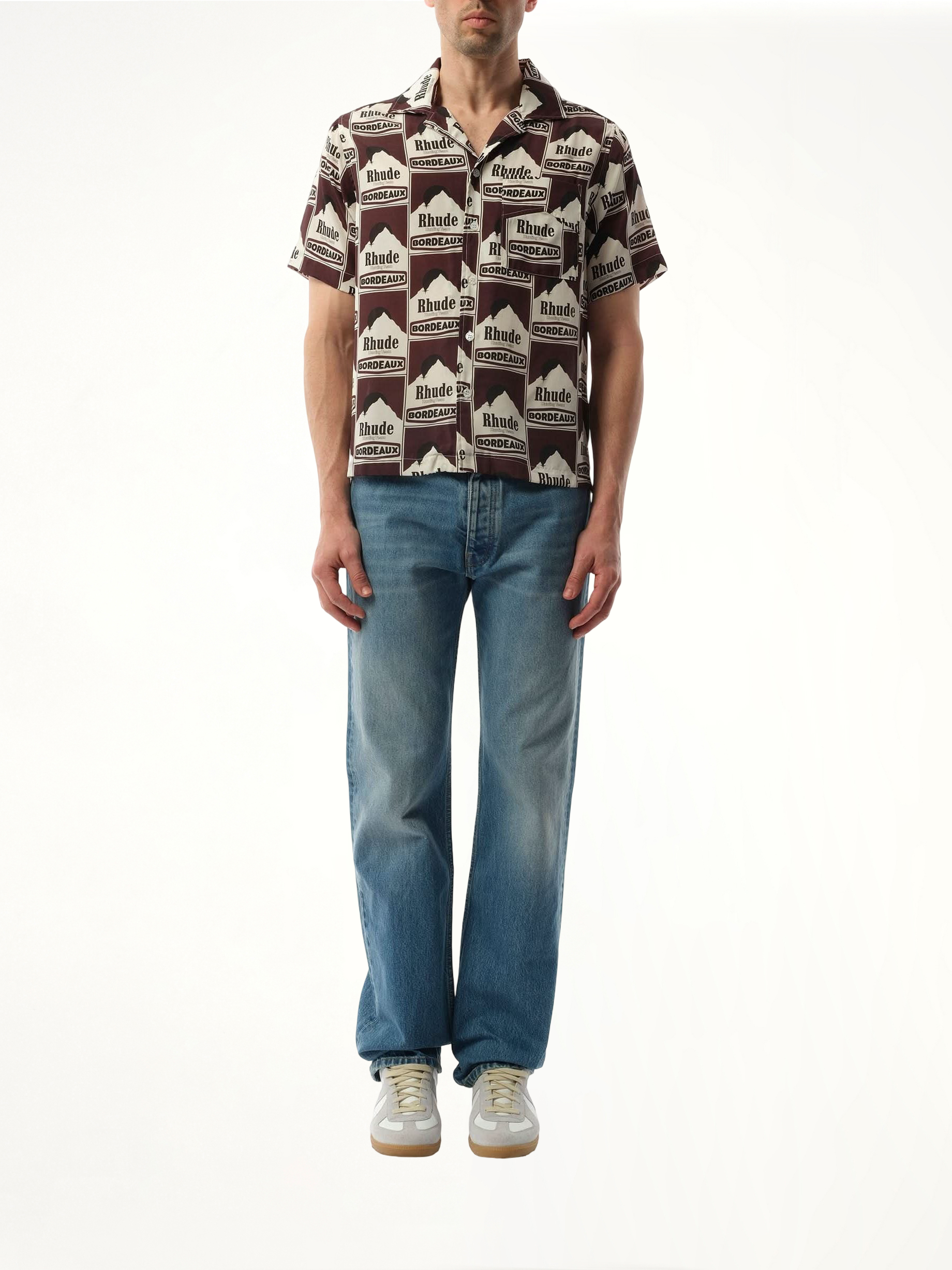 Moonlight Bordeaux Silk Shirt in Maroon/Off White