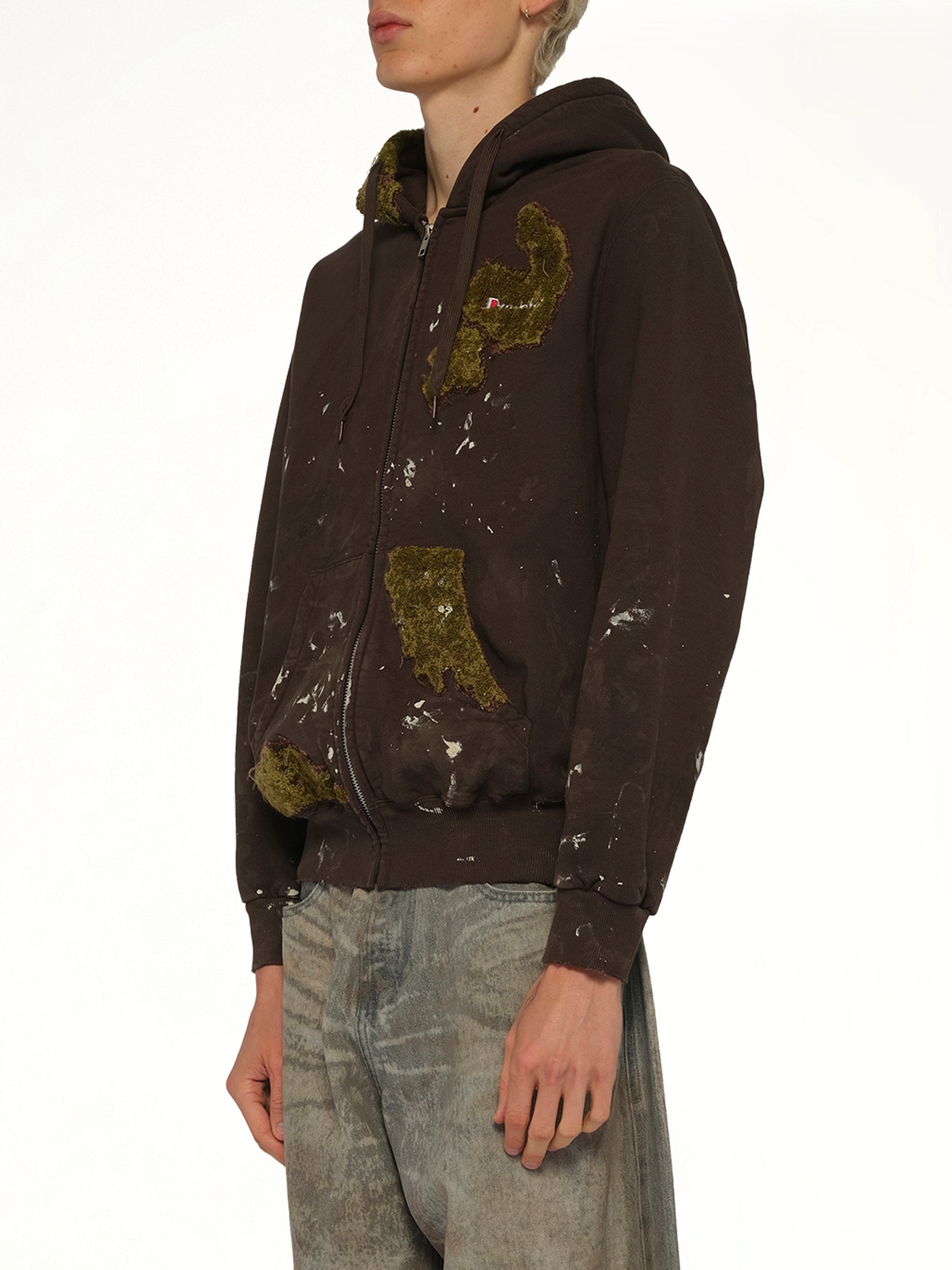 Doublet's Moss-Grown Embroidery Hoodie in Brown is a unique blend of nature-inspired design and contemporary fashion. This hoodie features intricate embroidery that mimics the look of moss, adding a touch of the outdoors to your wardrobe.