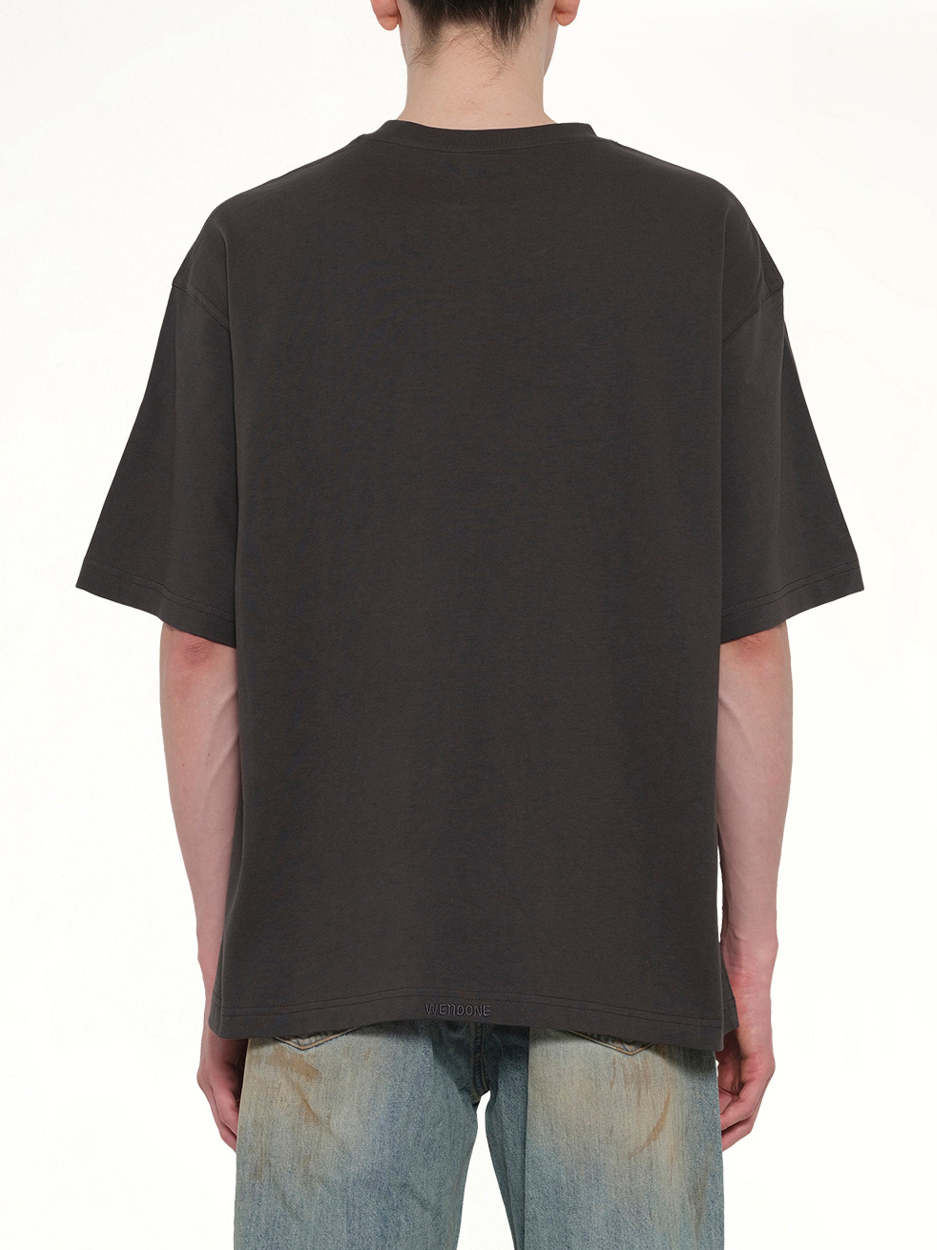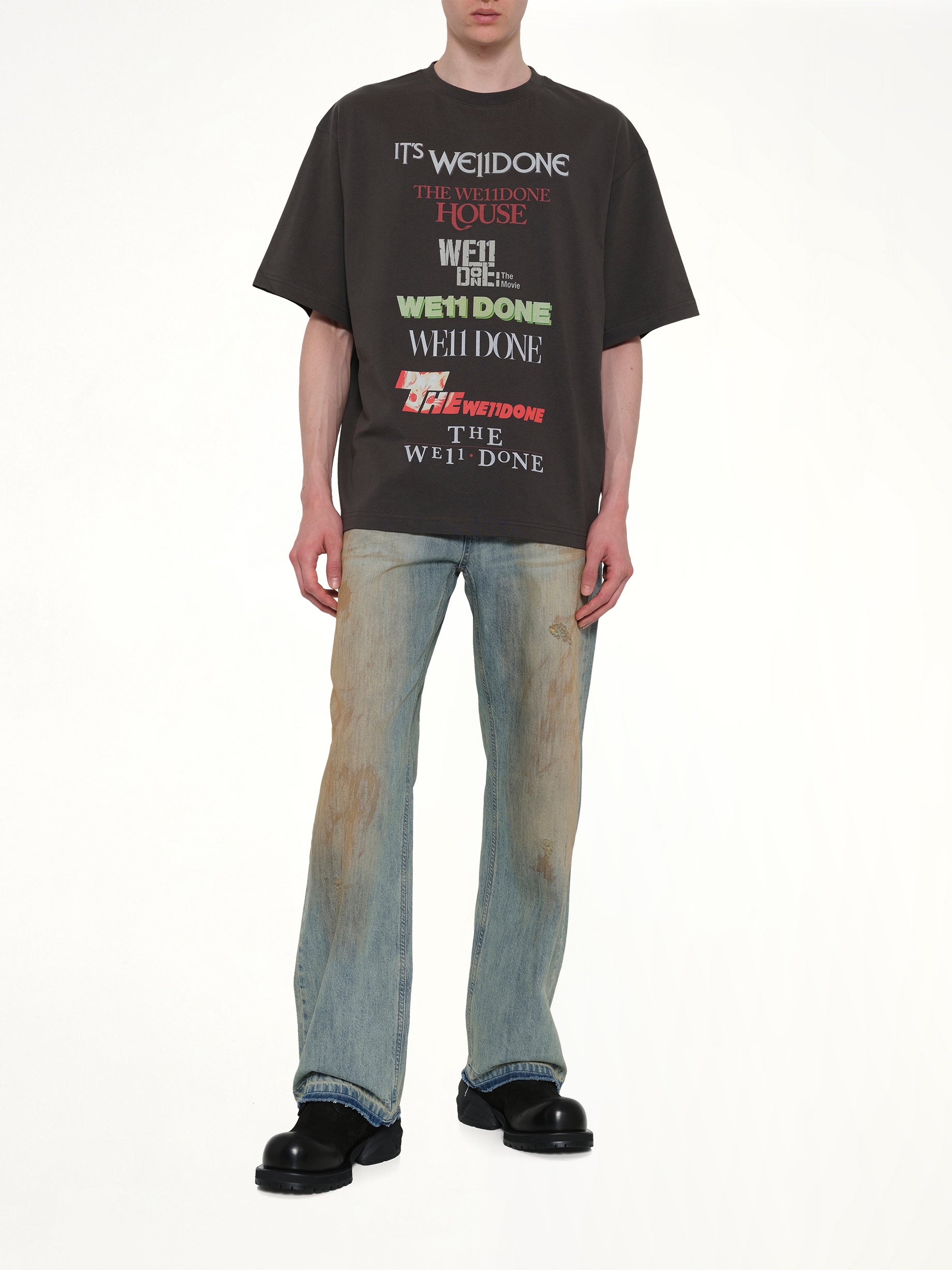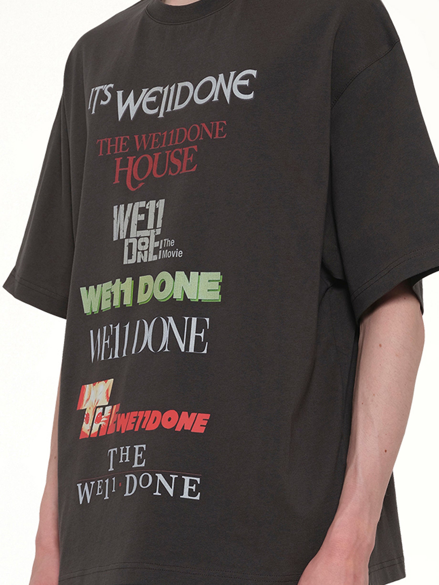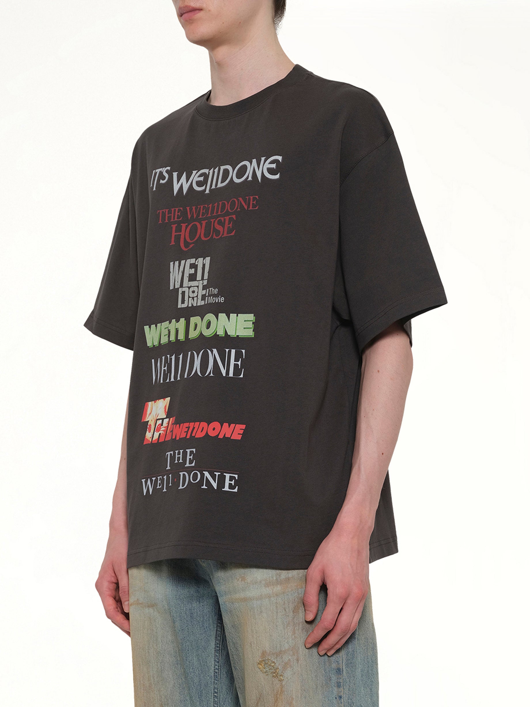 We11done's Multi Graphic Logo T-Shirt in Grey is a stylish and contemporary piece that showcases the brand's unique design aesthetic. This t-shirt features multiple graphic logos, making it a standout addition to any casual wardrobe.