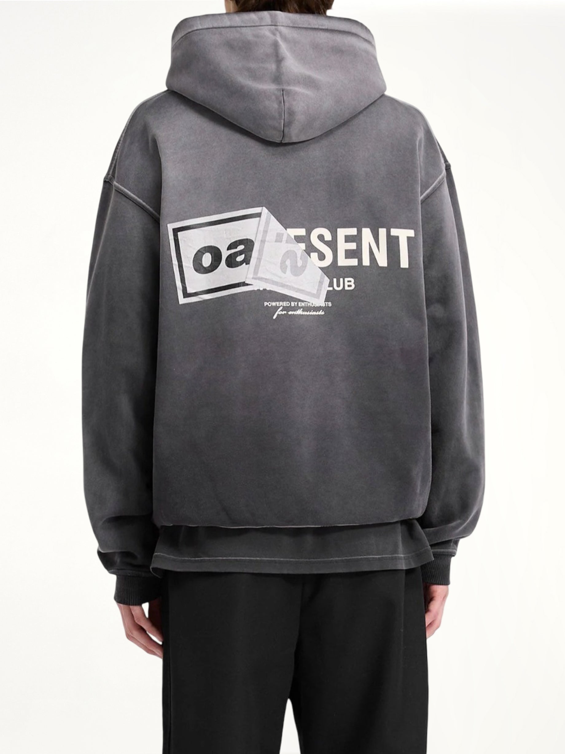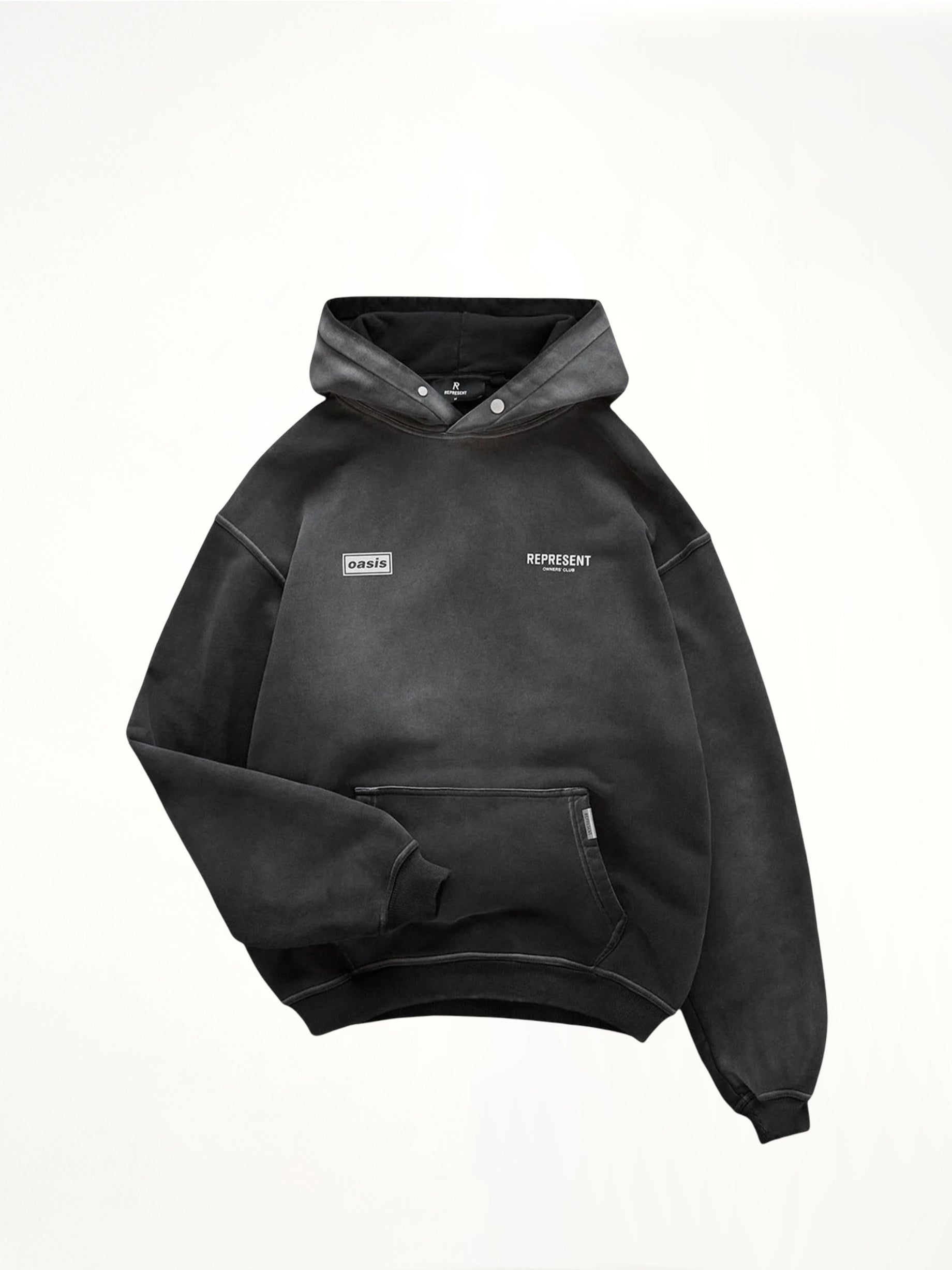 Represent's Oasis Owners Club Hoodie in Stained Black is a stylish and comfortable addition to any wardrobe. This hoodie combines a classic design with a modern twist, perfect for casual wear.