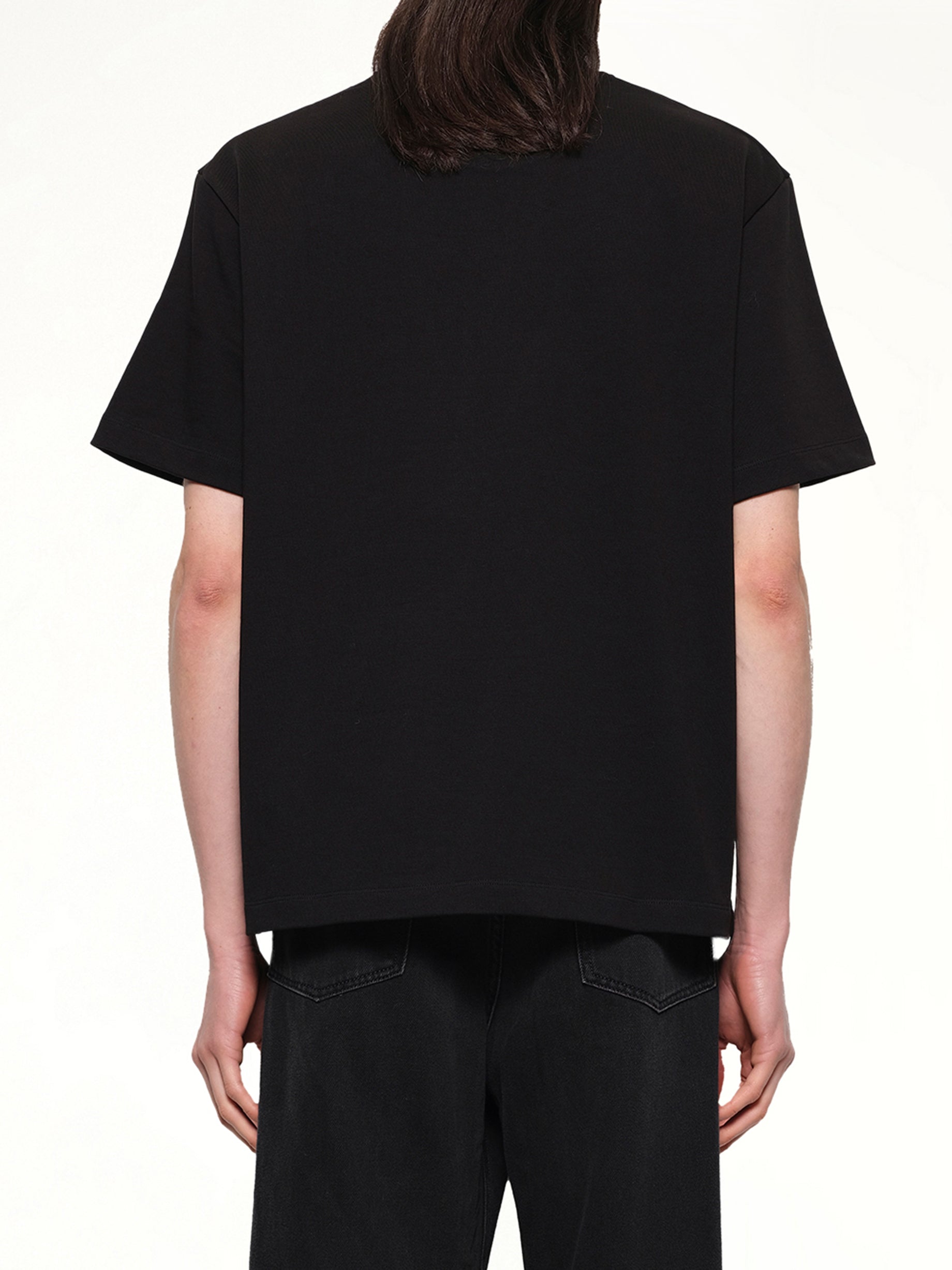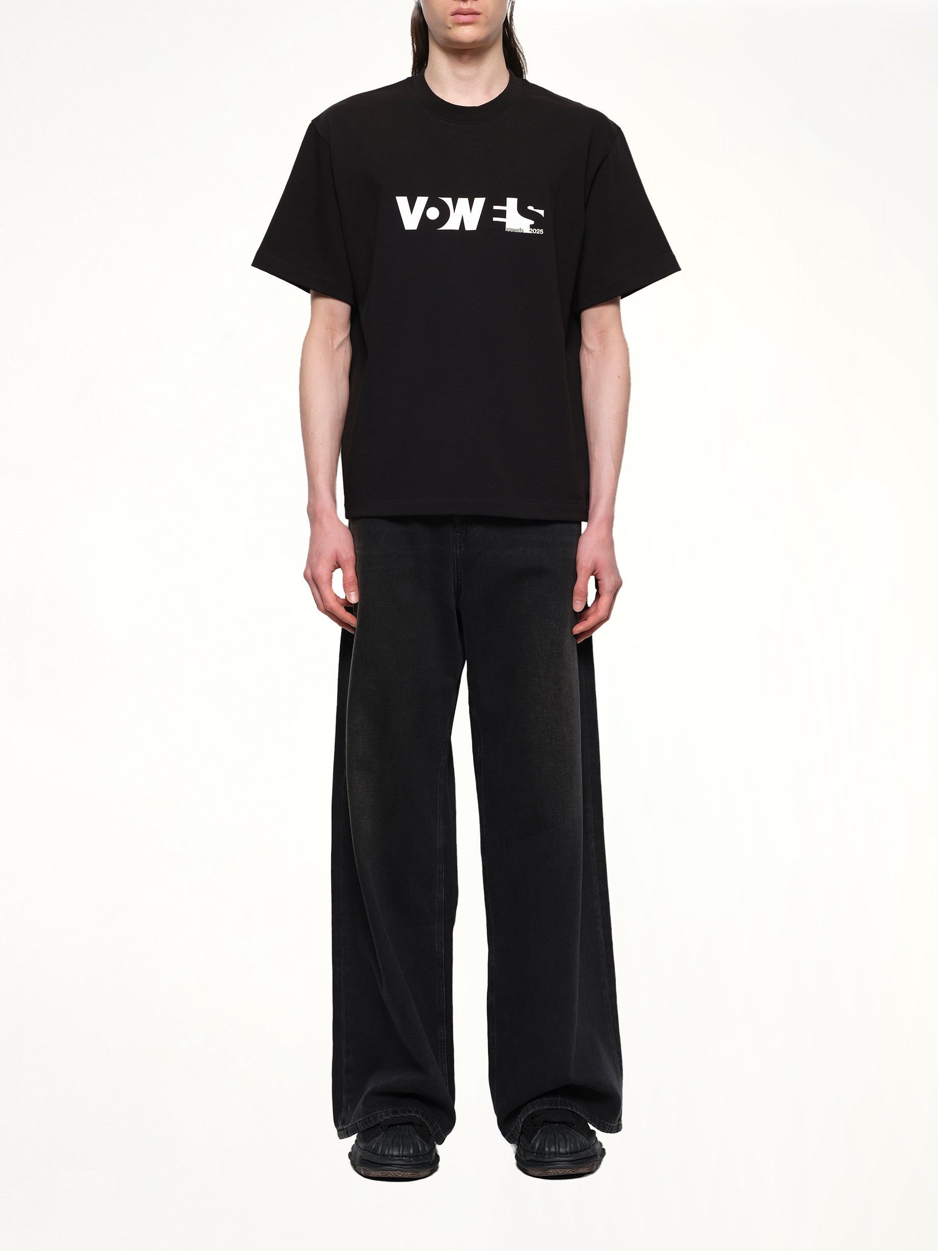 Vowels's Overall T-Shirt in Black is a versatile and stylish addition to any wardrobe. Perfect for casual outings or layering, this t-shirt offers both comfort and a sleek look.
