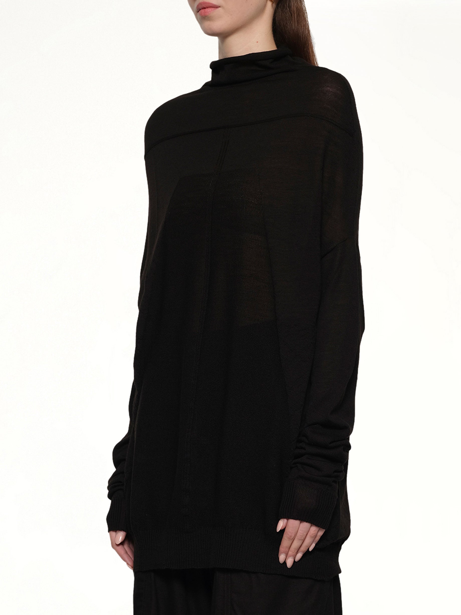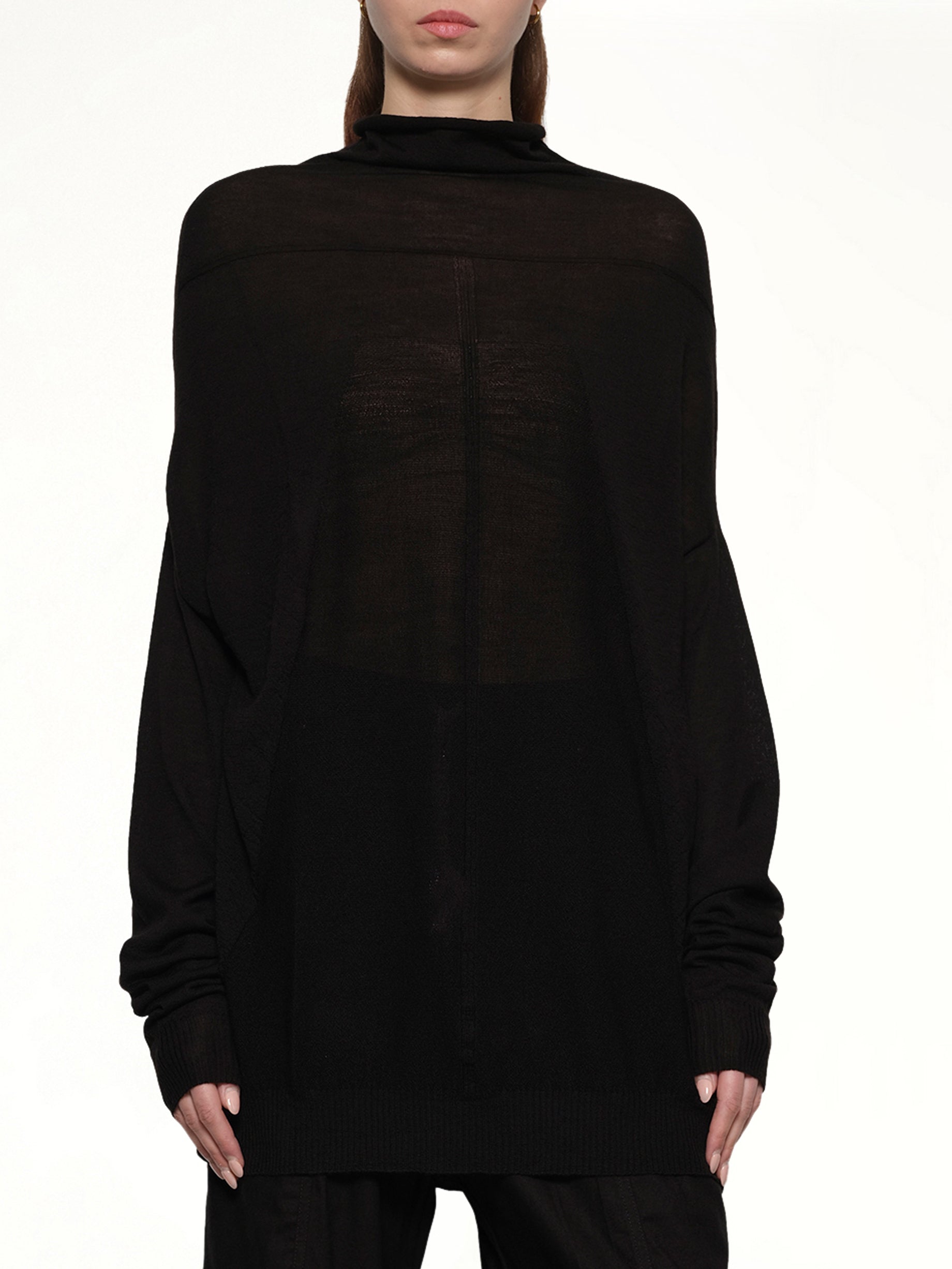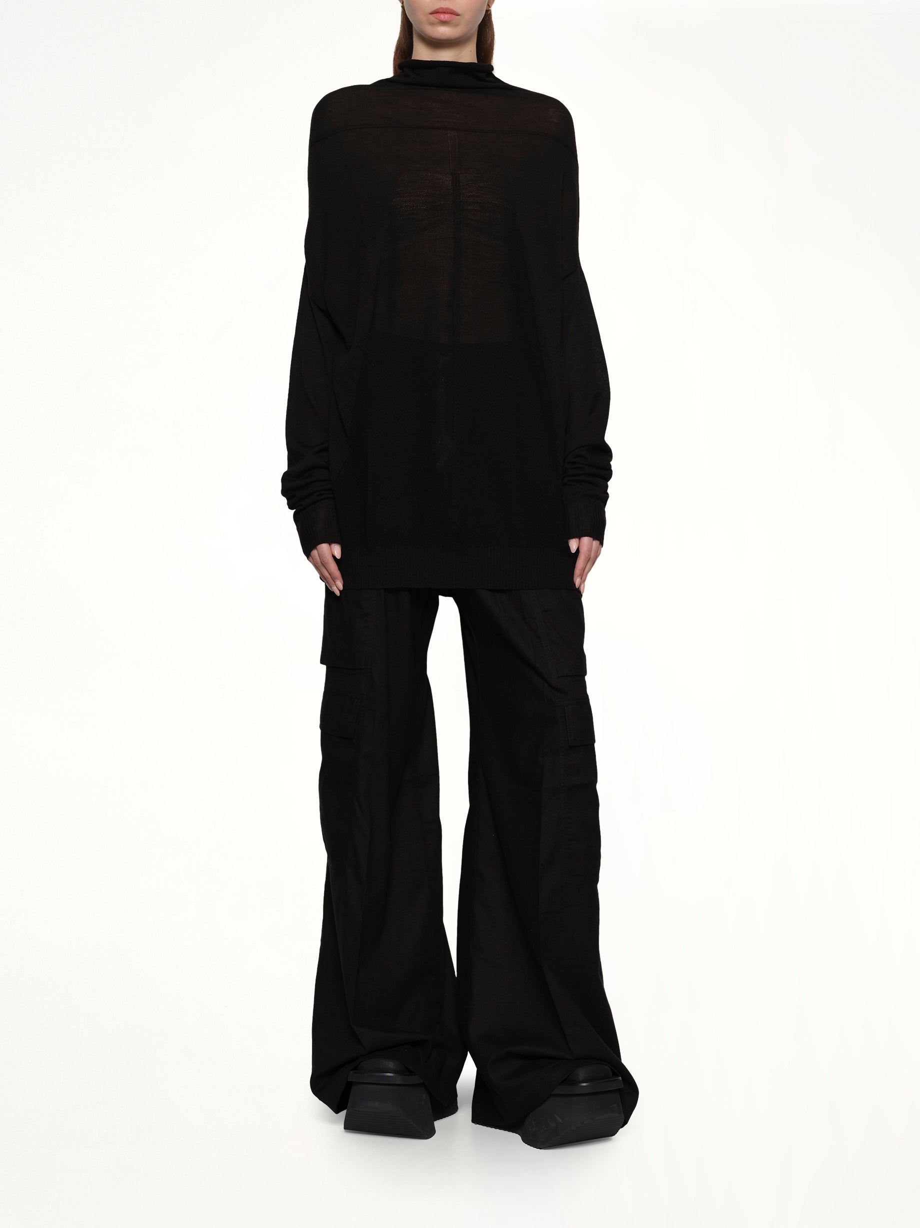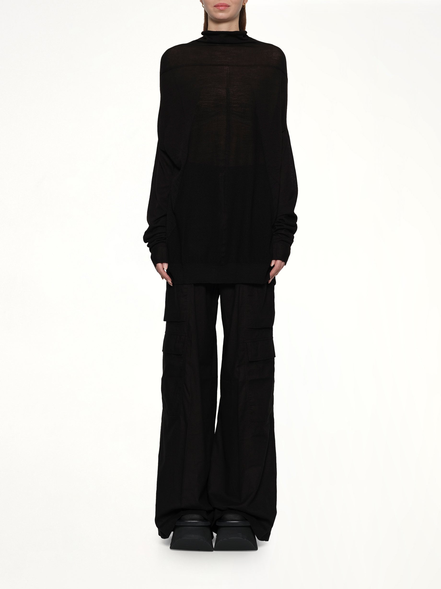 Rick Owens's Oversize Crater in Black is a bold statement piece that combines avant-garde design with a dramatic silhouette. This unique item showcases Owens's signature aesthetic, making it a standout addition to any wardrobe.
