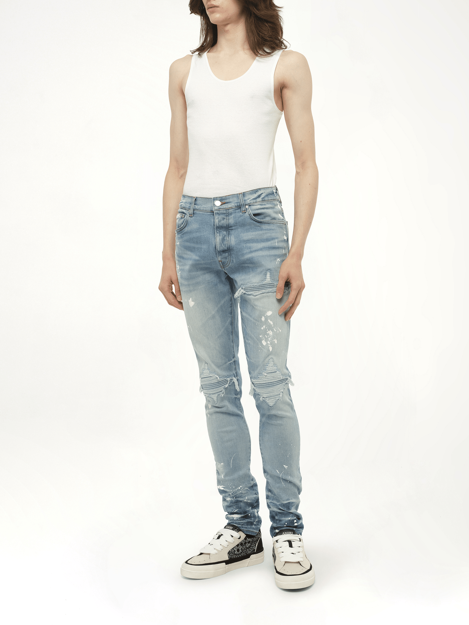 AMIRI's Painter Denim MX1 Jeans in Faded Indigo offer a unique blend of artistry and fashion-forward design, perfect for those who appreciate a touch of creativity in their wardrobe. These jeans are a statement piece that effortlessly combines style and comfort.