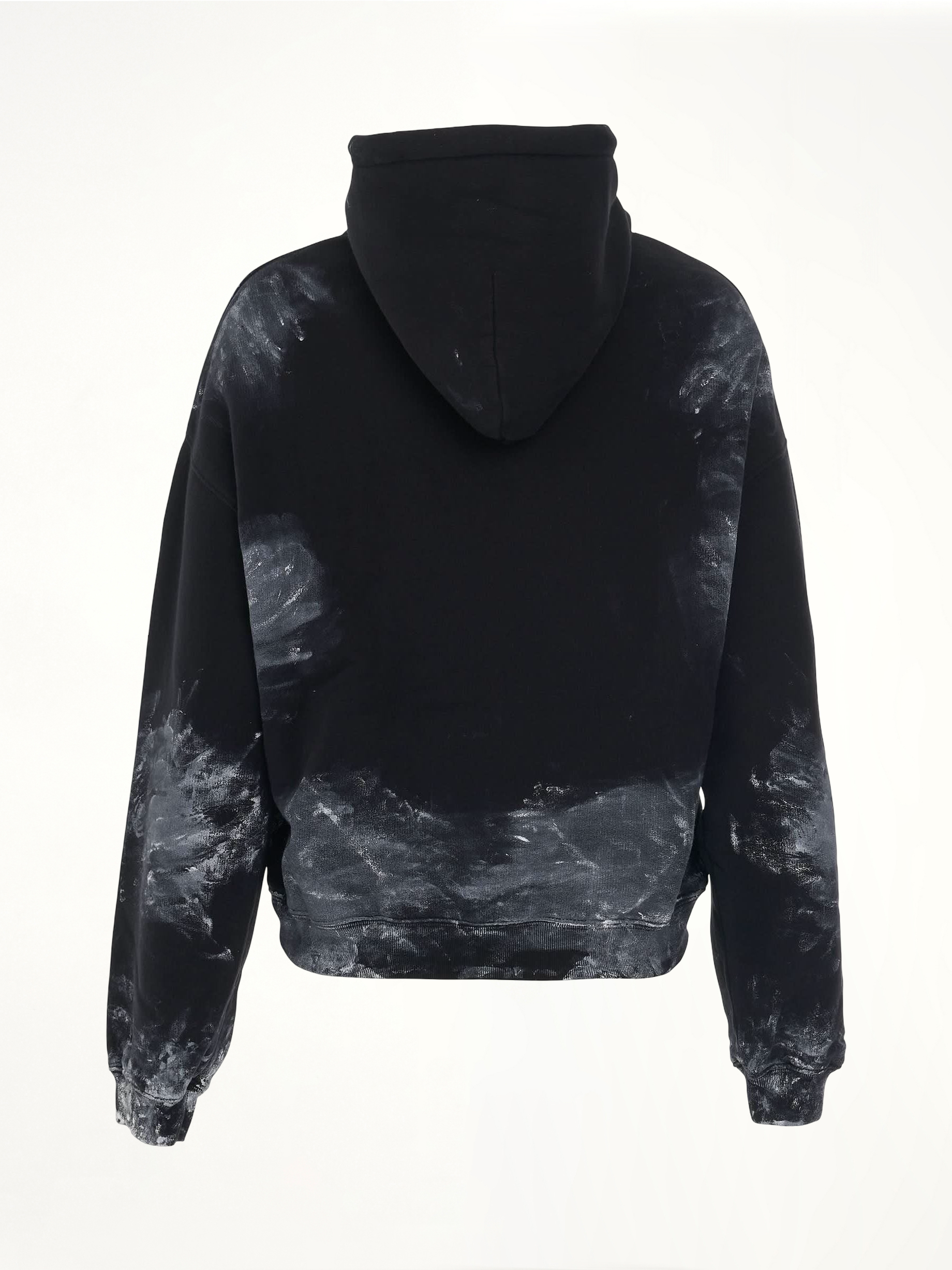Painter fitted hoodie in black cotton with painted design, classic hood and long sleeve
