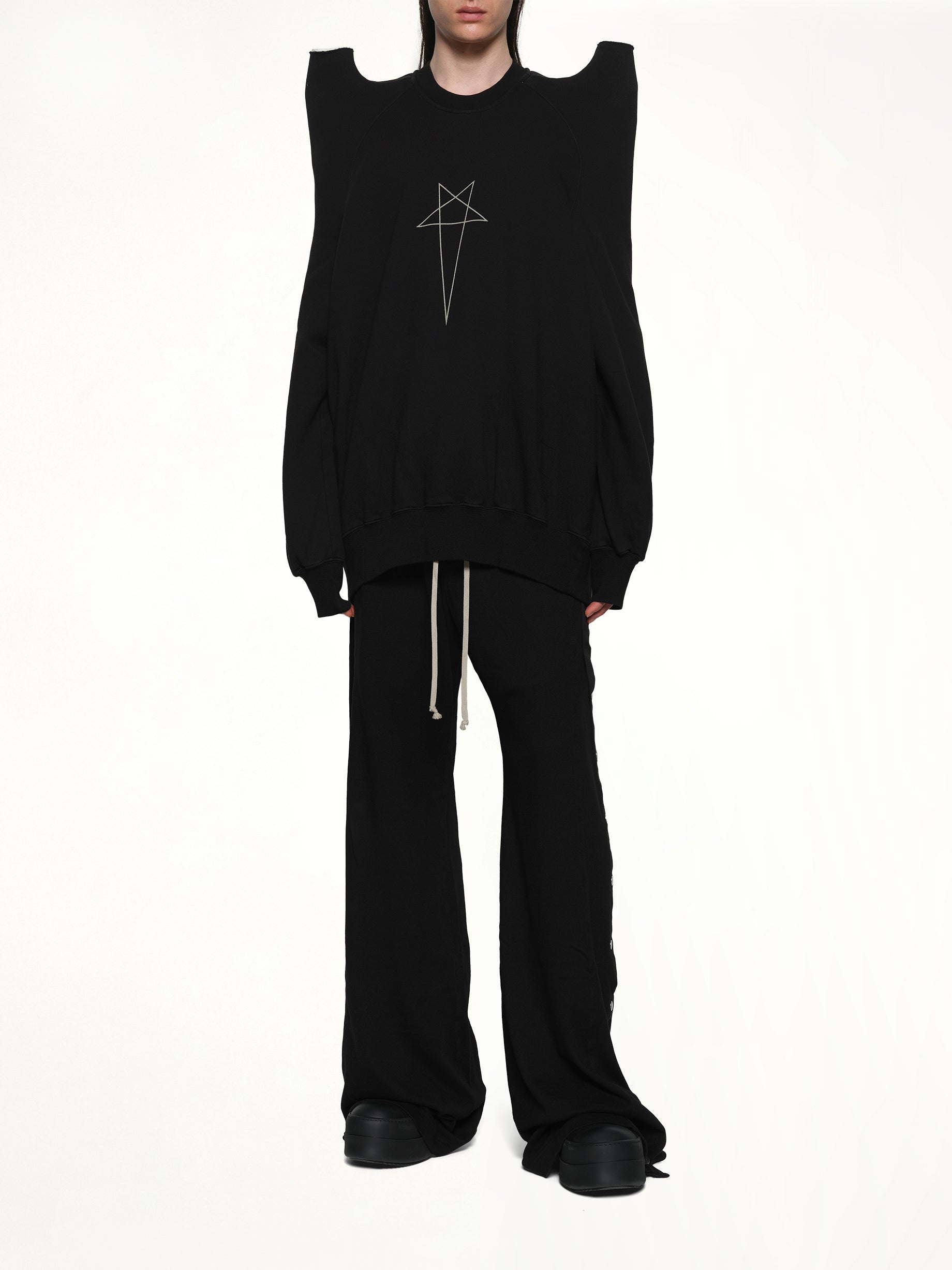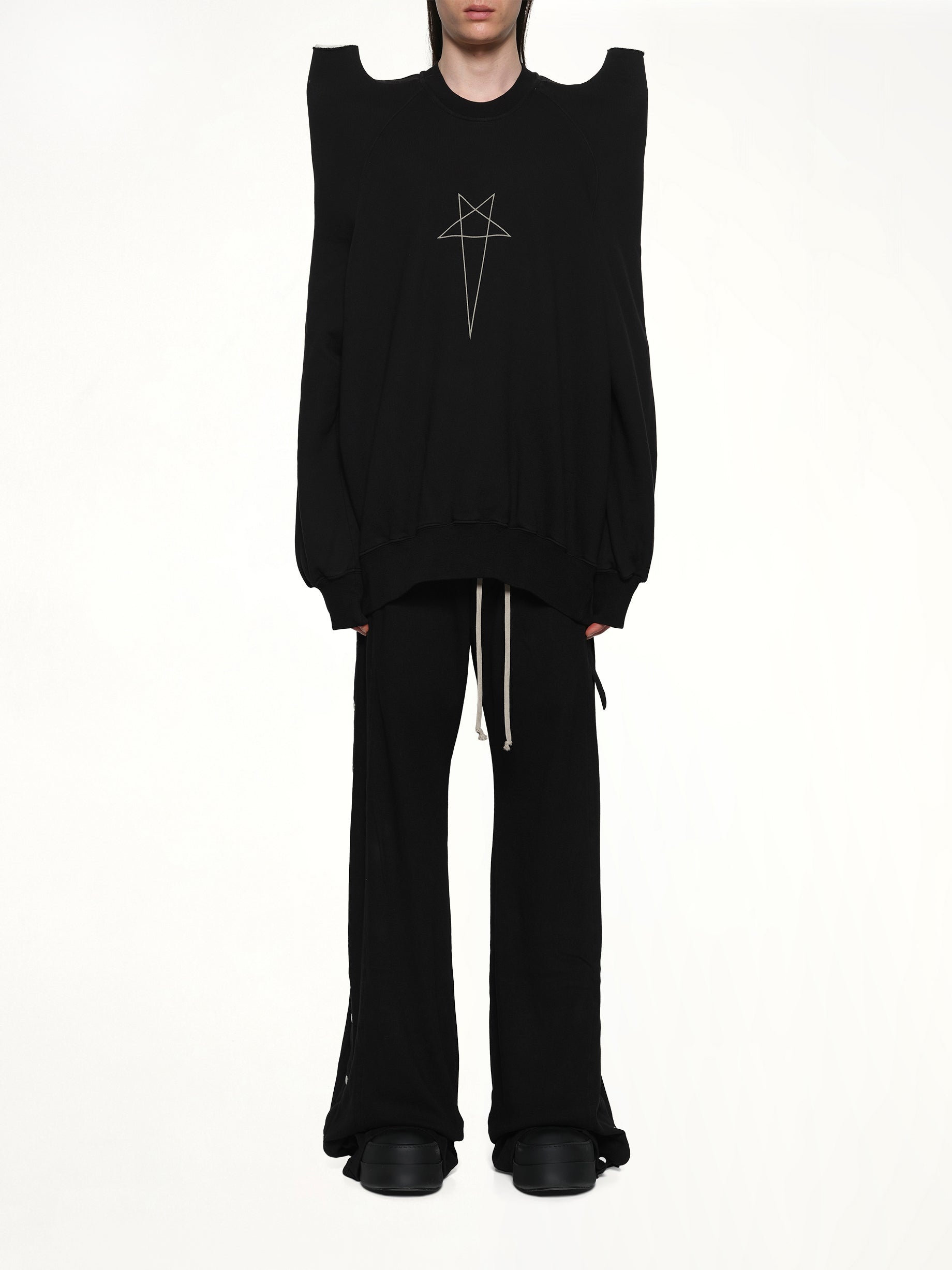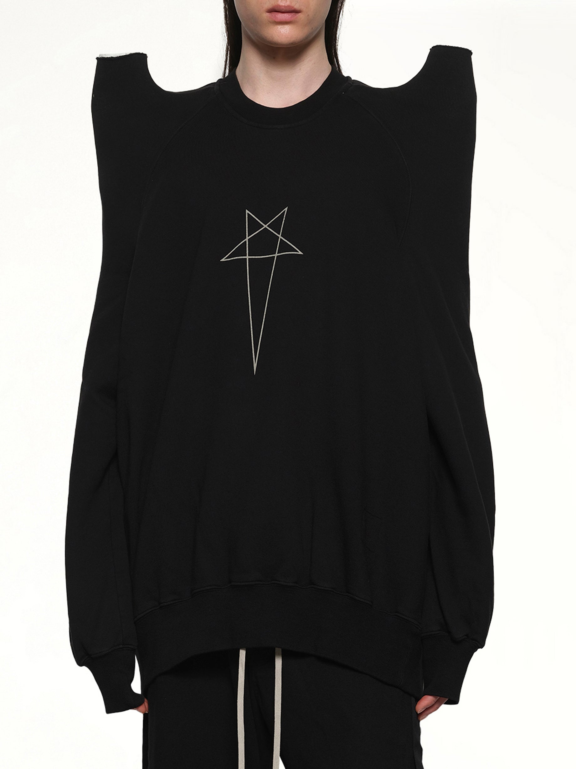 DRKSHDW's Pentagram Tec Sweat in Black/Pearl is a striking piece that combines modern design with comfort. This sweat features a unique pentagram motif, making it a standout addition to any wardrobe.