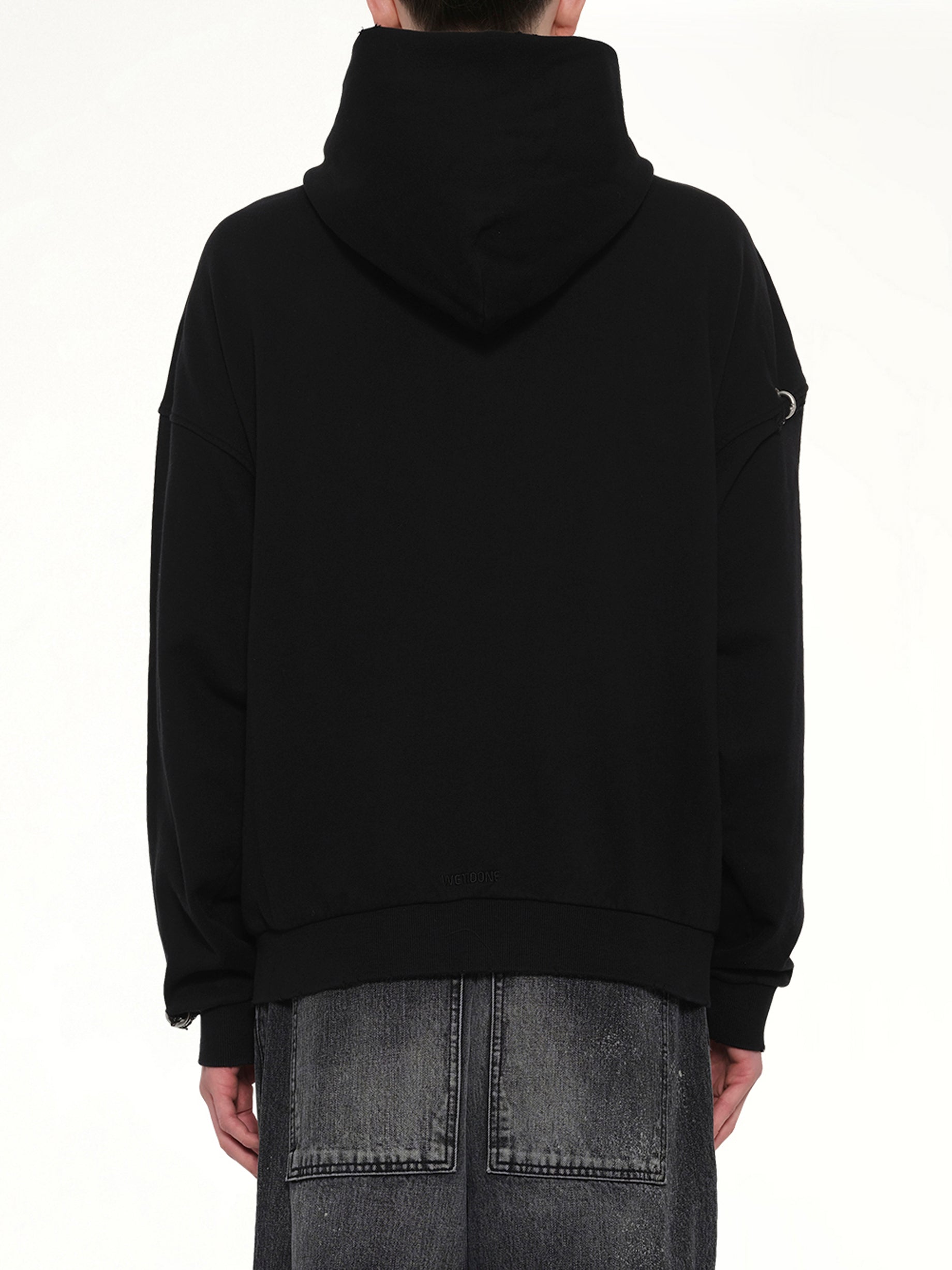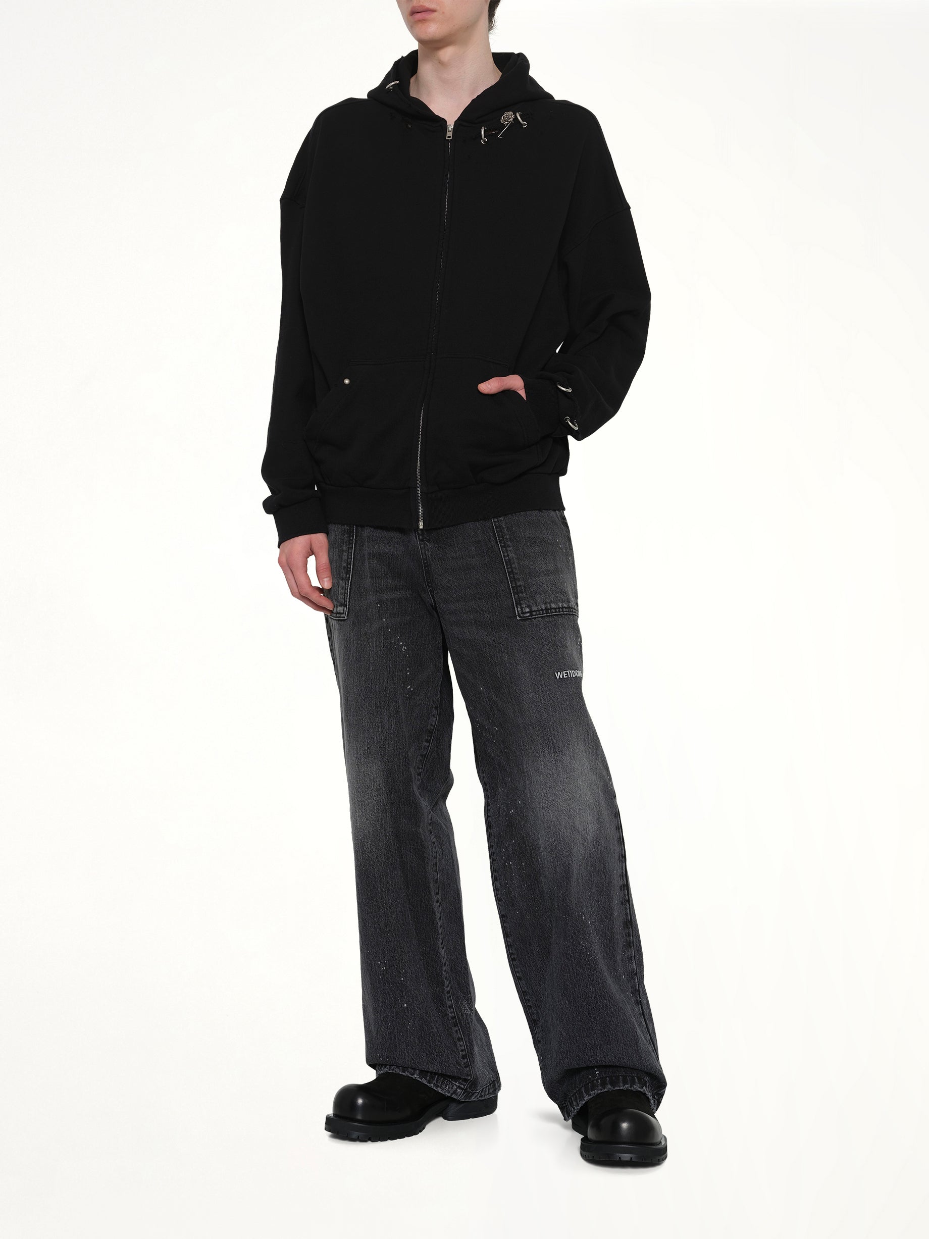 We11done's Piercing Detail Zip-Up Hoodie in Black is a bold statement piece that combines edgy design with everyday comfort. This hoodie features unique piercing details that add a modern twist to a classic silhouette.