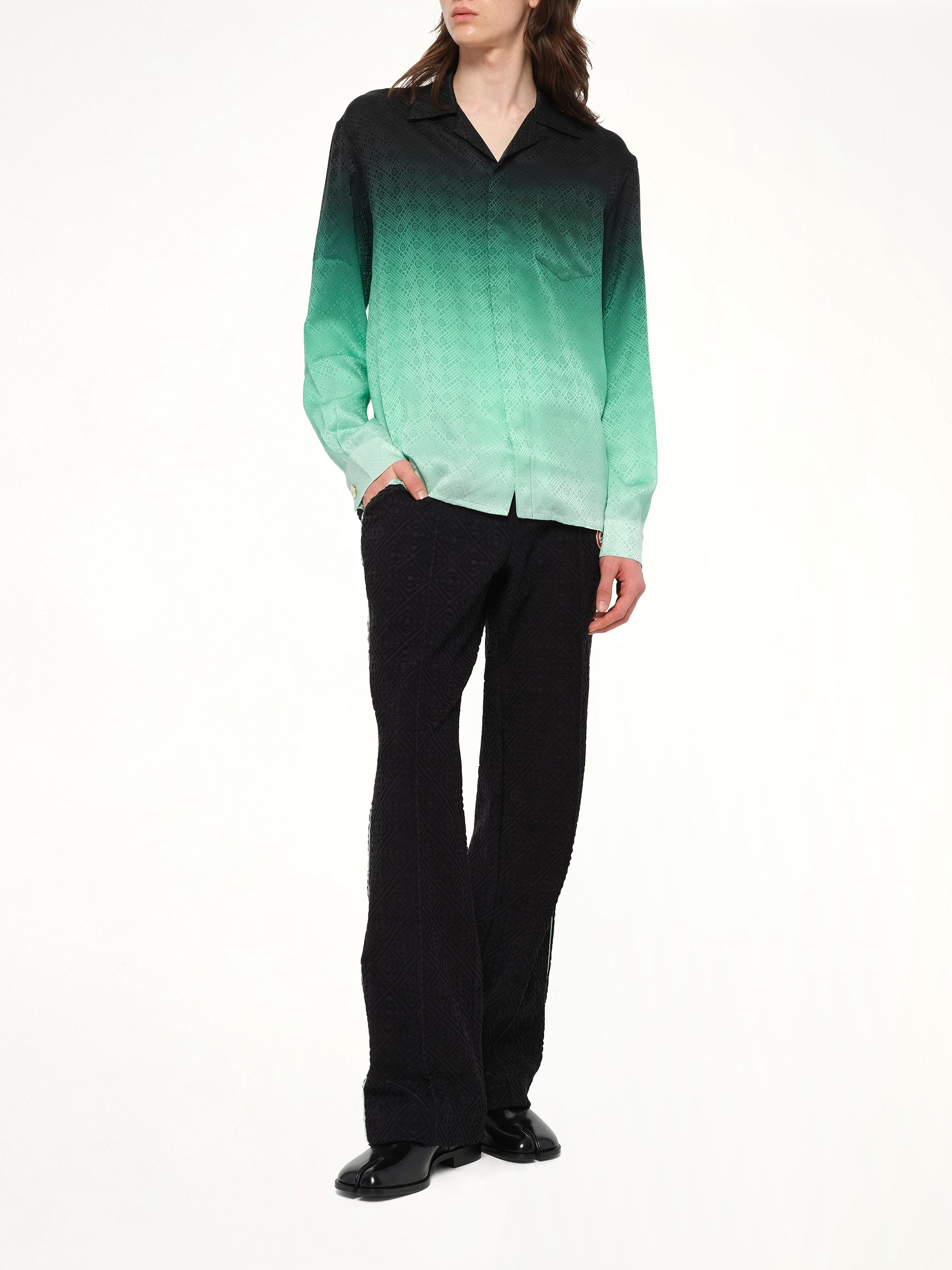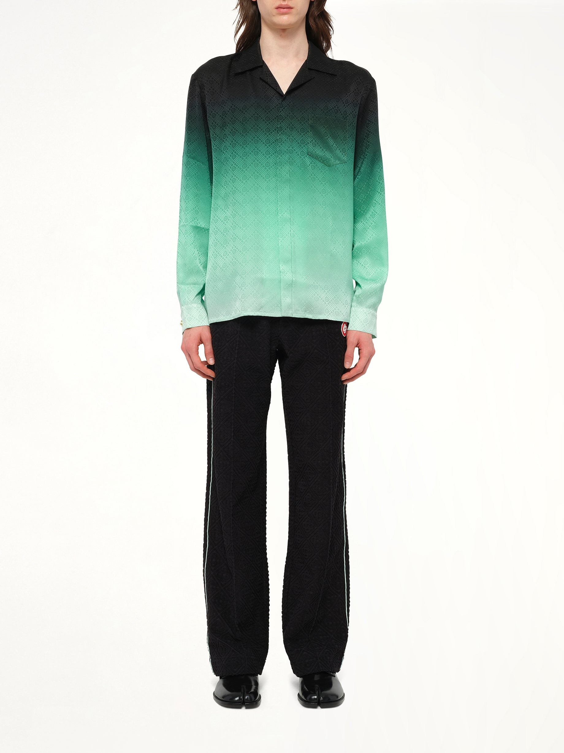 Casablanca's Ping Pong Gradient Shirt in Green is a vibrant and stylish addition to any wardrobe. This shirt features a unique gradient design that captures attention and exudes a playful yet sophisticated vibe.