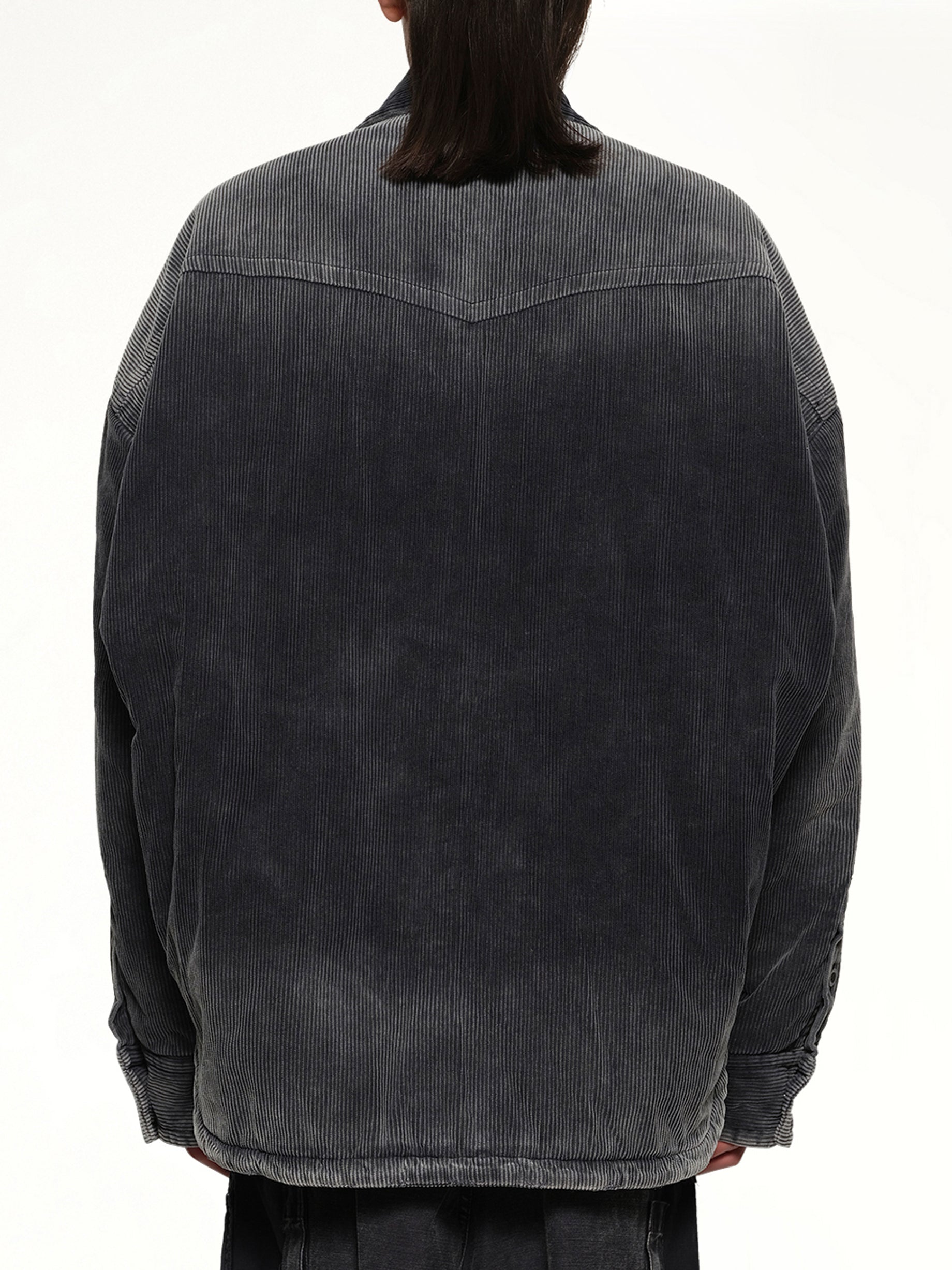 Maison Mihara's Puffer Corduroy Shirt in Black is a stylish fusion of classic design and modern comfort. This versatile piece is perfect for layering, offering both warmth and a sleek aesthetic.
