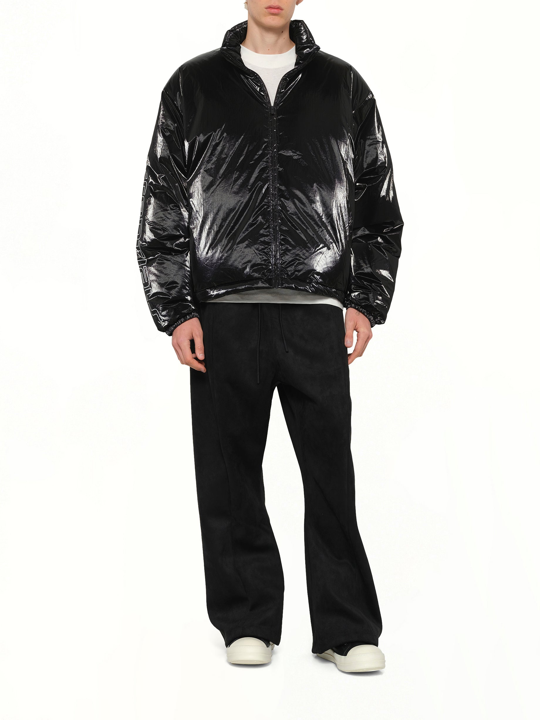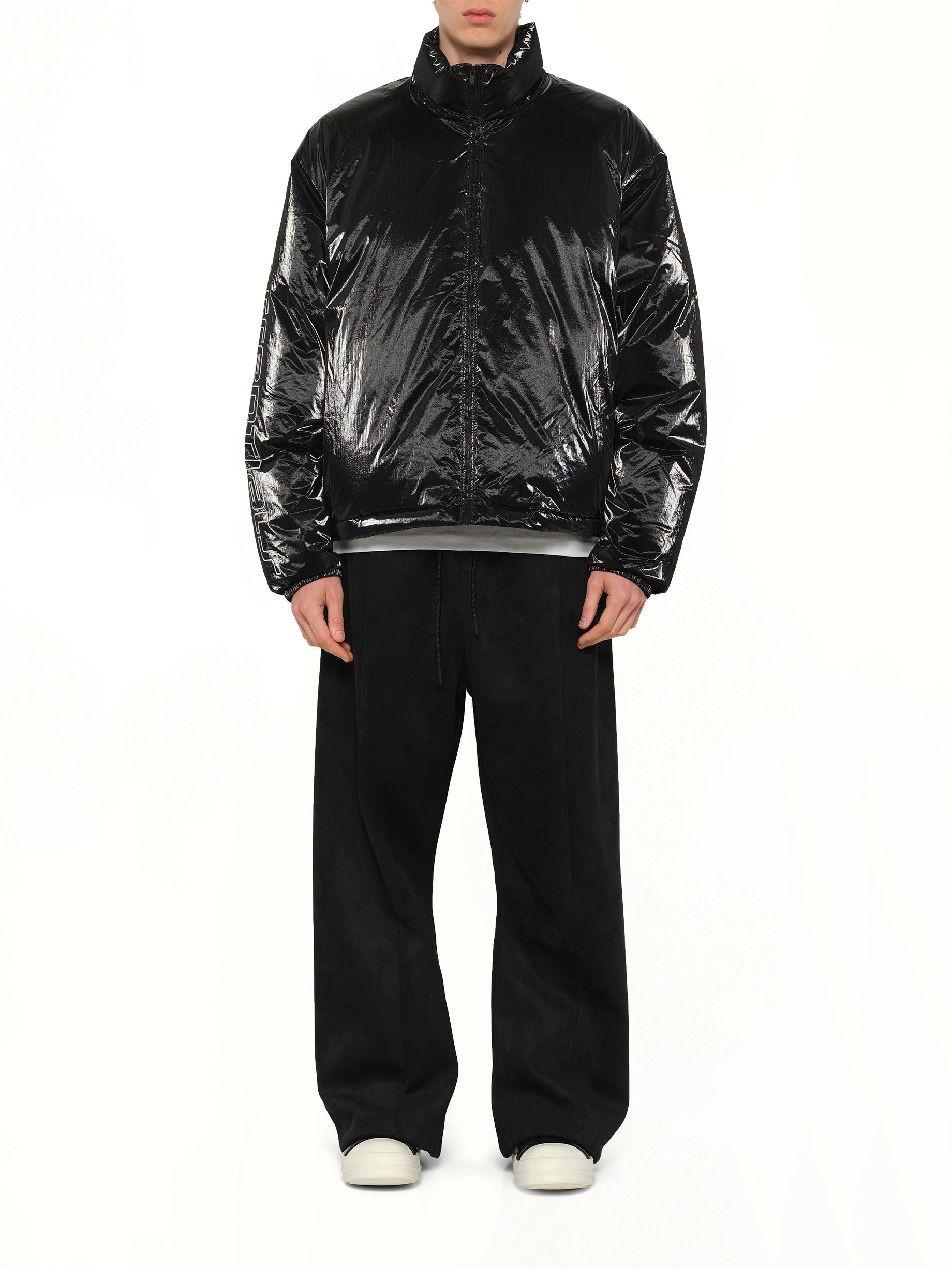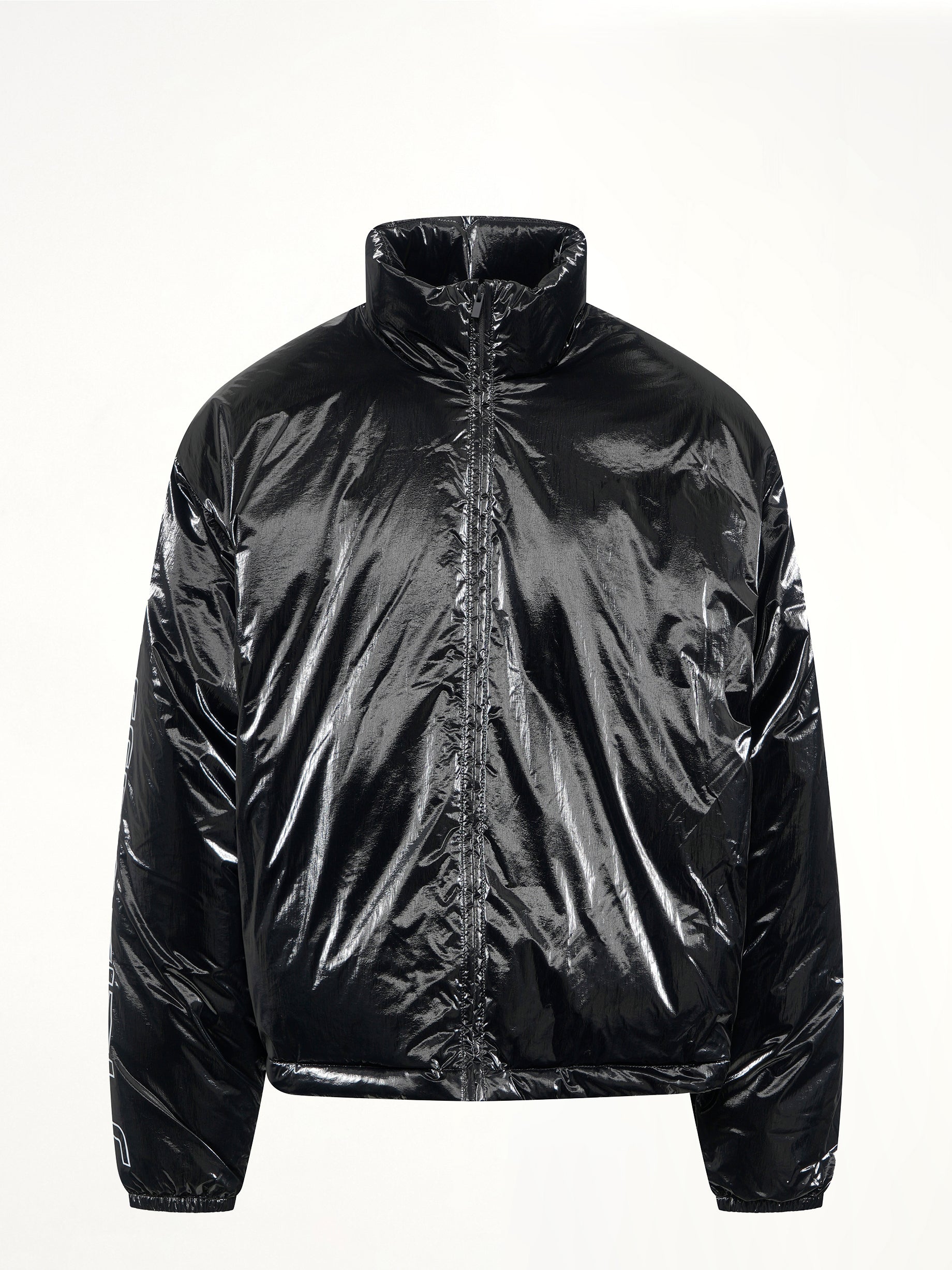 Fear of God Essentials's Puffer Jacket in Metallic Black is a stylish and versatile outerwear piece designed for both warmth and fashion. Its sleek metallic finish adds a modern touch to any outfit, making it a must-have for the contemporary wardrobe.