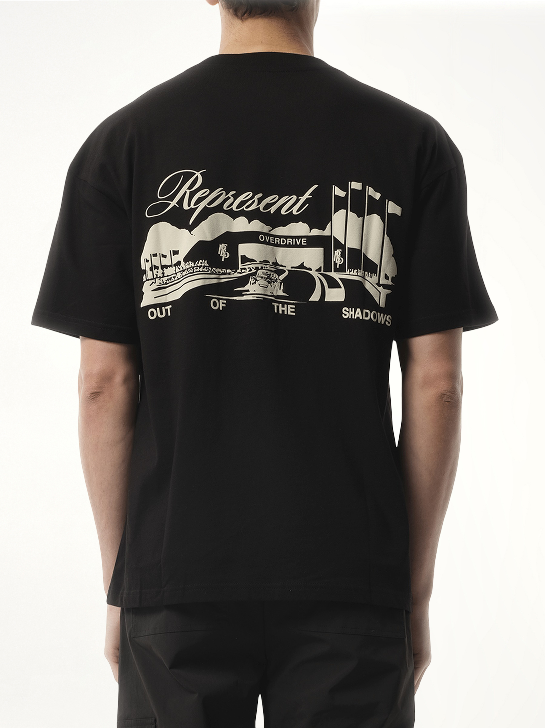 Represent's Race Way T-Shirt in Jet Black combines street-ready aesthetics with premium comfort. Made from 100% cotton, this slightly oversized t-shirt features bold puff print graphics on the front and back, along with signature branding details.