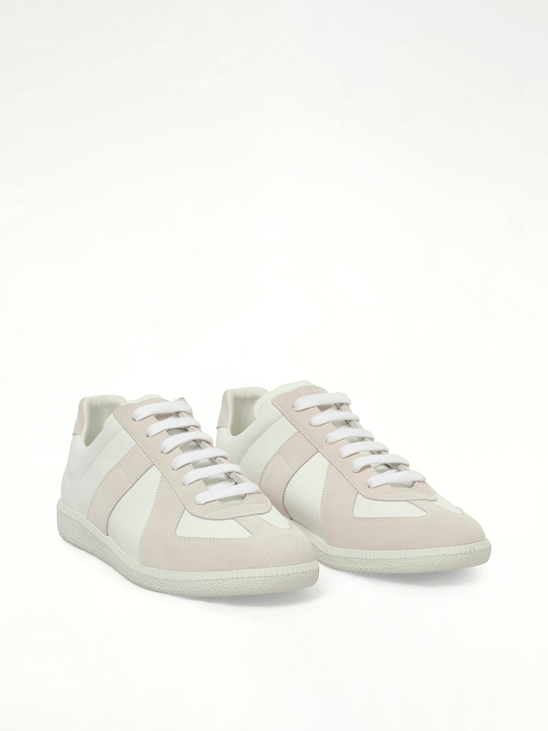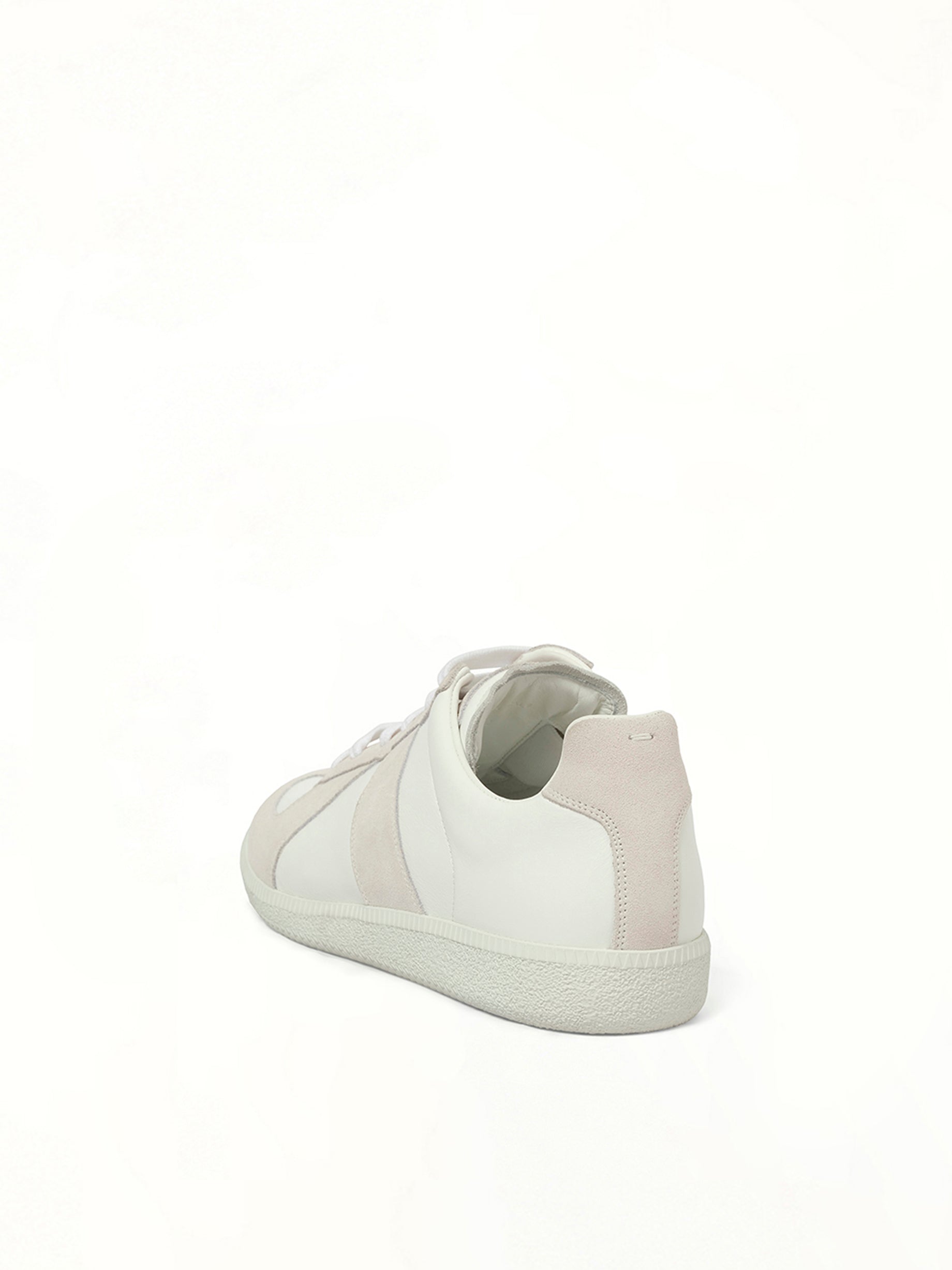 Classic Replica low top sneaker in white leather with suede overlays and single stitch detailing at the back
