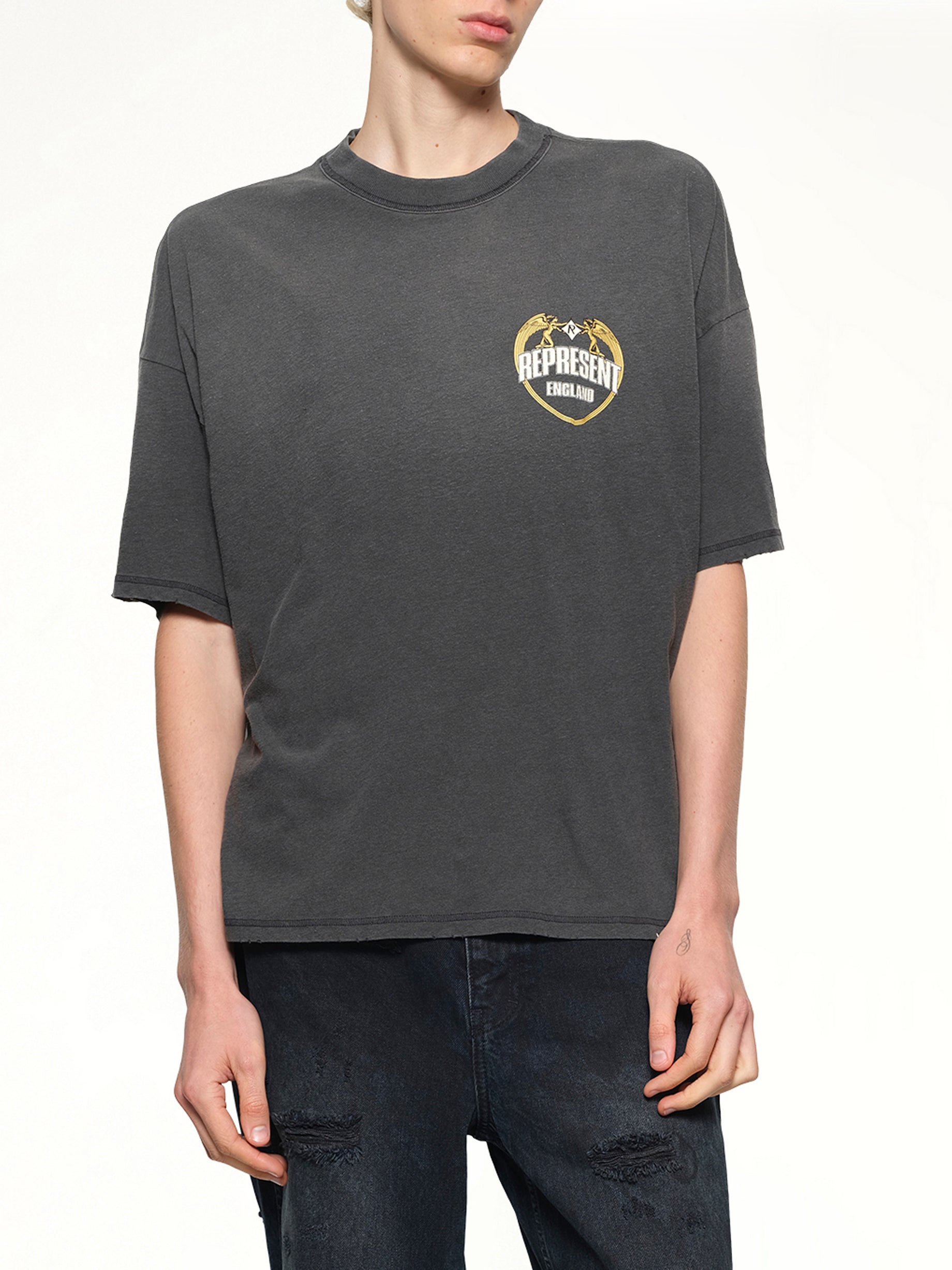 Represent's Represent Angel Border T-Shirt in Stained Black is a stylish and edgy addition to any wardrobe. This t-shirt features a unique design that stands out with its bold graphics and modern fit.