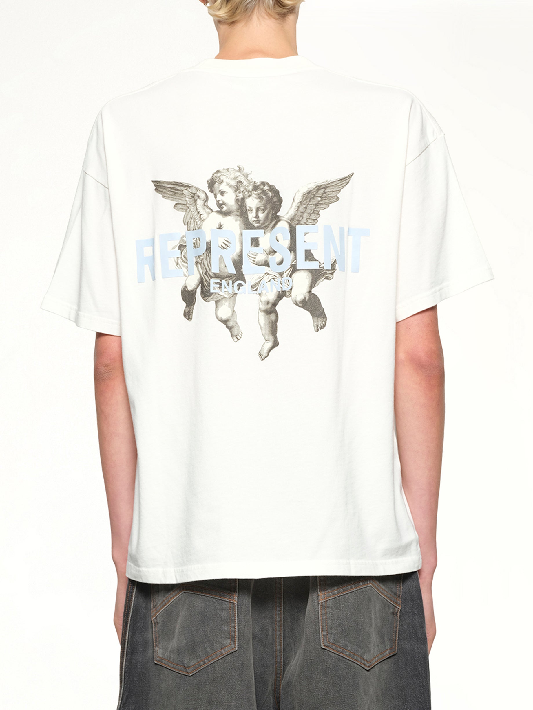 Represent's Represent Legacy Cherubs T-Shirt in Flat White is a stylish and contemporary piece that adds a touch of elegance to any casual outfit. Featuring a unique cherub design, this t-shirt is perfect for those who appreciate artistic flair in their wardrobe.