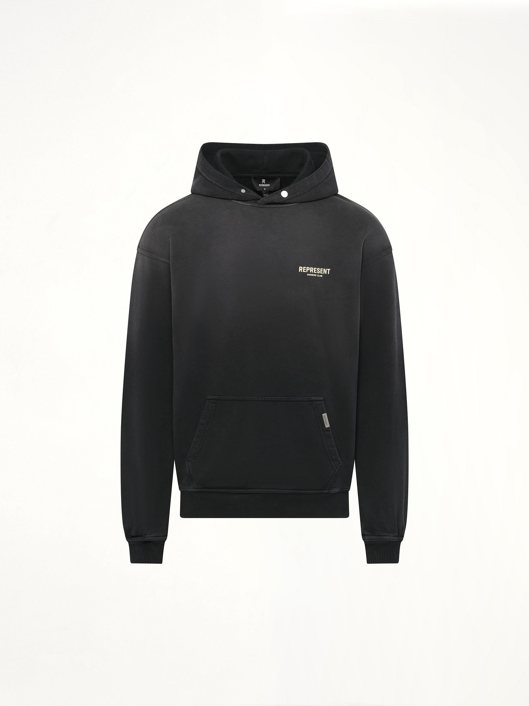 Represent's Represent Owners Club Hoodie in Aged Black is a stylish and comfortable addition to any wardrobe. This hoodie features a unique aged black finish, offering a vintage look with modern appeal.
