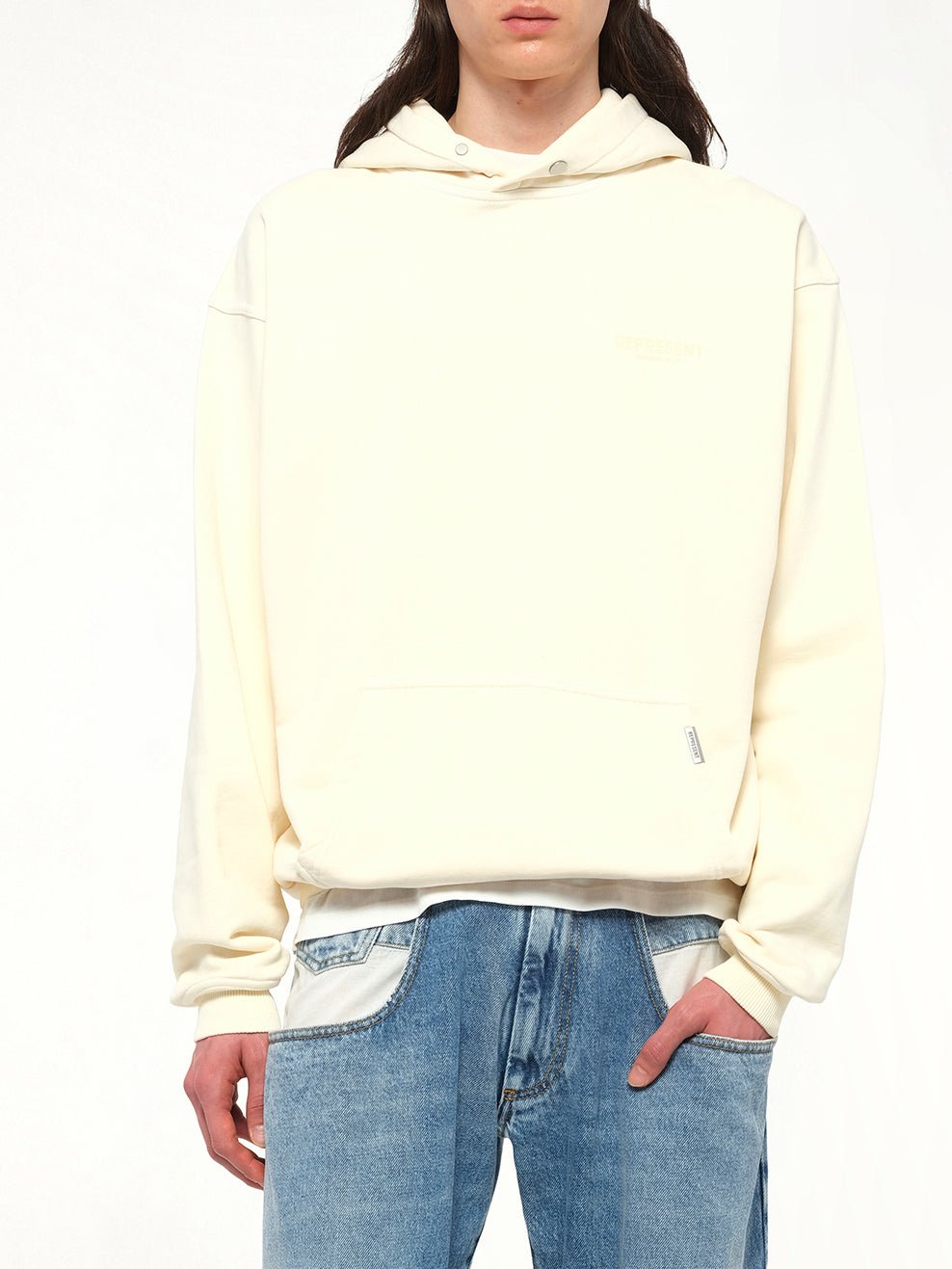 Represent's Represent Owners Club Hoodie in Buttercream is a stylish and comfortable addition to any wardrobe. This hoodie combines a classic design with a modern twist, perfect for casual outings or lounging at home.