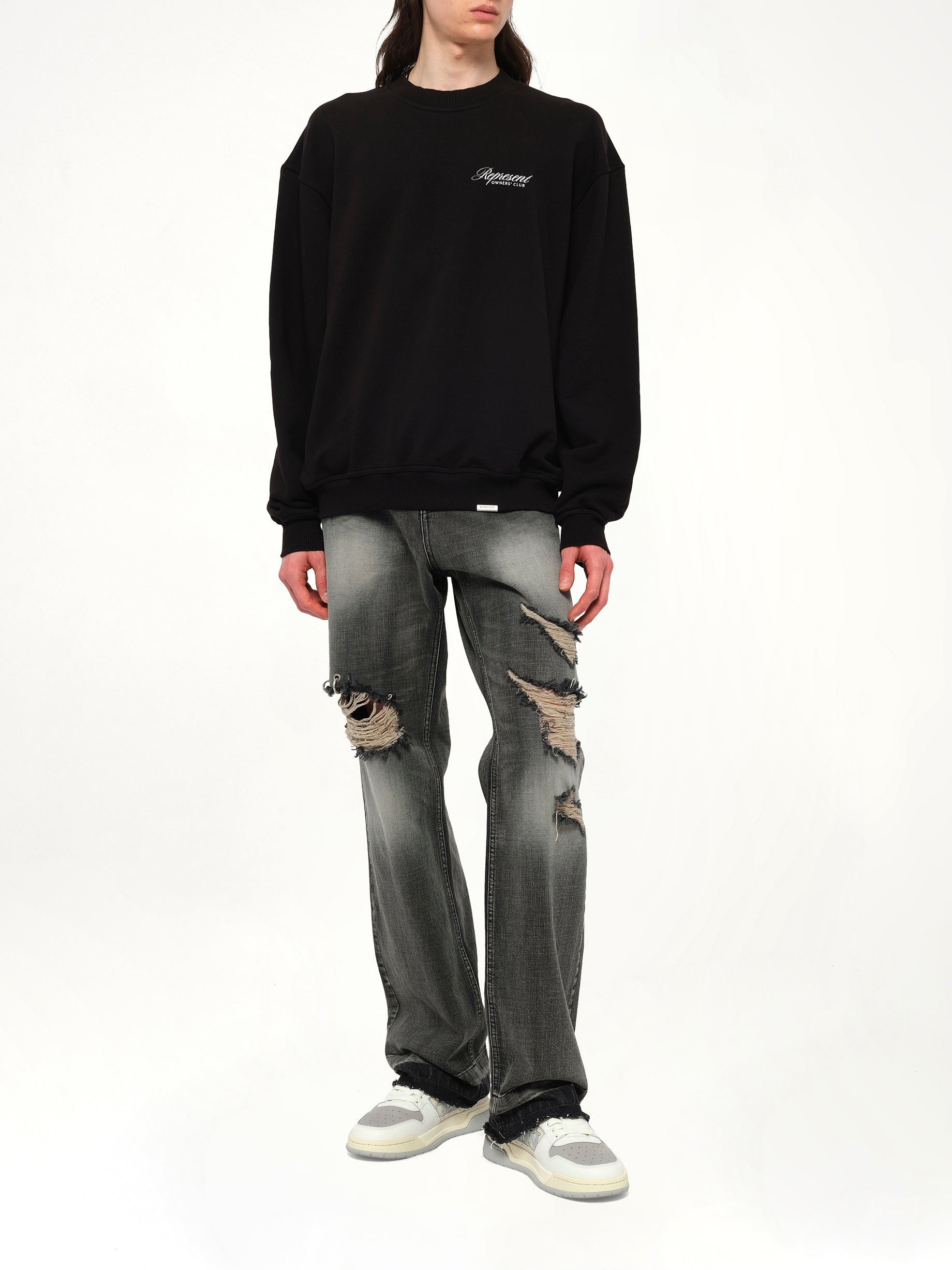 Represent's Represent Owners Club Script Sweater in Black is a stylish and comfortable addition to any wardrobe. This sweater features a sleek design with a bold script logo, perfect for casual outings or layering.