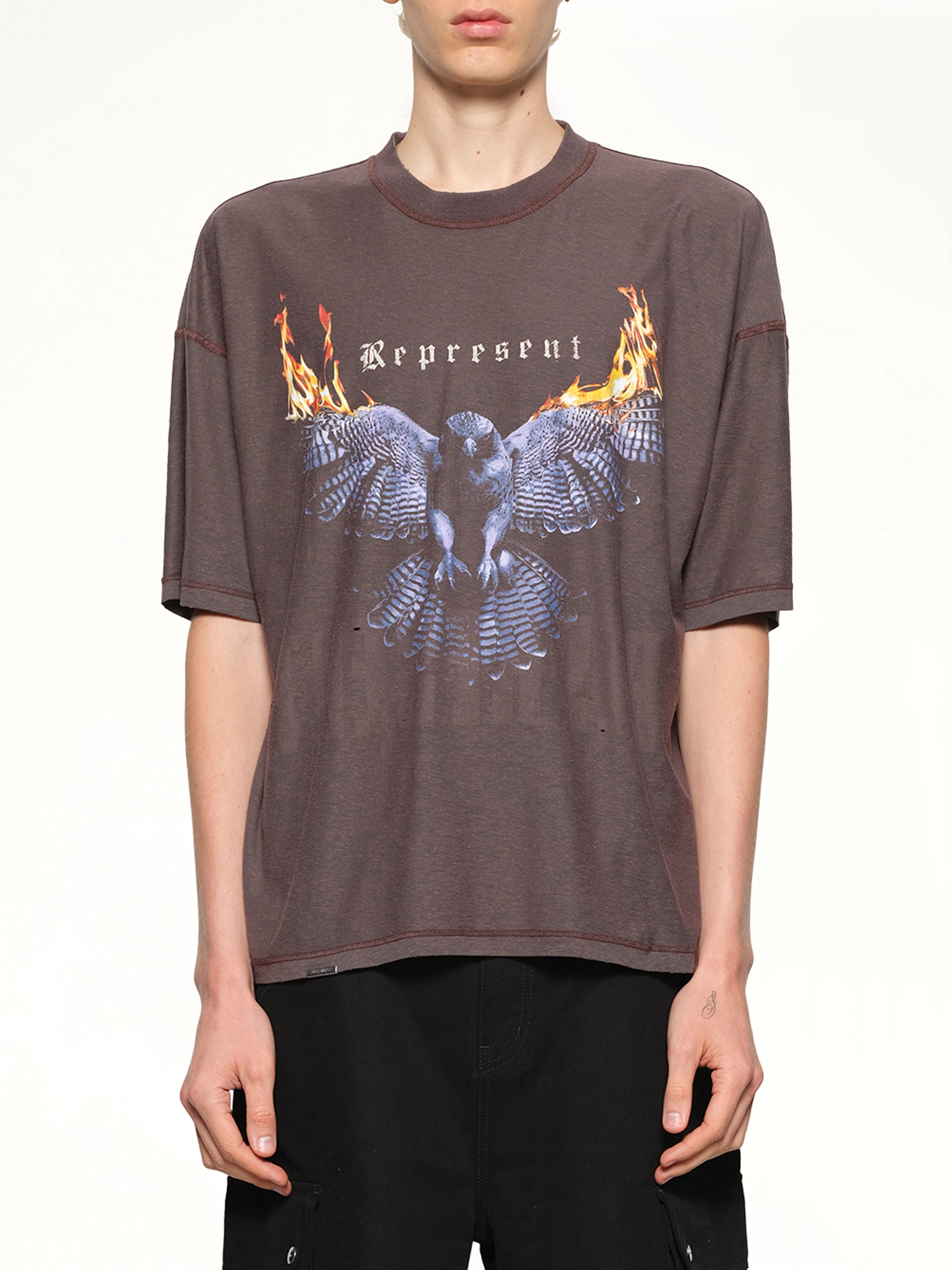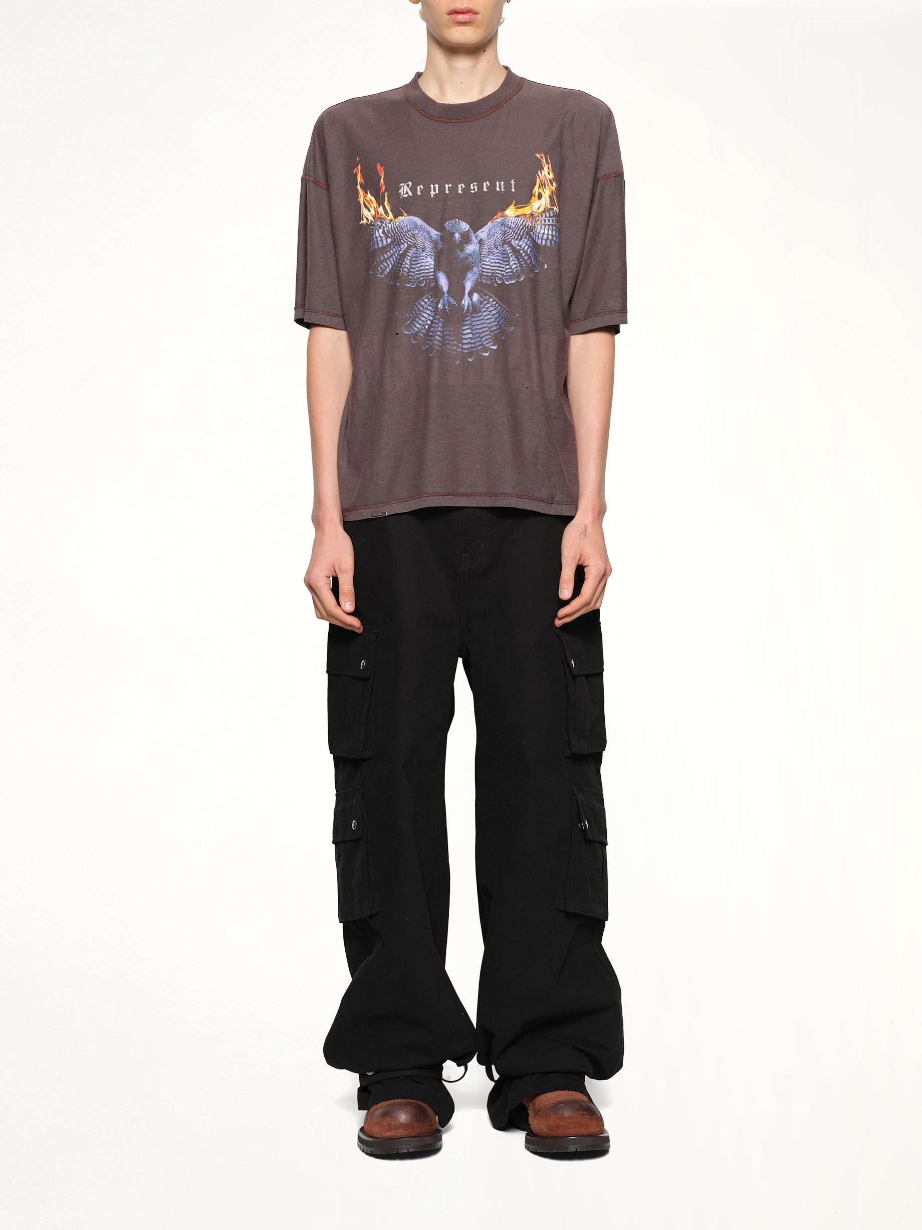 Represent's Reversible Living Legacy Falcon T-Shirt in Nero is a versatile and stylish addition to any wardrobe. This unique piece offers two distinct looks in one, perfect for any occasion.