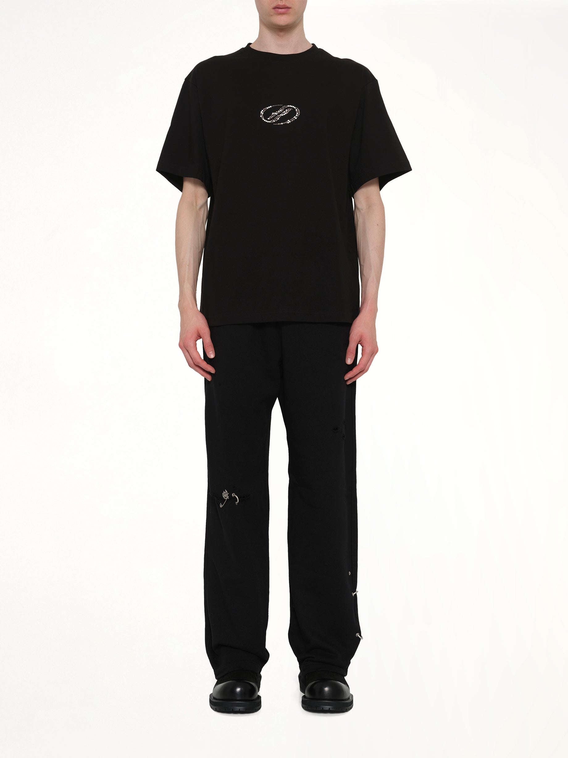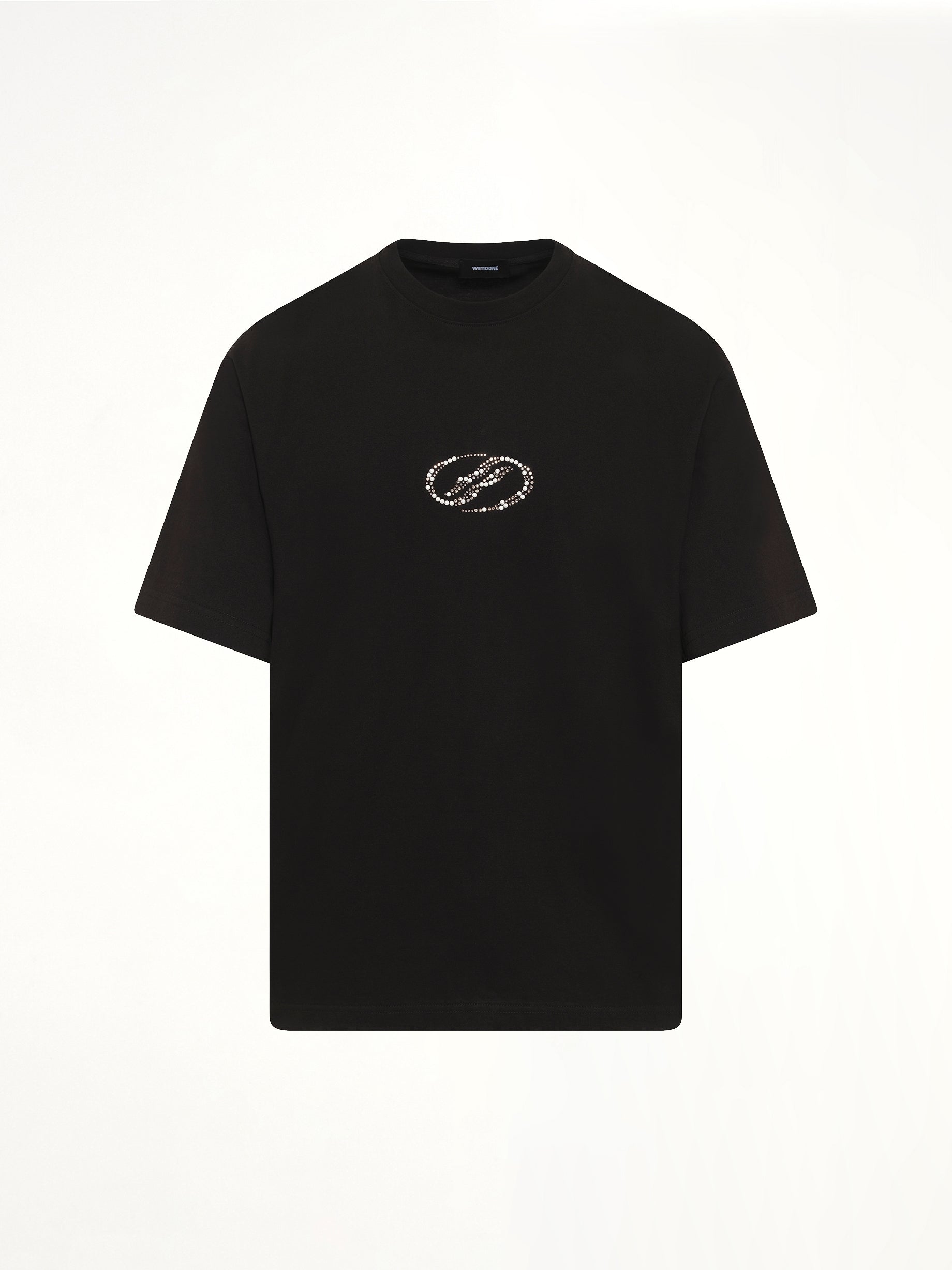 We11done's Rhinestone T-Shirt in Black is a statement piece that combines casual comfort with a touch of glamour. This t-shirt features a classic silhouette enhanced by sparkling rhinestone embellishments.