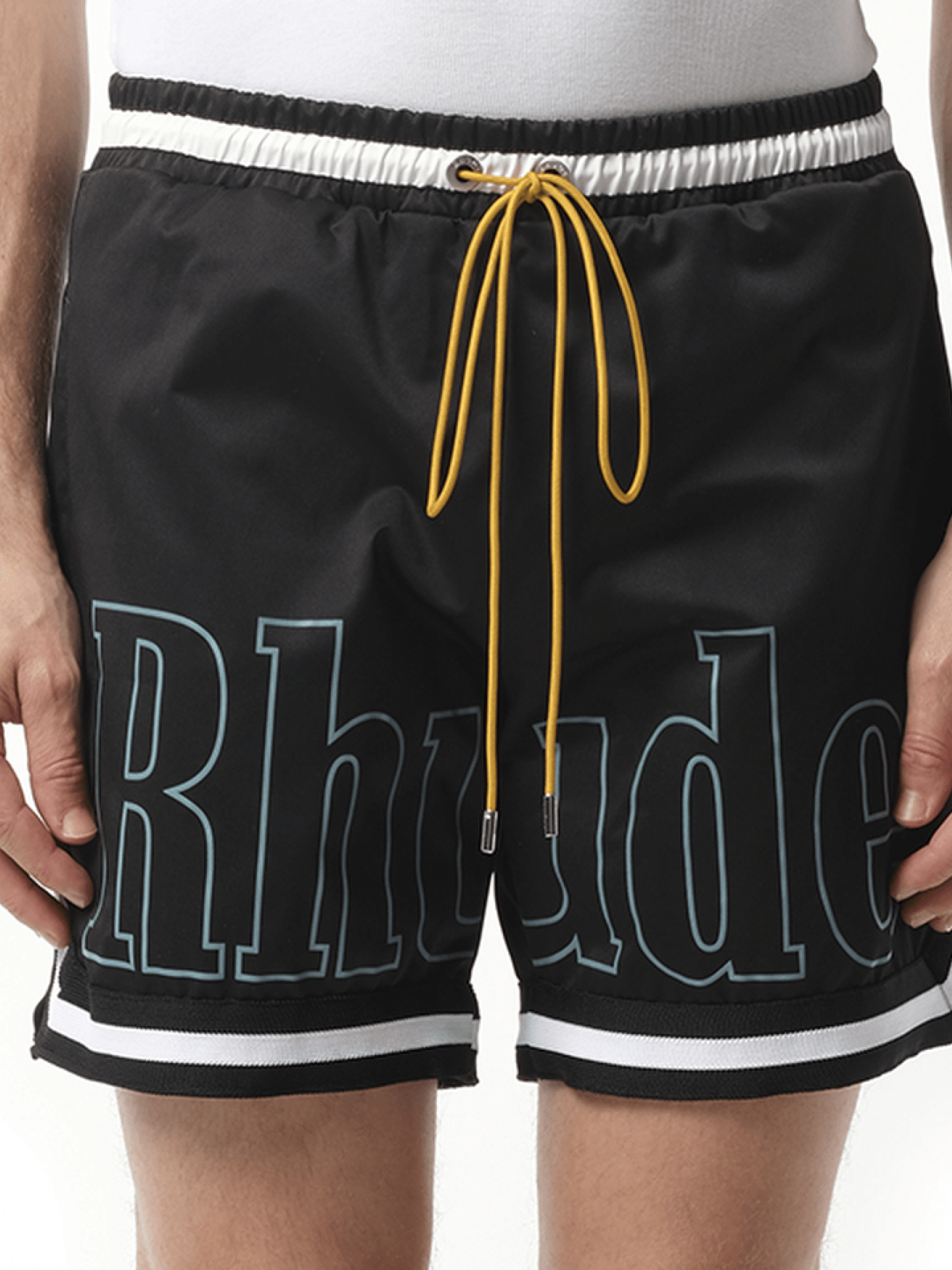 Rhude Logo Basketball Swim Shorts in Black/White