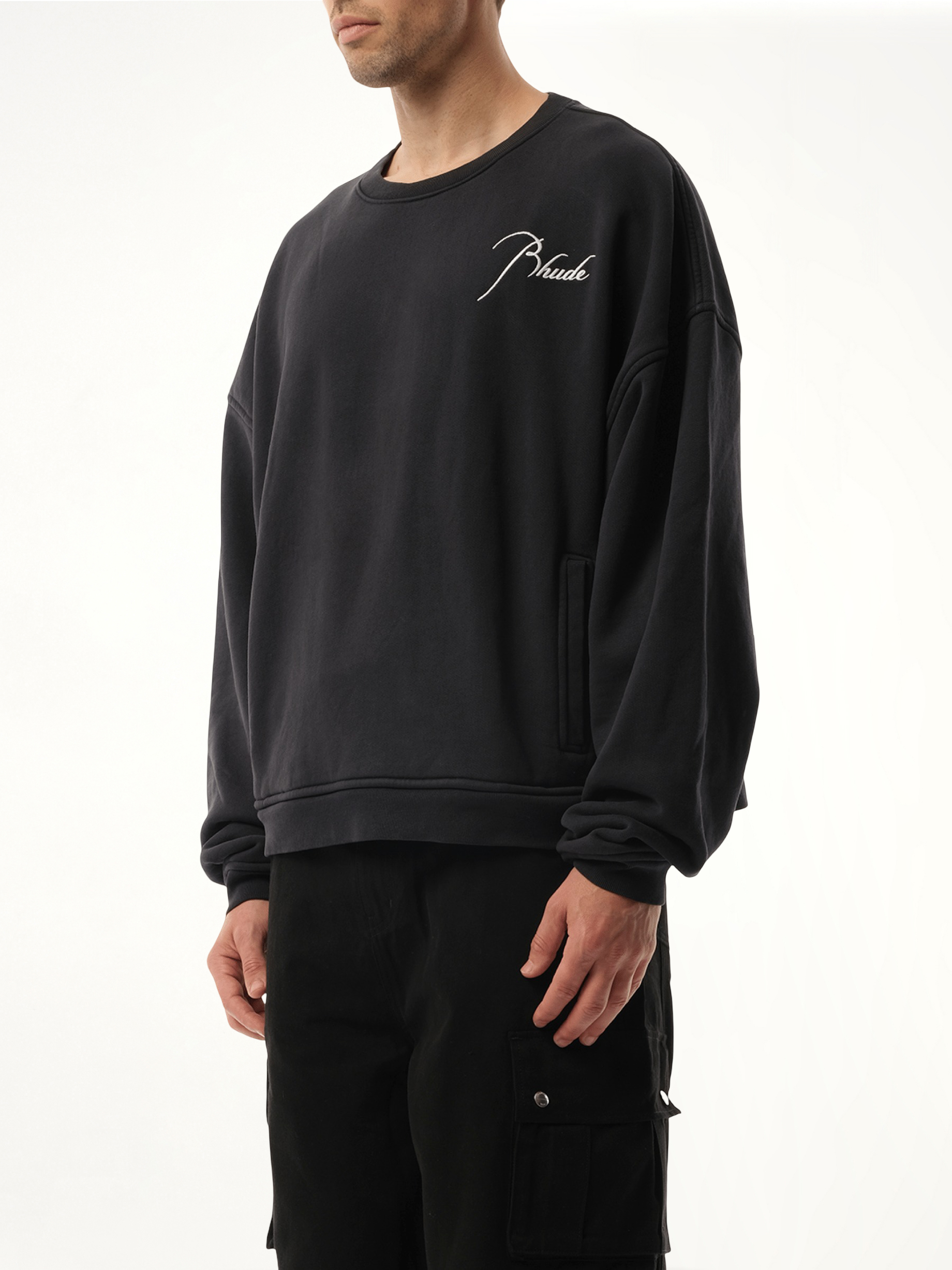 Made with quality material and featuring the iconic Rhude logo, this sweatshirt is a must-have for any wardrobe. Stay on trend with its vintage black color and elevate your fashion game.